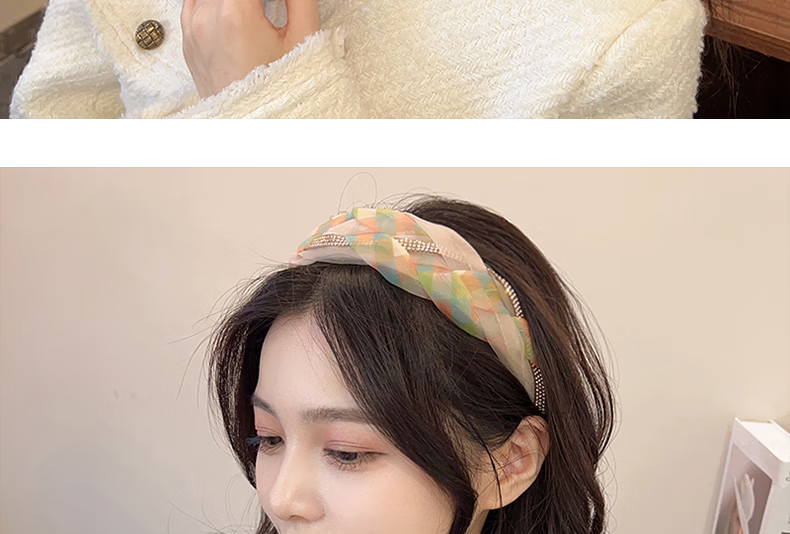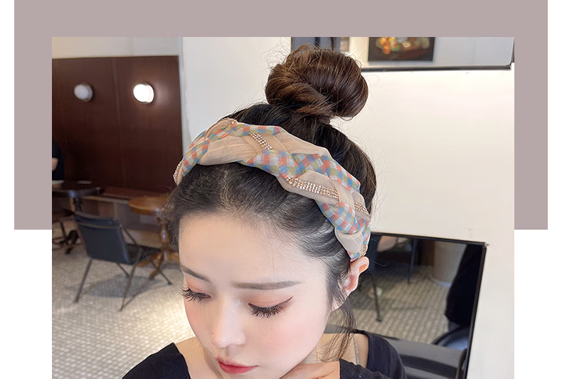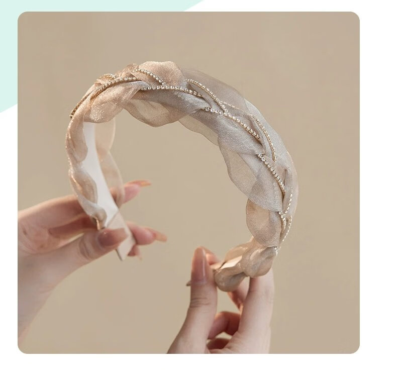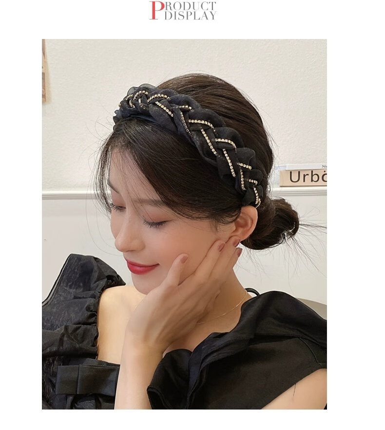 Merou temperament mesh headband with diamonds, trendy and fashionable twist headband, wide-brimmed going out hairpin headband, mesh headband L0120B