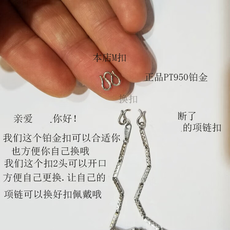 Jingjia Fat Dong Lai's Chinese Valentine's Day gift Pt950 platinum necklace buckle head PT950M buckle buckle DIY white small size PT950 platinum M buckle 0.38g