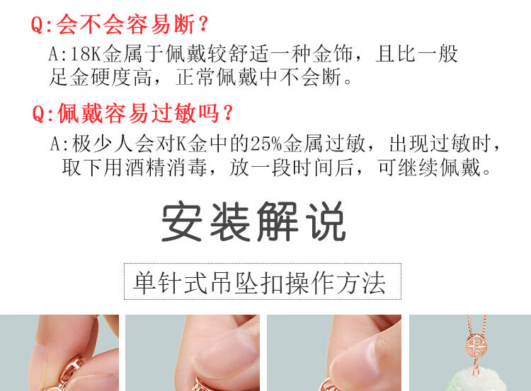 Jingjia Fat Donglai same style Pt950 platinum necklace buckle head 18k rose gold yellow AU750 jade pendant buckle diy jade clip platinum gold single needle buckle head