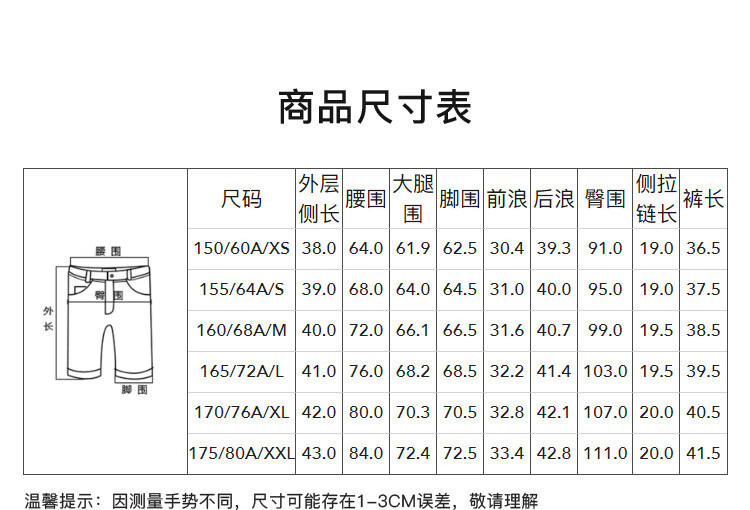 Outseam (cm) 99 cm 101.5 cm 104 cm 106.5 cm 109 cm