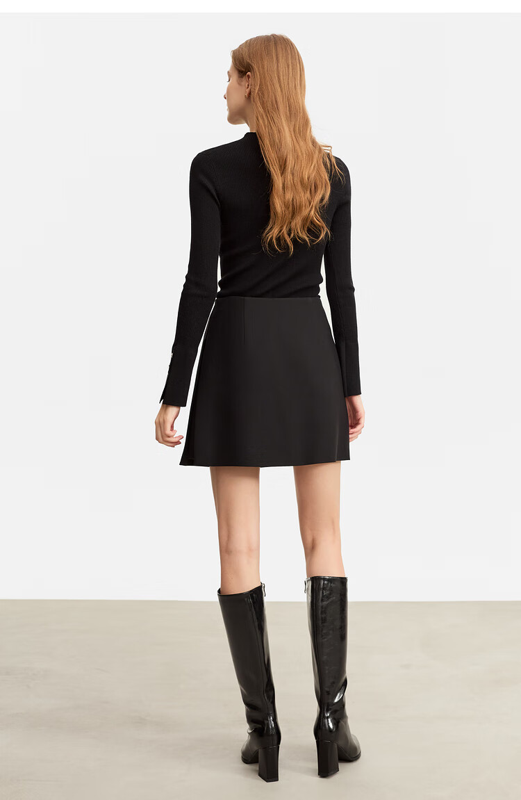 AMII Women's 2025 Autumn New Minimalist Solid Color Commuting Loose One-piece Side Zipper Pants Skirts Women Black XL 170/76A