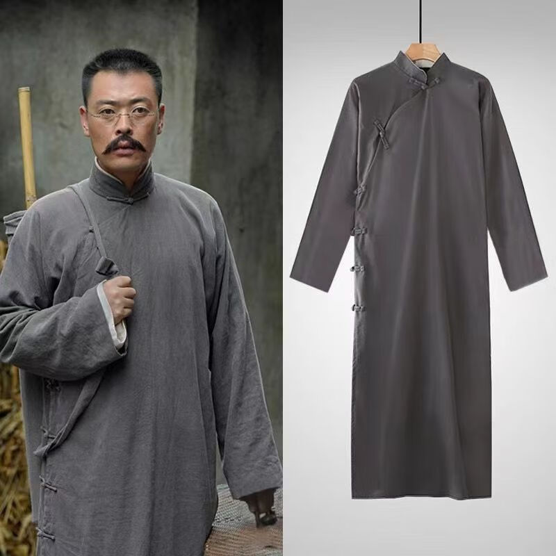 QRJW Long gown of the Republic of China, Mr. Lu Xun, Li Dazhao, teacher, drama jacket, costume, May 4th youth gown, performance costume, dark gray gown (+ hat), height 170, recommended 125-145 Jin Jin is equal to 0.5 kg