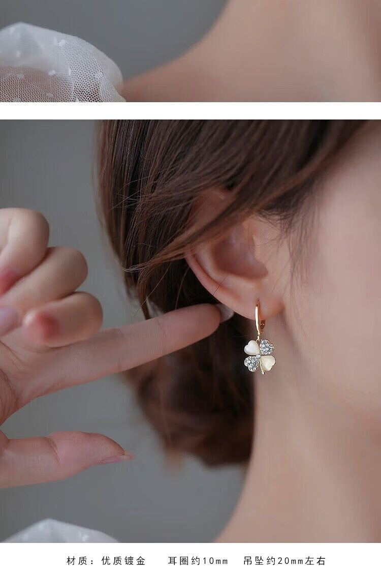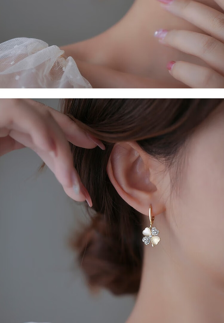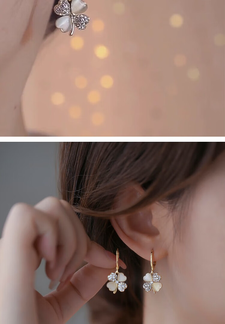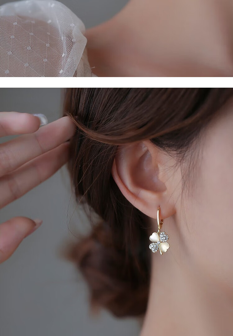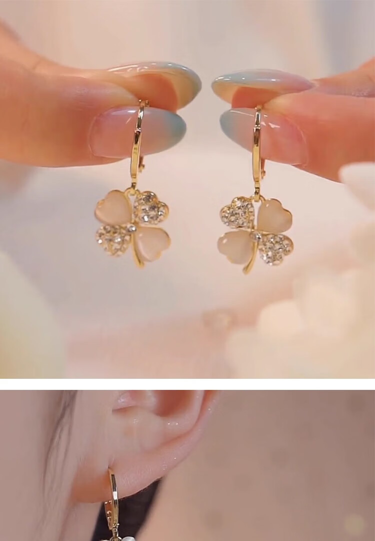 QMXD four-leaf clover earrings for women, versatile niche design, light luxury and high-end 2025 new trend earrings, earrings for women, earrings