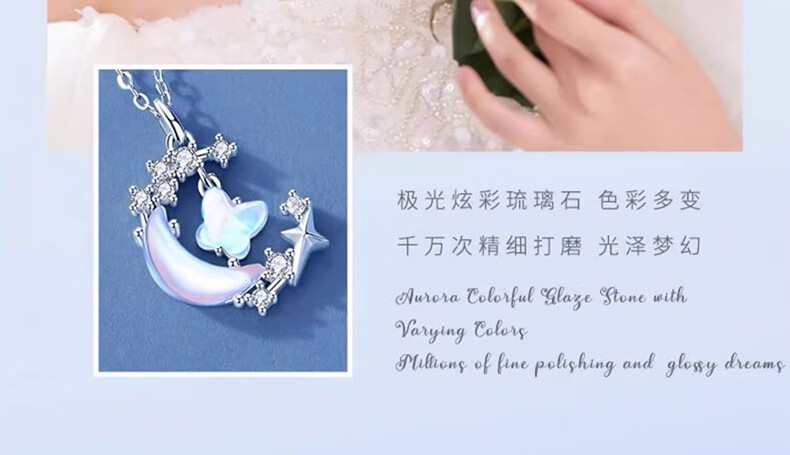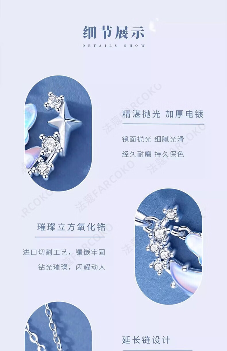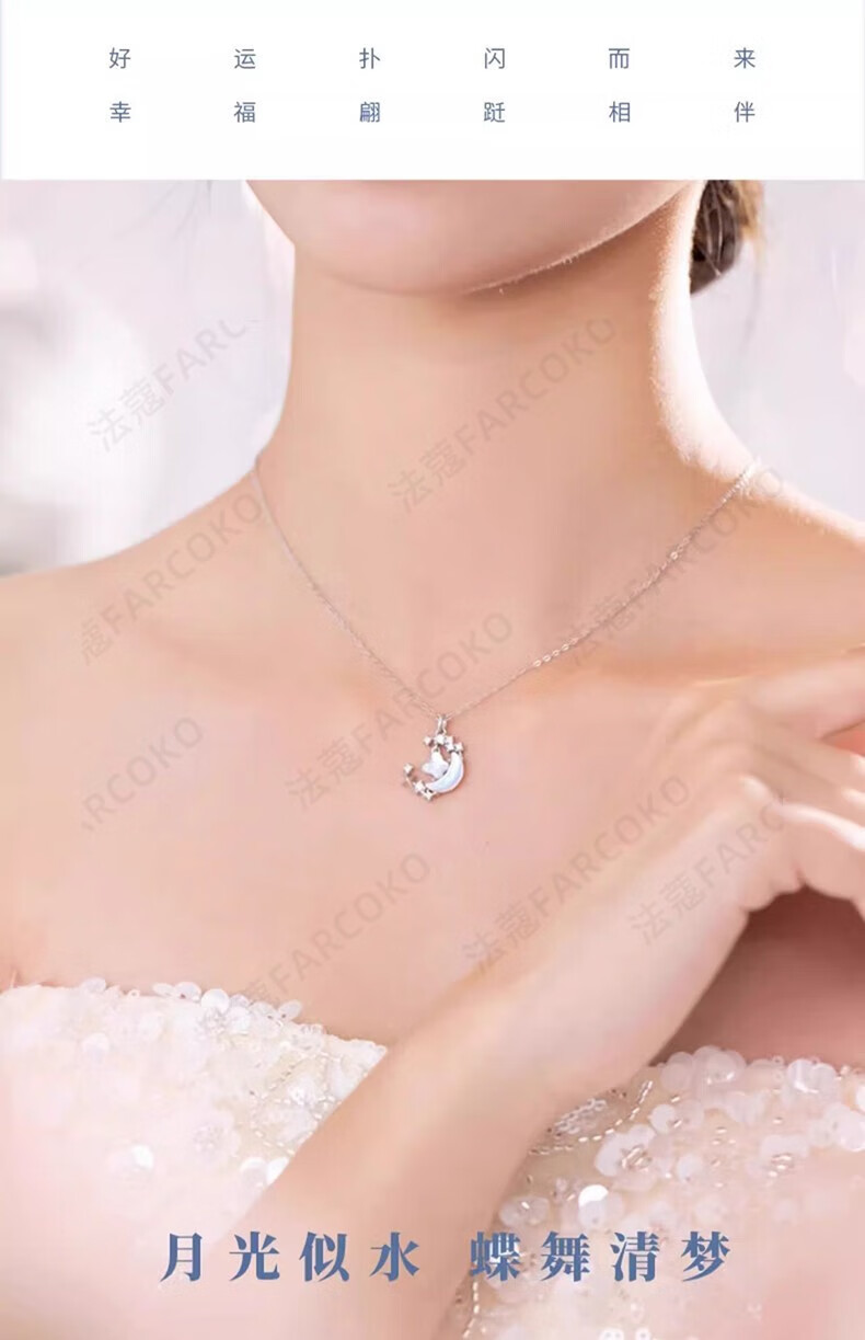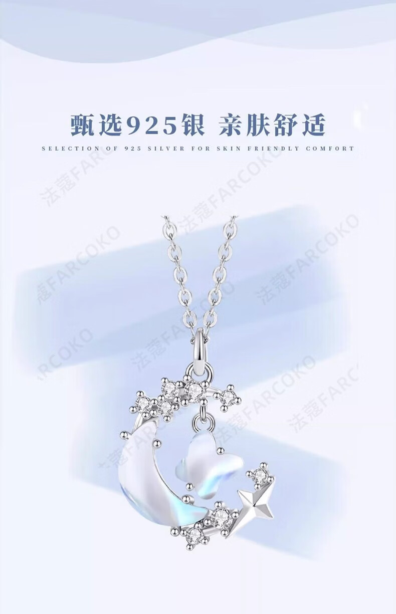 Farcoko Star-Moon Butterfly Shadow Necklace for Women Light Luxury Niche Ladies Simple Clavicle Chain Christmas Valentine's Day Birthday Gift for Girlfriend Star-Moon Butterfly Shadow Necklace Free Engraving + Exquisite Gift Box