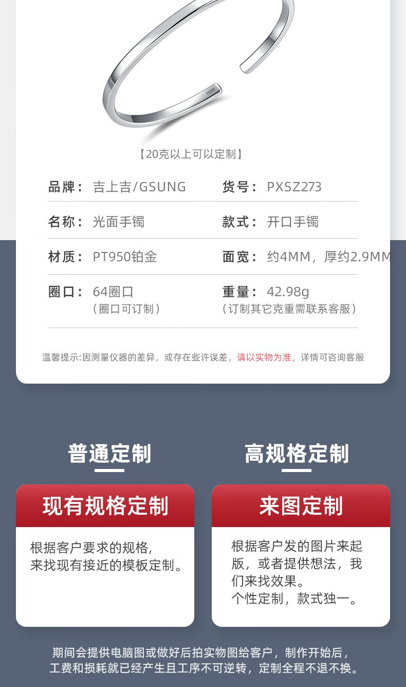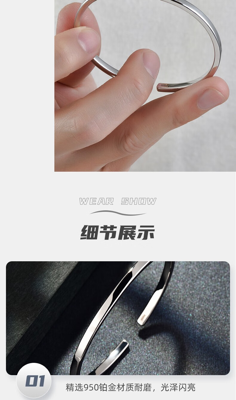 GsunG platinum bracelet for men and women PT950 solid glossy bracelet platinum men's concubine bracelet simple and fashionable price by gram contact before bidding