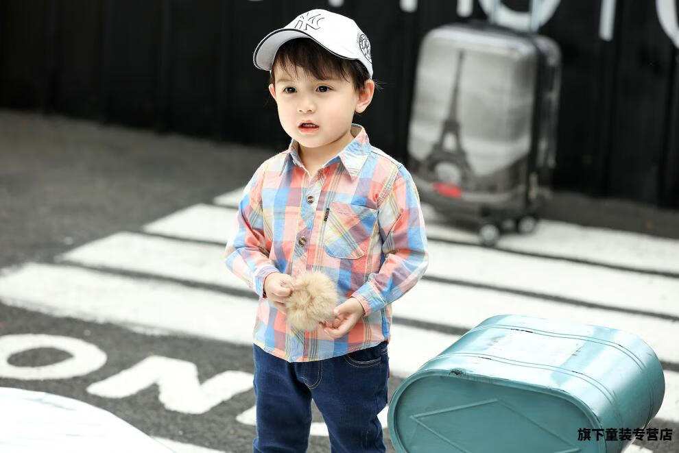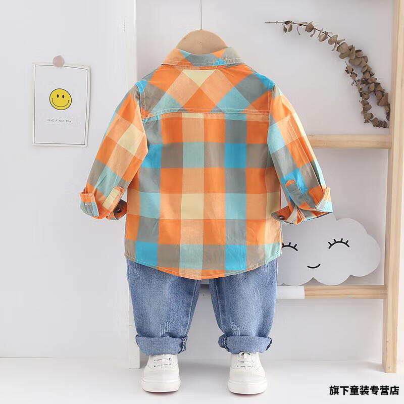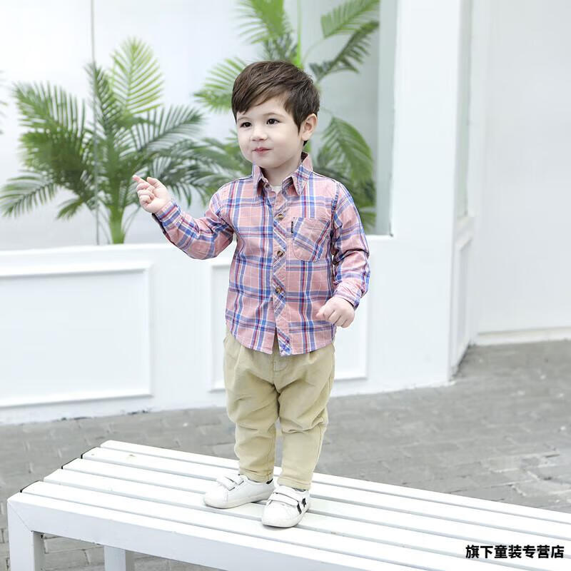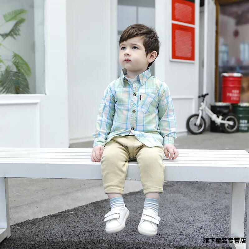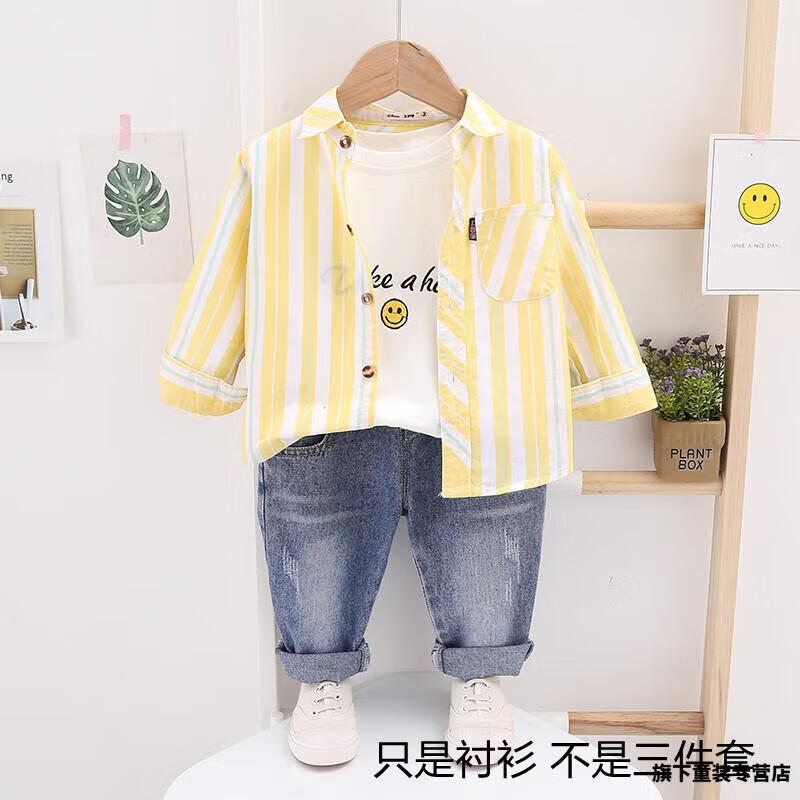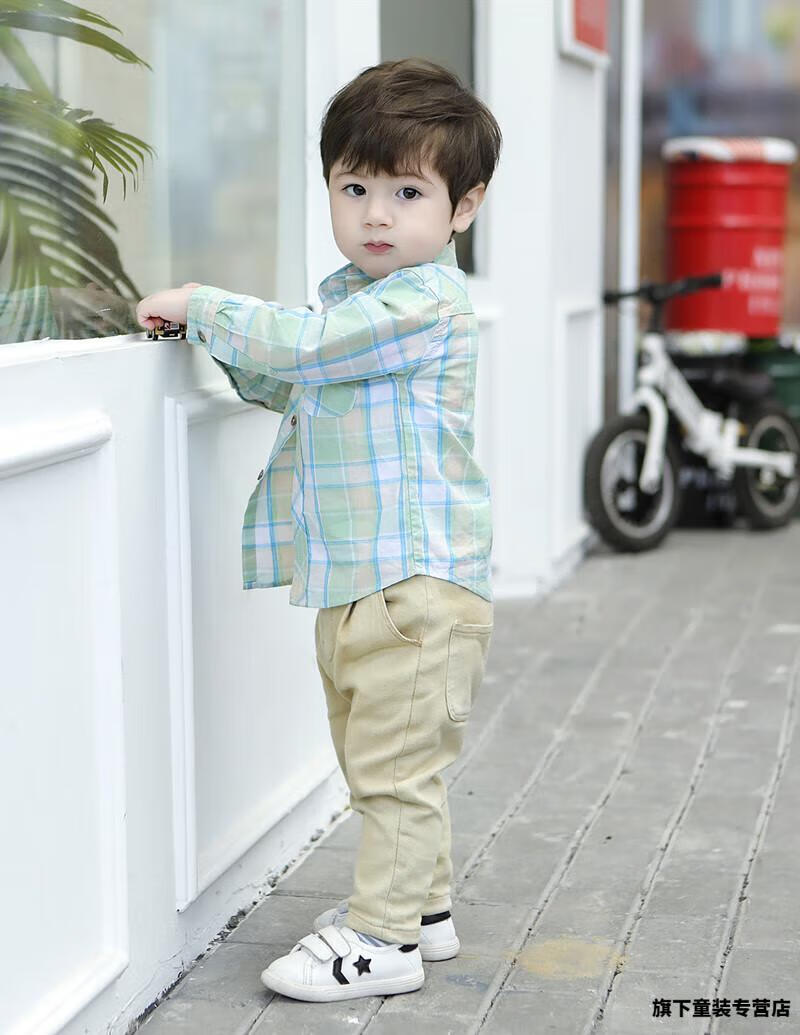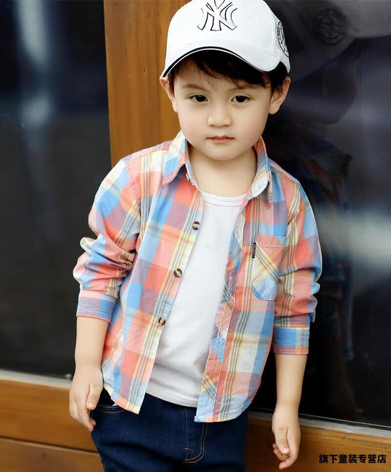 G.duck Cotton Boys' Shirt Long Sleeve 2026 Spring and Summer Thin Children's Clothing Baby Bottoming Top Children's Plaid Shirt Jacket Gold Only shirts sold One size fits all Size 14 Recommended height 120-125cm46Jin Jin is equal to about 0.5kg