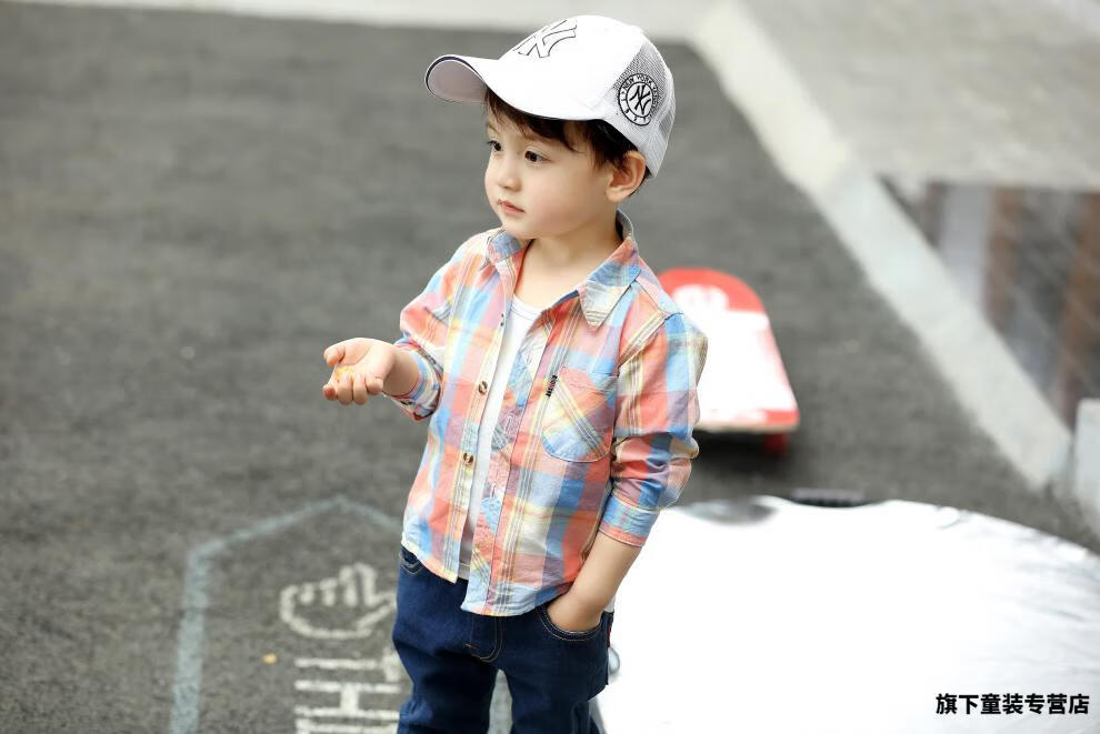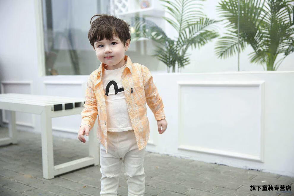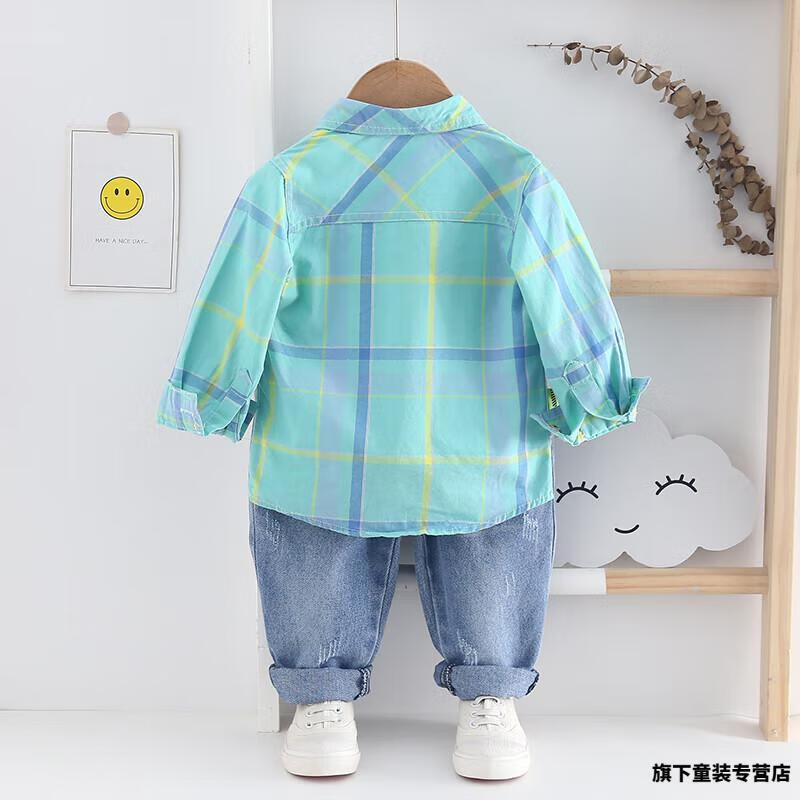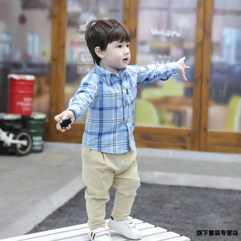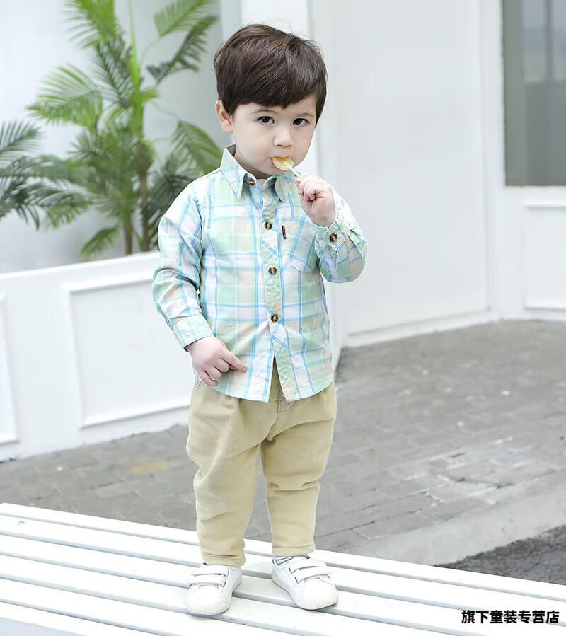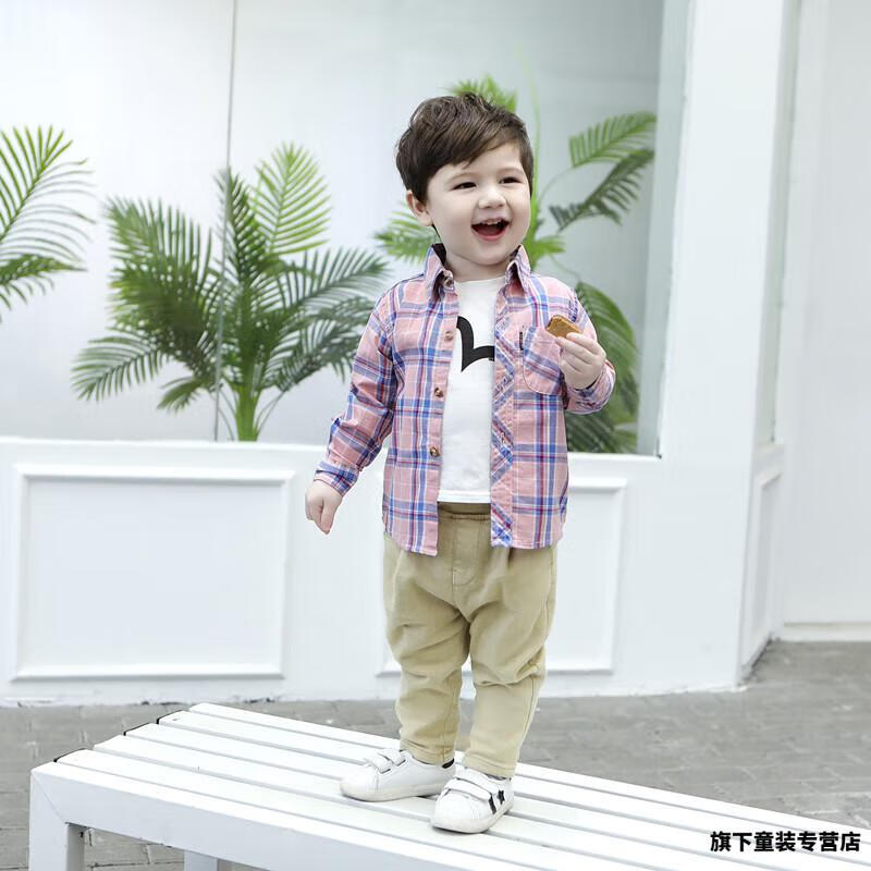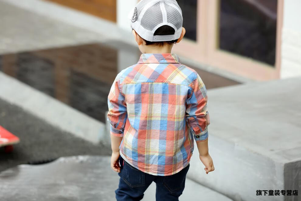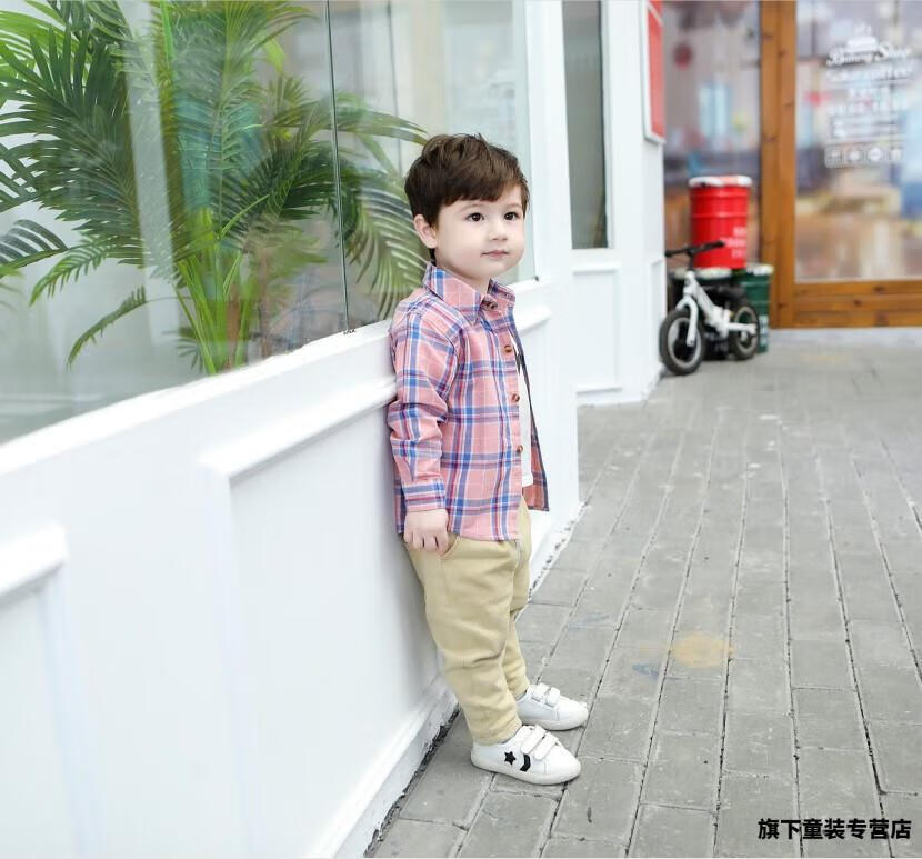 G.duck Cotton Boys' Shirt Long Sleeve 2026 Spring and Summer Thin Children's Clothing Baby Bottoming Top Children's Plaid Shirt Jacket Gold Only shirts sold One size fits all Size 14 Recommended height 120-125cm46Jin Jin is equal to about 0.5kg