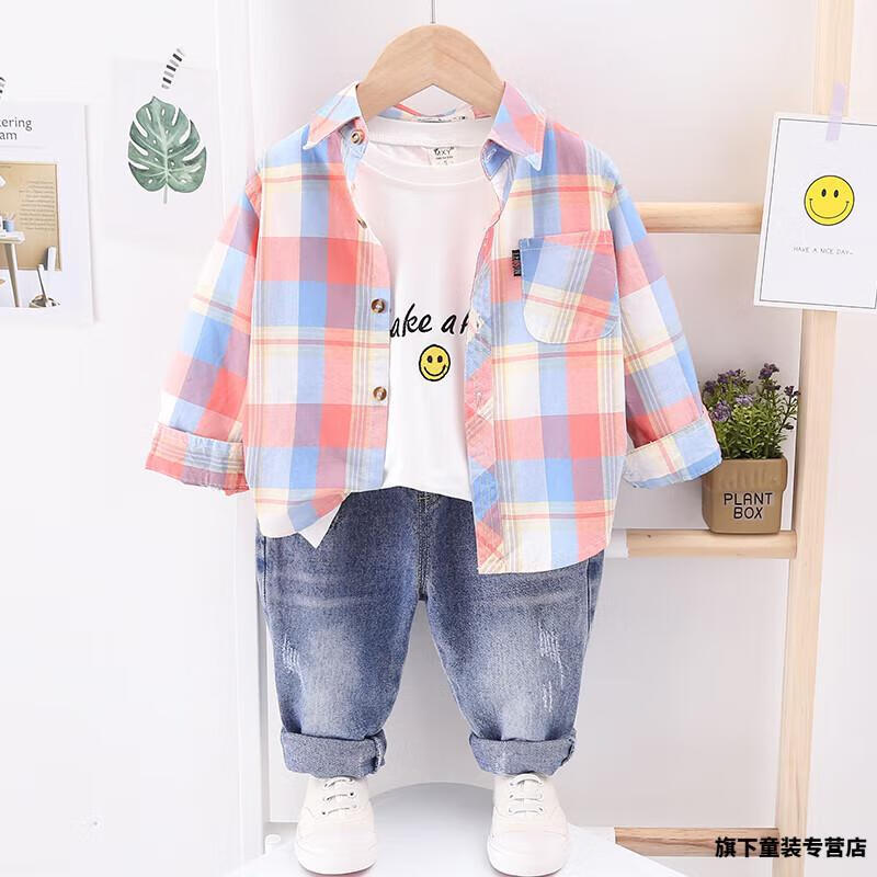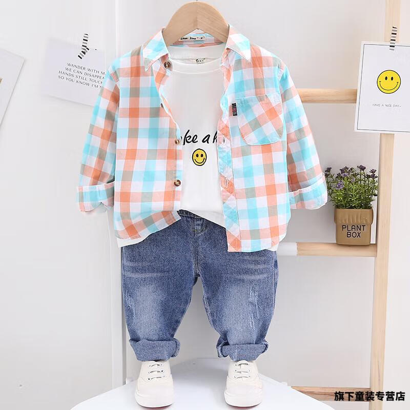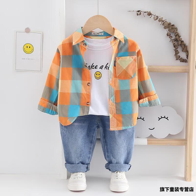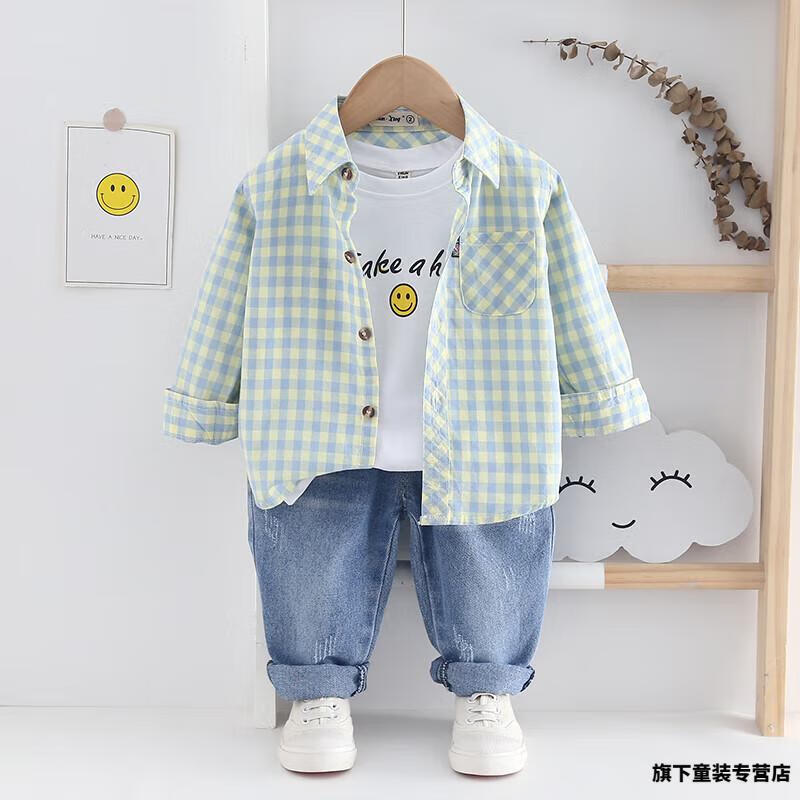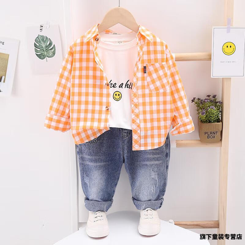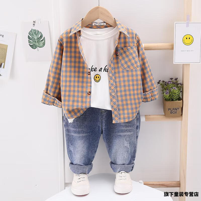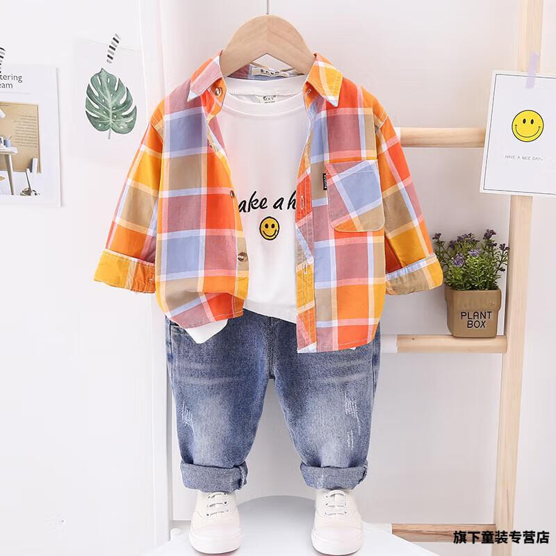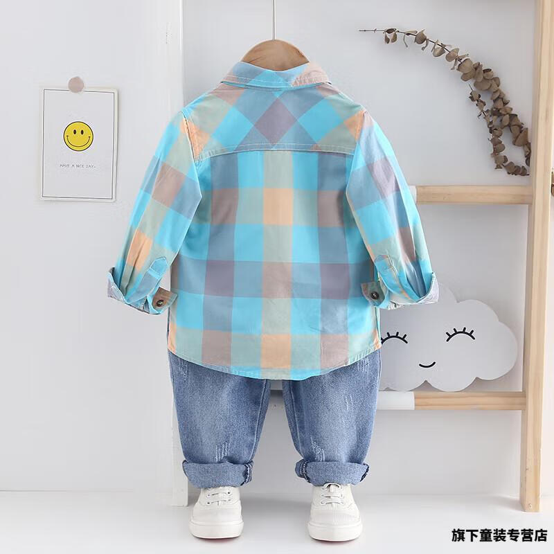 G.duck Cotton Boys' Shirt Long Sleeve 2026 Spring and Summer Thin Children's Clothing Baby Bottoming Top Children's Plaid Shirt Jacket Gold Only shirts sold One size fits all Size 14 Recommended height 120-125cm46Jin Jin is equal to about 0.5kg