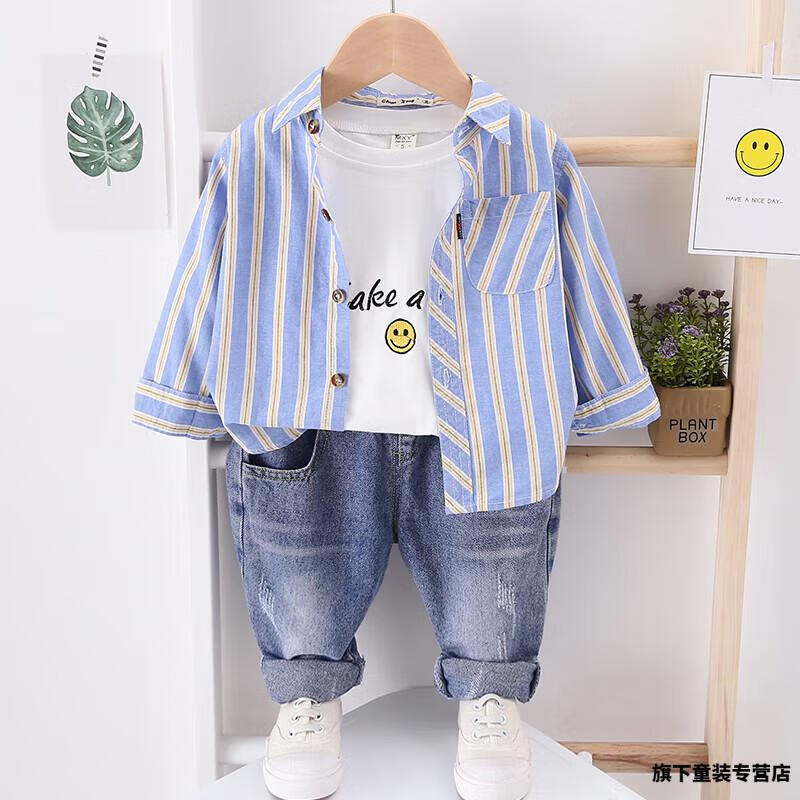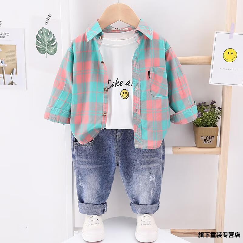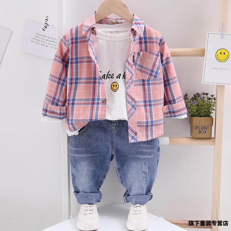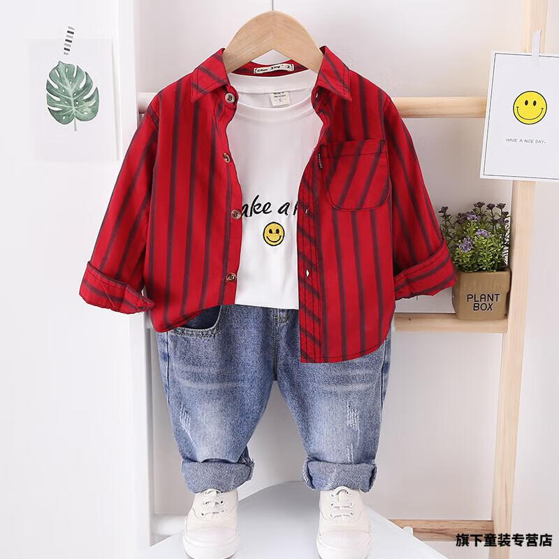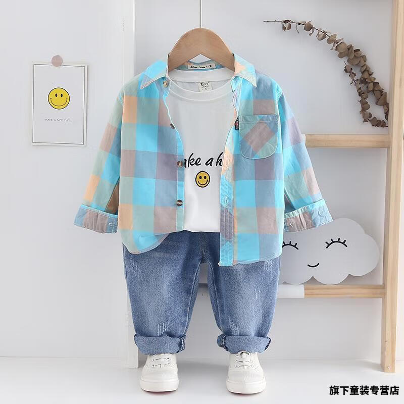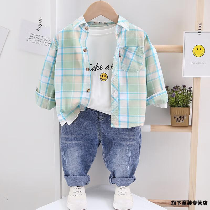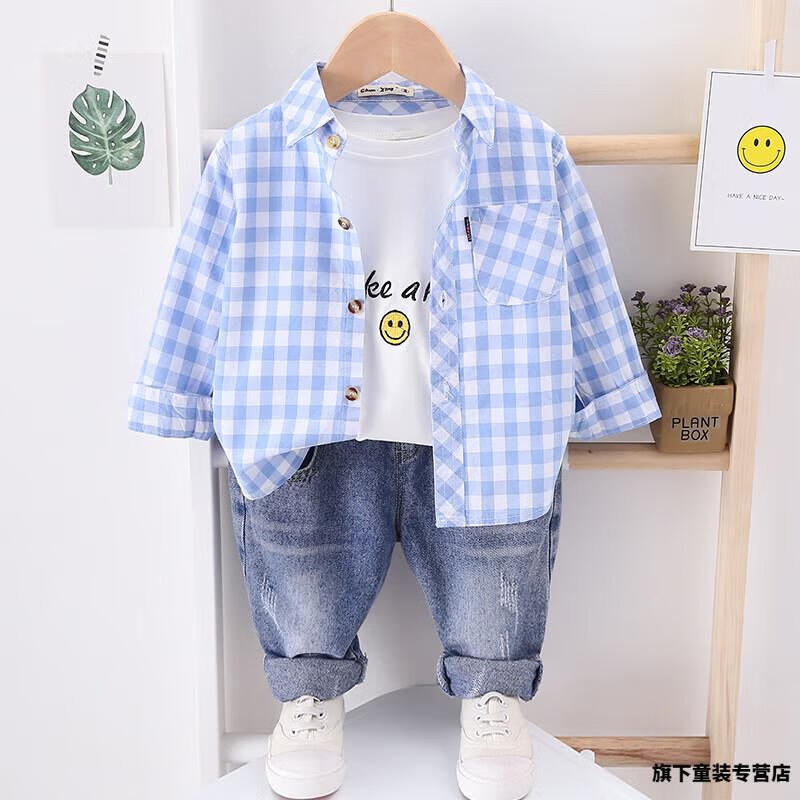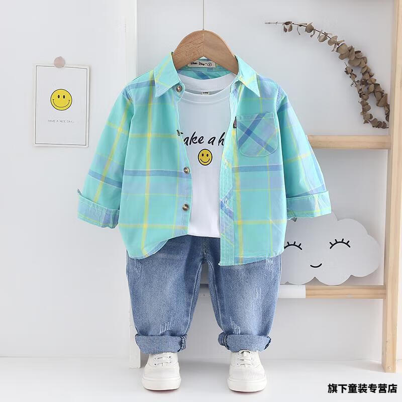 G.duck Cotton Boys' Shirt Long Sleeve 2026 Spring and Summer Thin Children's Clothing Baby Bottoming Top Children's Plaid Shirt Jacket Gold Only shirts sold One size fits all Size 14 Recommended height 120-125cm46Jin Jin is equal to about 0.5kg