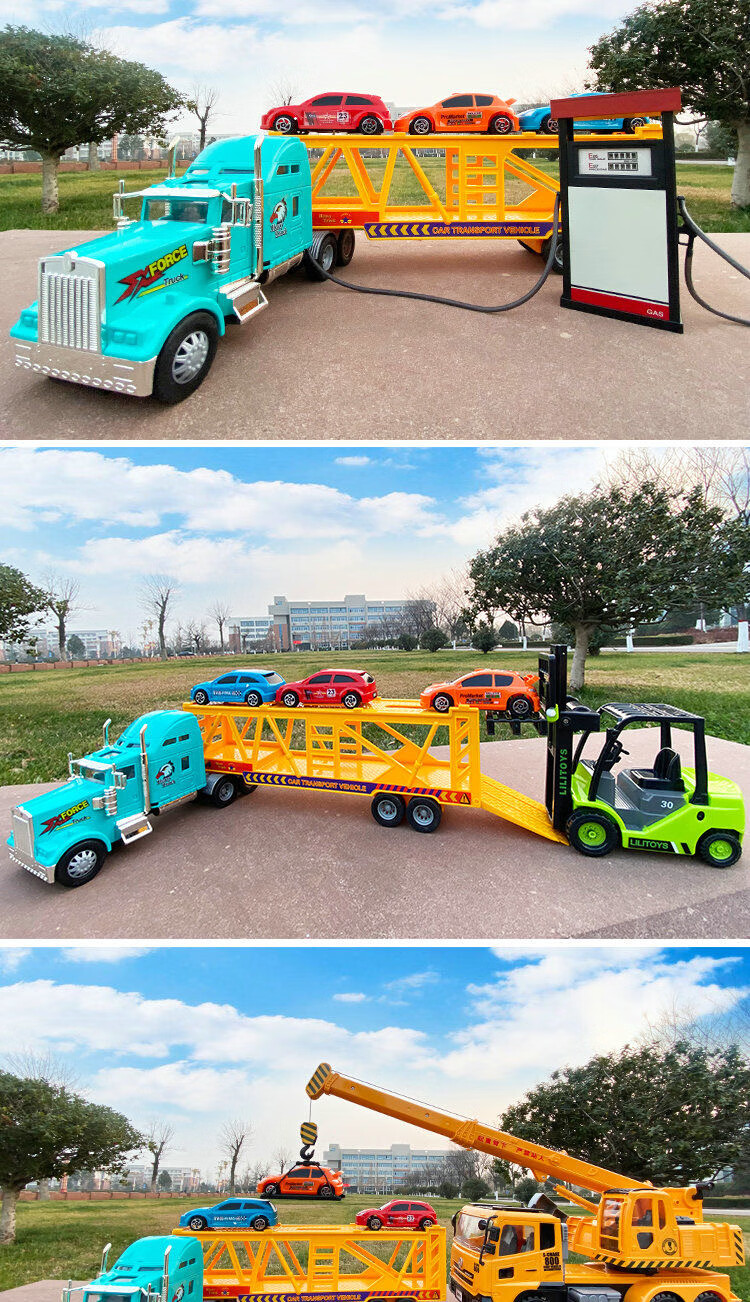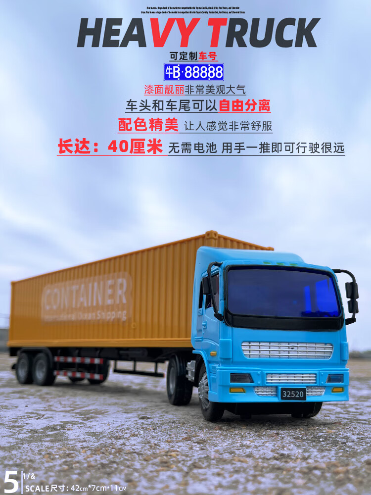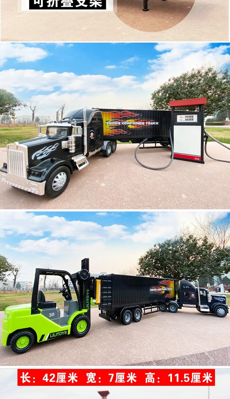 LI LI inertia container truck alloy engineering vehicle transport truck large truck container children's toys gift ornaments Chinese oil tank about 42 cm