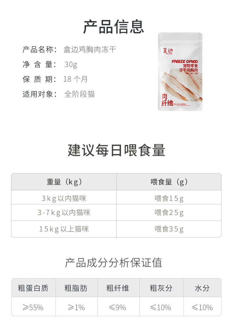 Box-side chicken small breast chicken breast freeze-dried cat snacks for adult and kittens to supplement nutrition, hair cheeks and calcium cat snacks, chicken breast 180g/6 bags, preferred