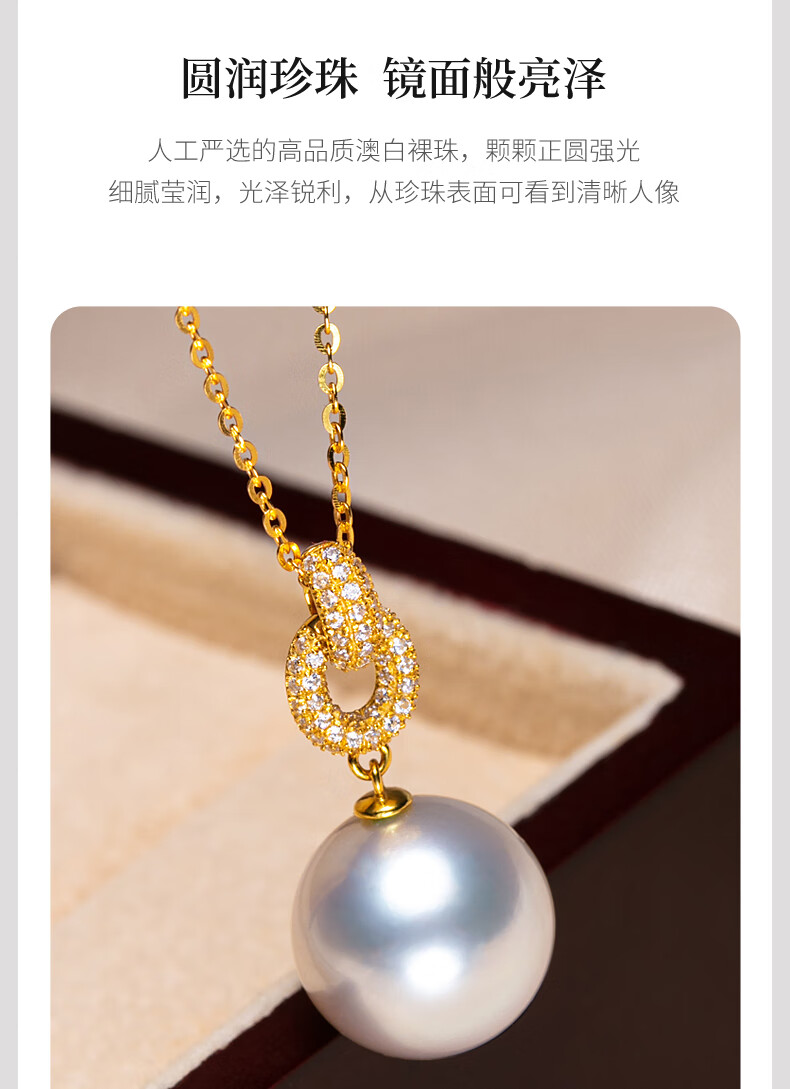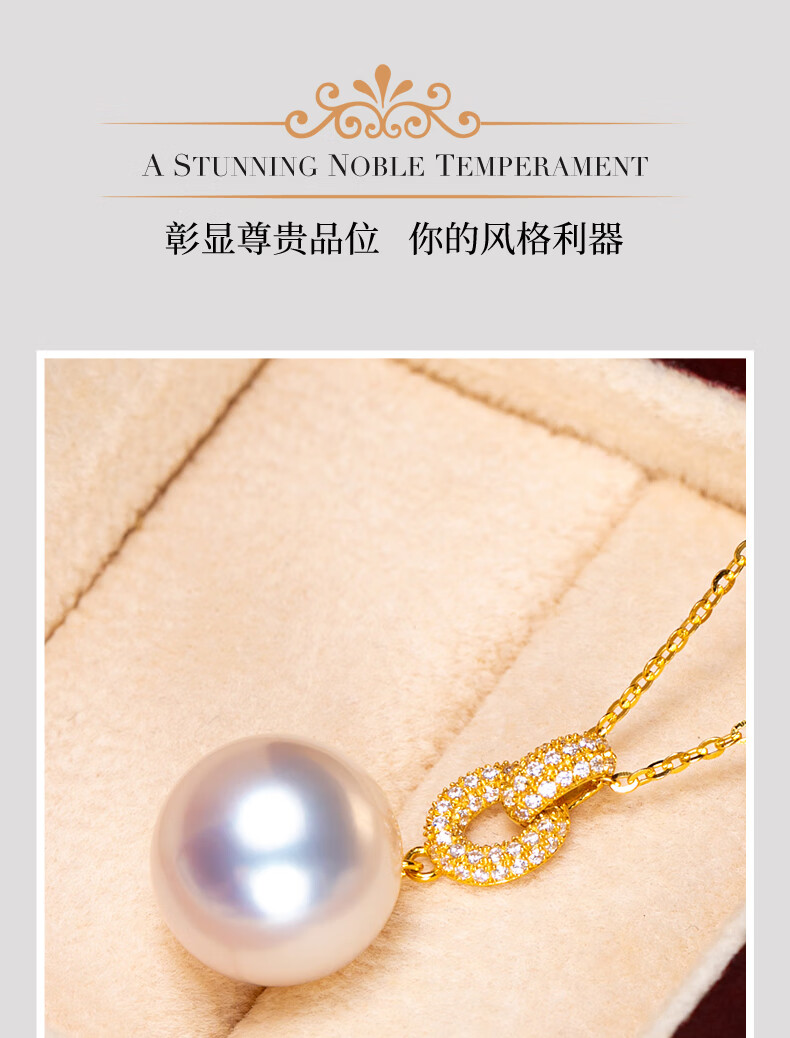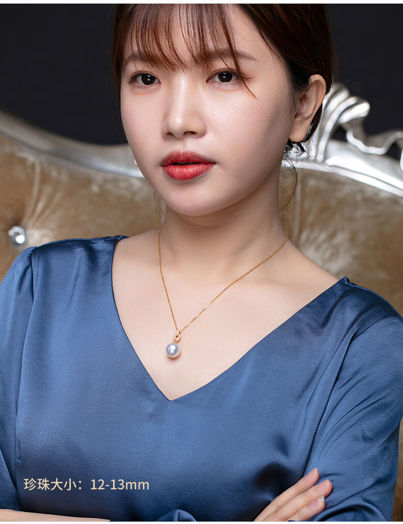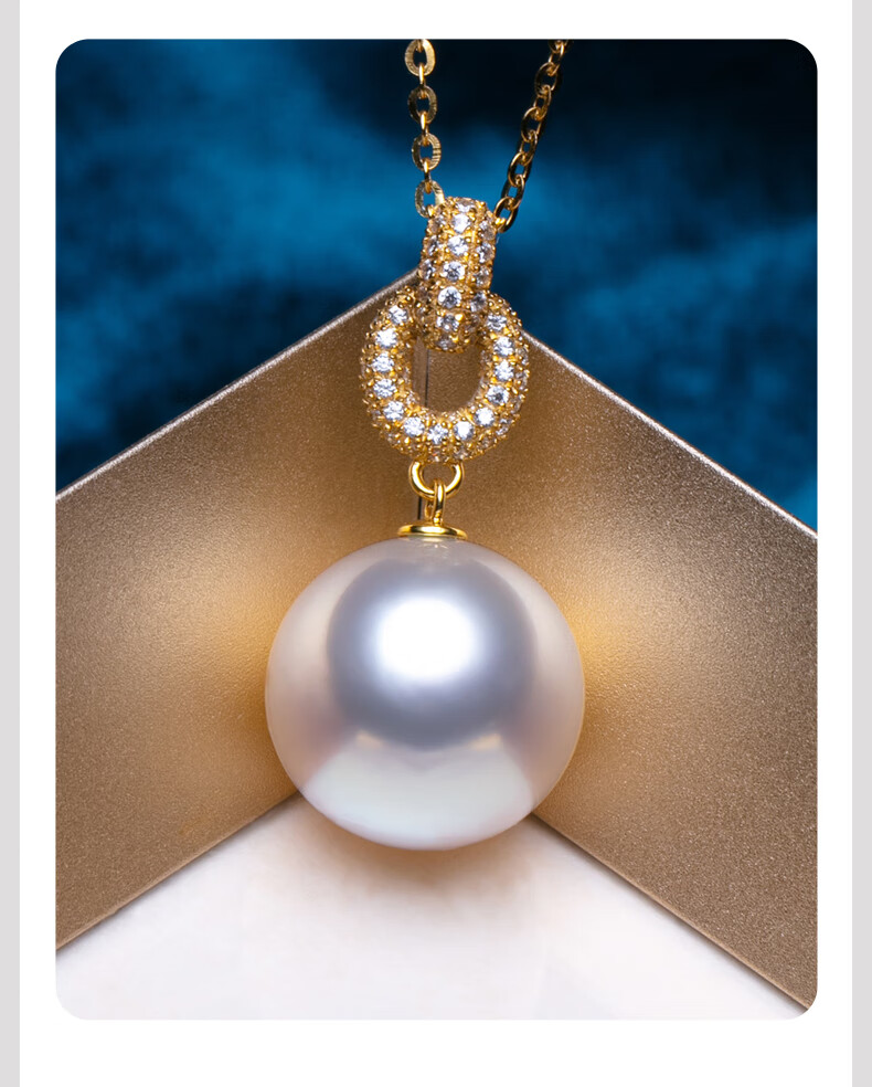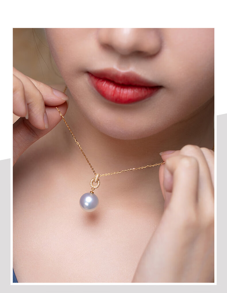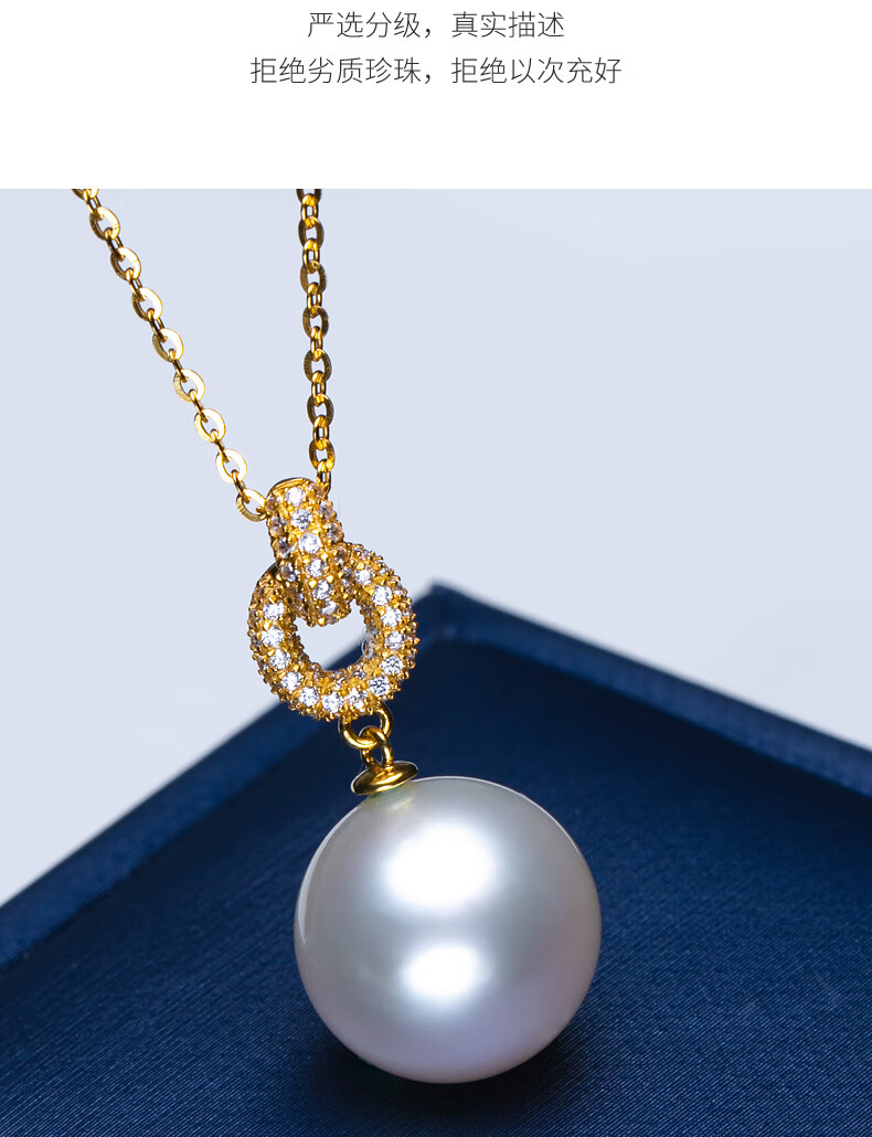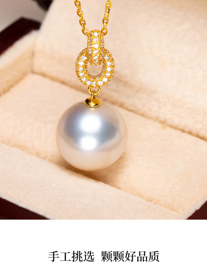 Nanxi 18k gold Australian white pearl pendant single South Sea white pearl seawater pearl necklace women's clavicle chain high quality jewelry yellow 18k gold 11-12mm+18K gold chain