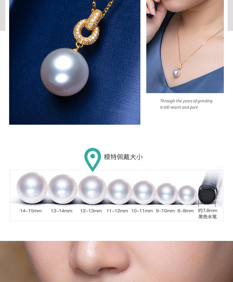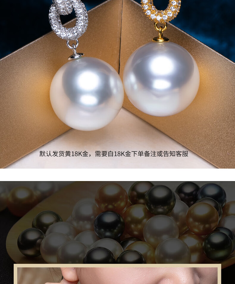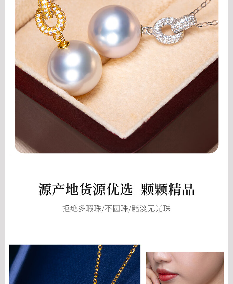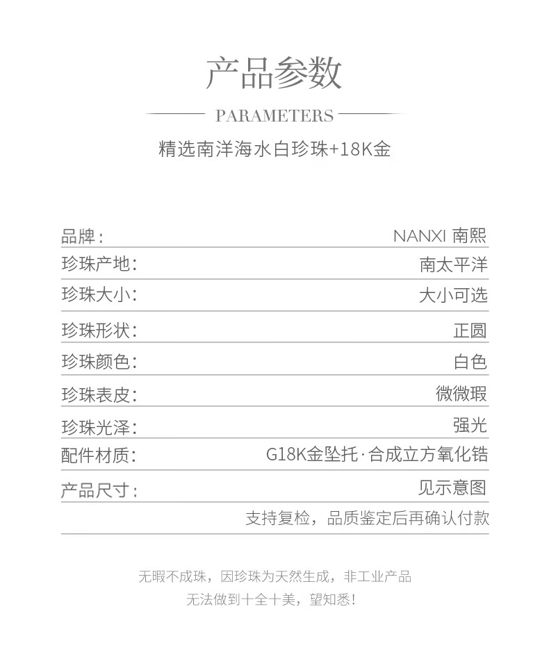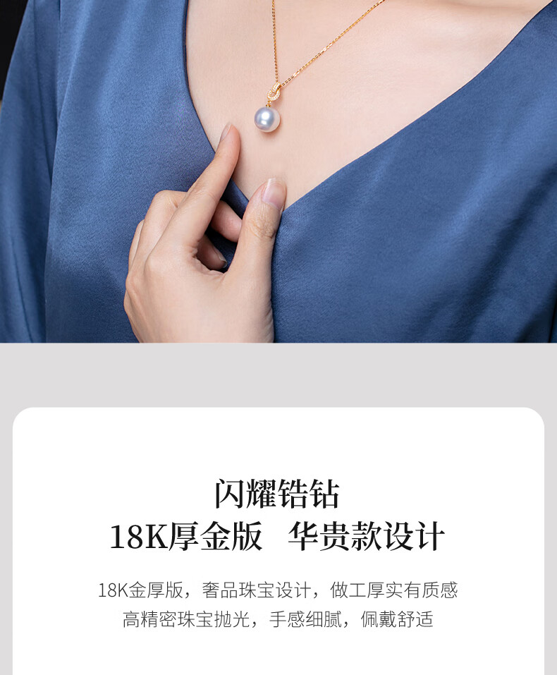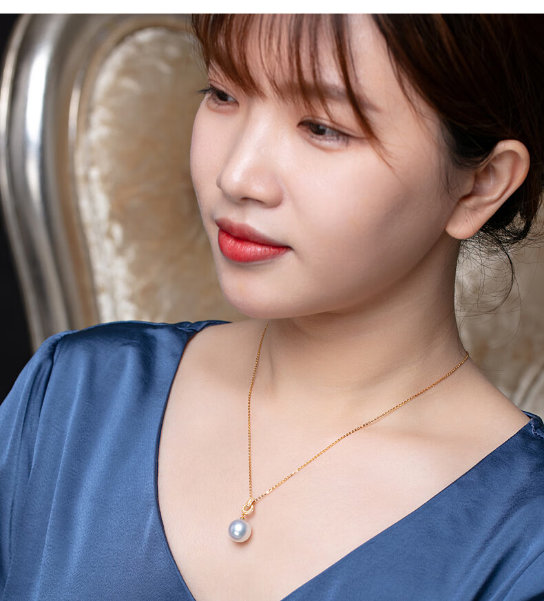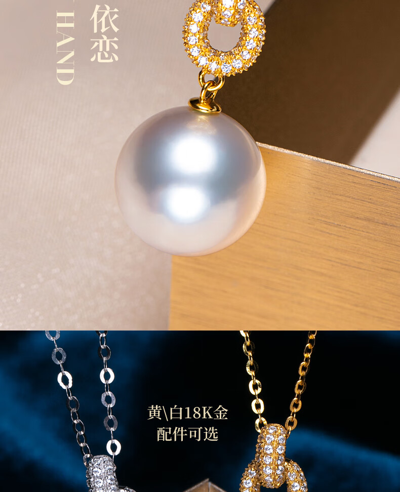 Nanxi 18k gold Australian white pearl pendant single South Sea white pearl seawater pearl necklace women's clavicle chain high quality jewelry yellow 18k gold 11-12mm+18K gold chain