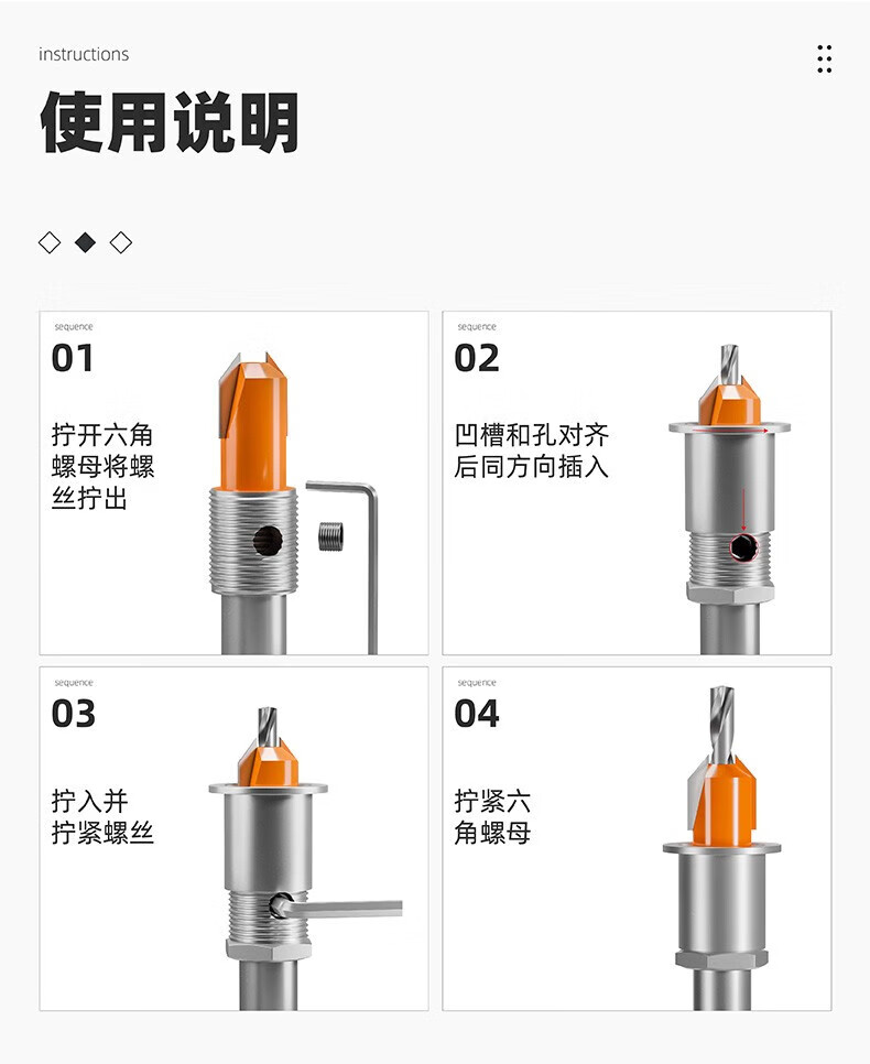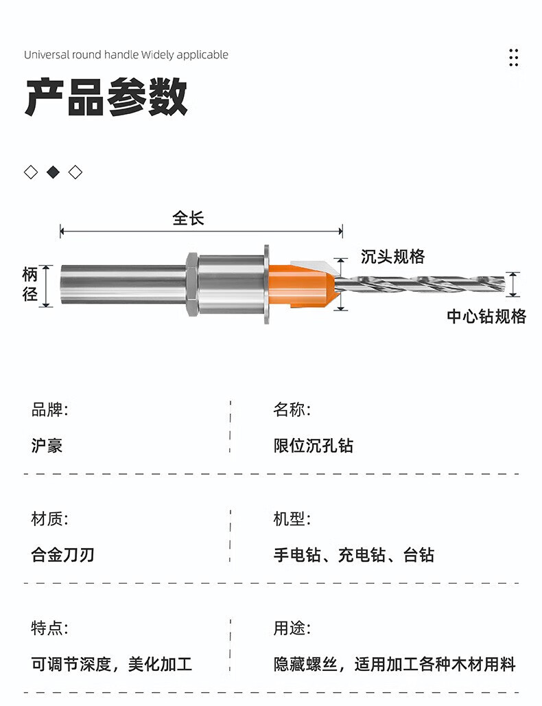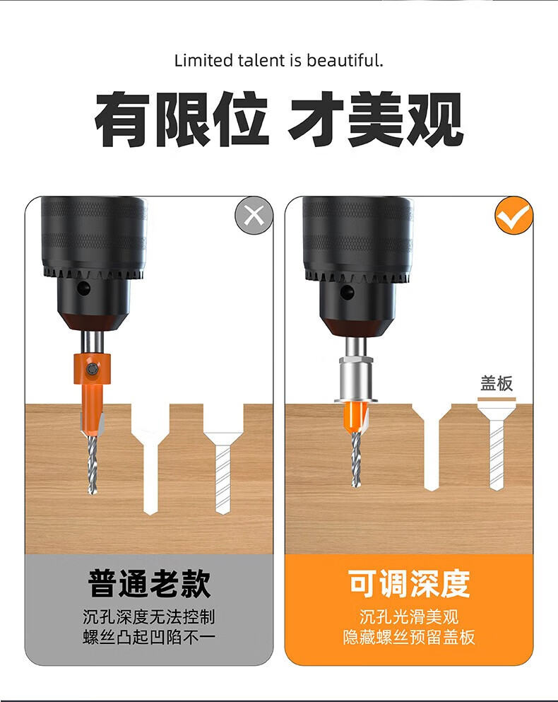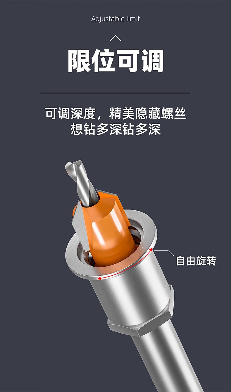 HUHAO woodworking countersink step drill bit limiter hole opener taper hole countersink drill positioning guide hole deep sinking drill bit upgrade with limiter 2.8*8*D8