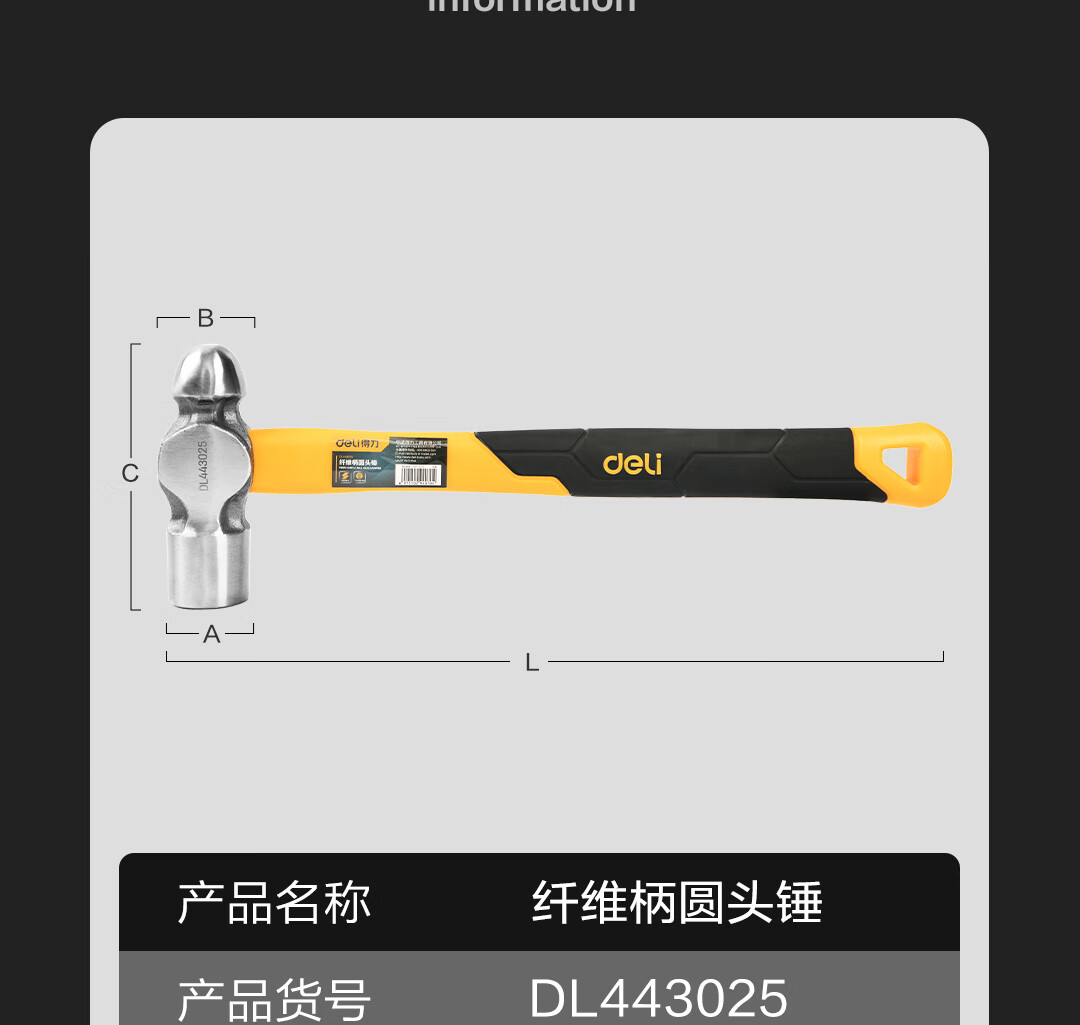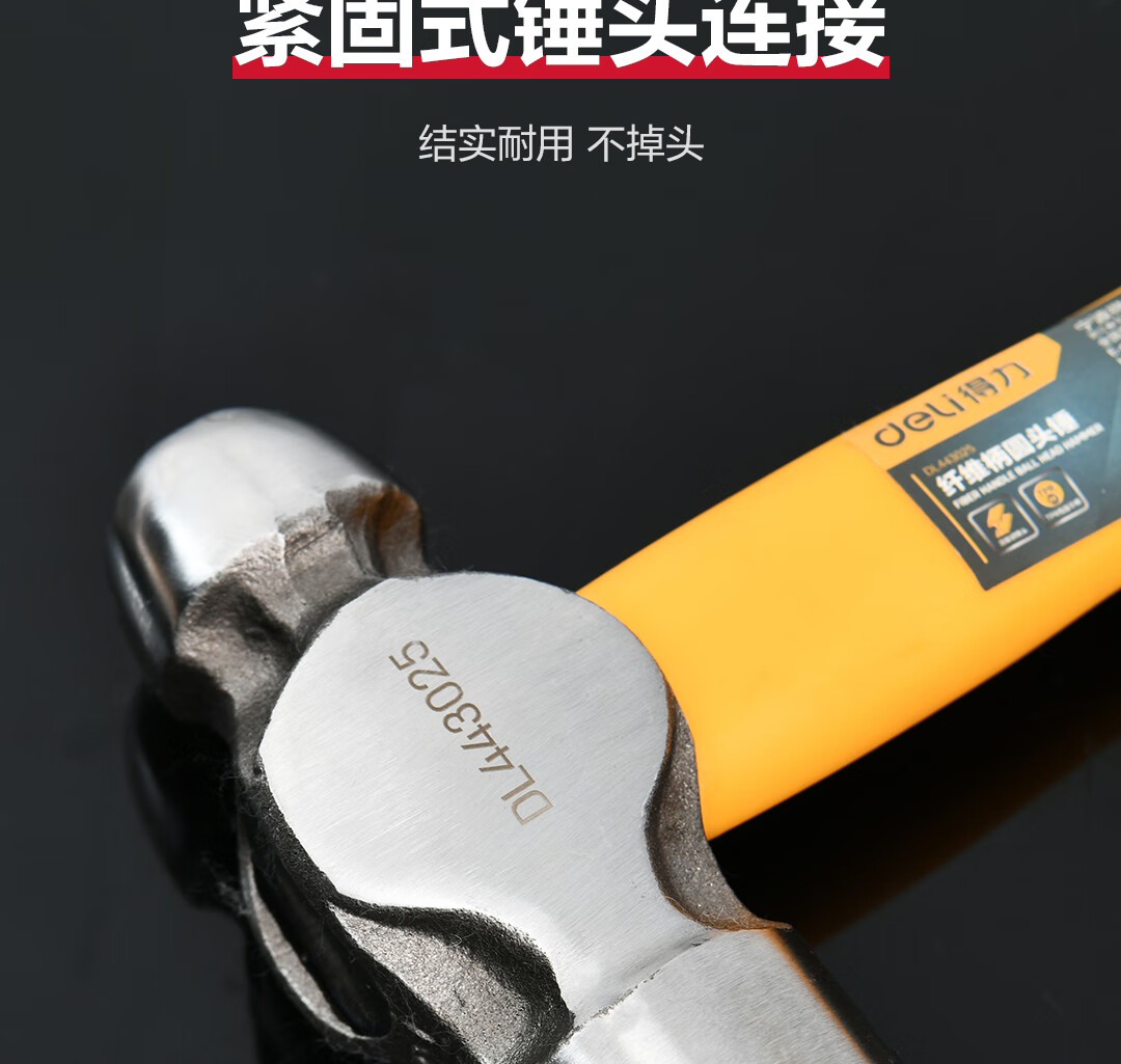 Deli (deli) round-head hammer fiber handle professional-grade small hammer hammer household hardware tools installation hammer percussion hammer large hammer round-head hammer fiber handle hammer surface (30mm)