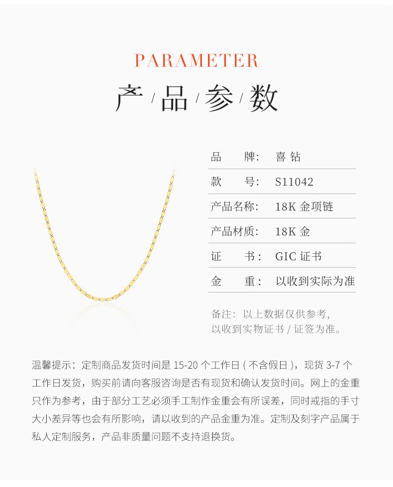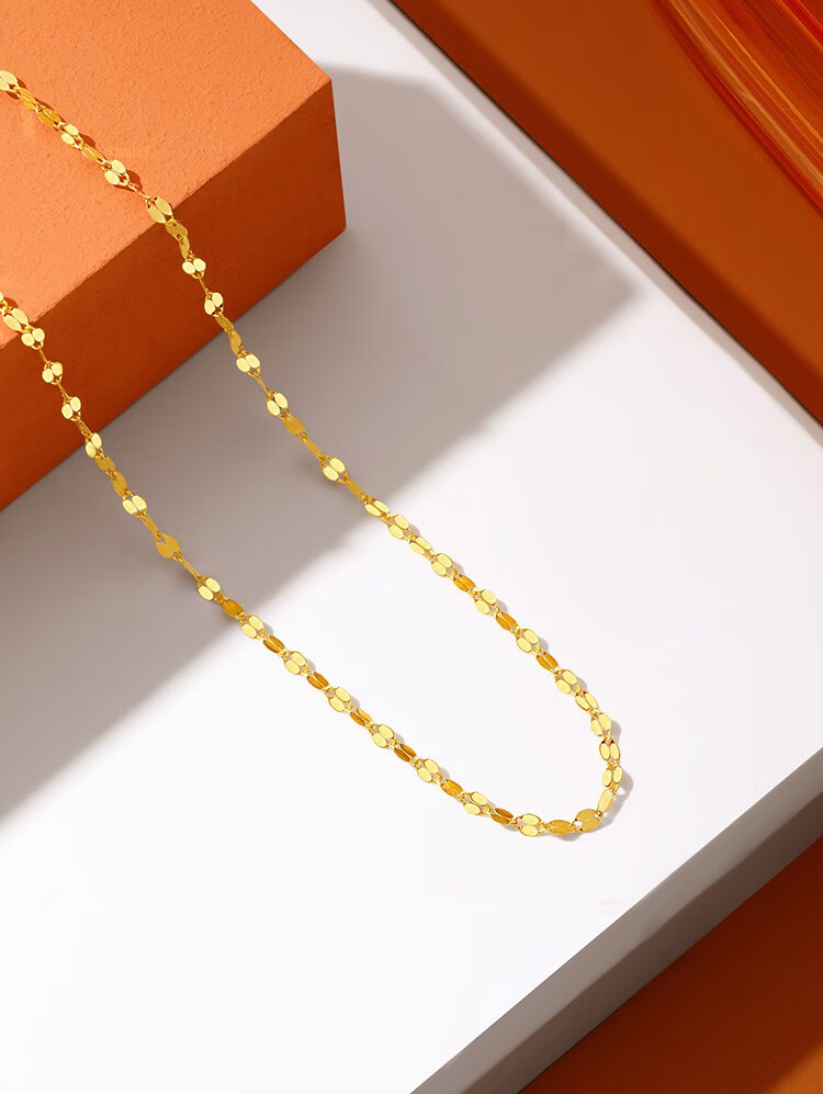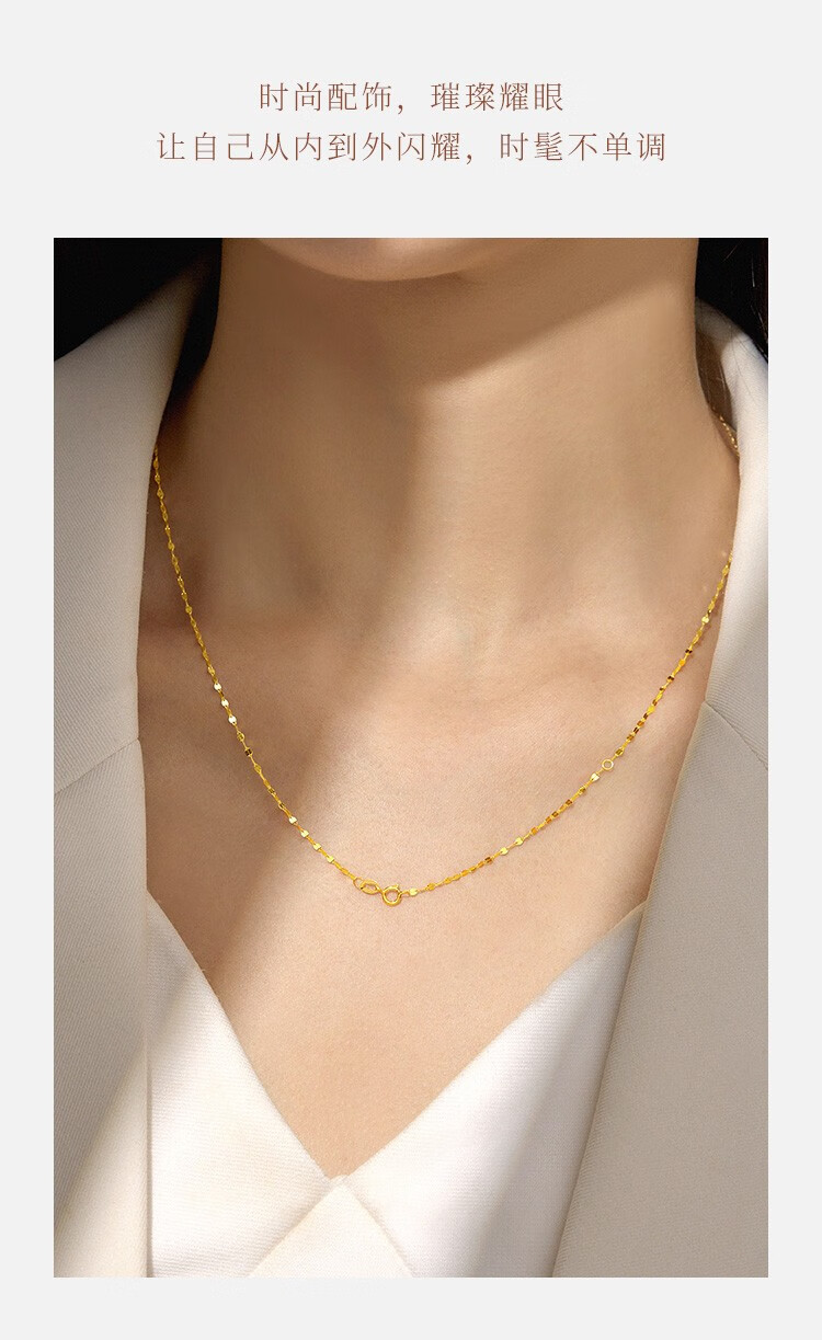 Hi Diamond 18K Gold Necklace Lip Chain Simple Fashionable K Gold Necklace for Wife and Girlfriend Plain Gold Colored Gold Clavicle Chain Yellow 18K Gold Approximately 0.54g