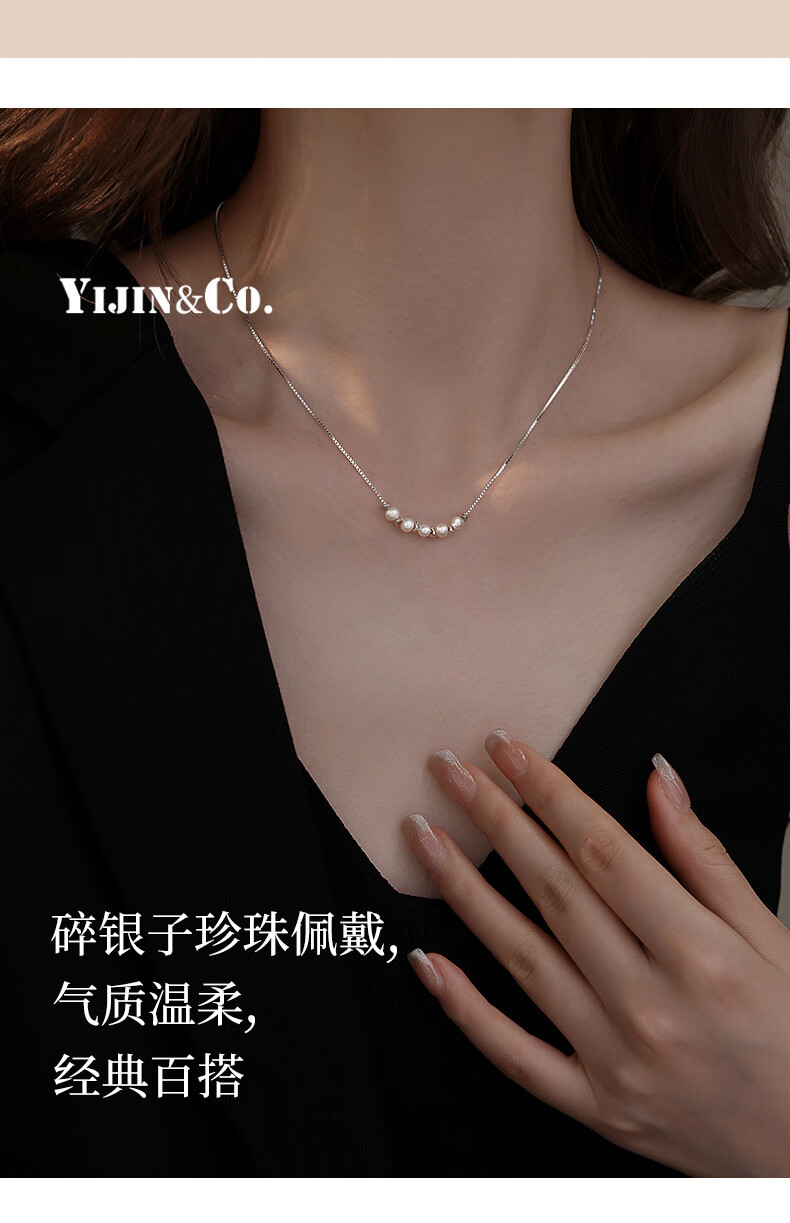 Yijin S925 sterling silver necklace for women 2025 new freshwater pearl necklace high-end design niche light luxury clavicle pendant exquisite gift box freshwater pearl necklace