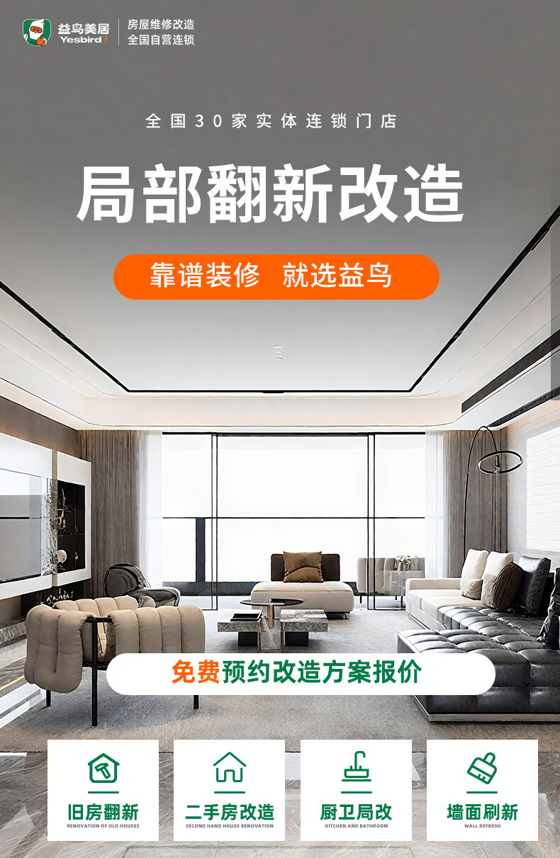 Yiniao (YINIAO) old house renovation kitchen living room bathroom decoration / half-inclusive full-inclusive refresh construction partial decoration service door-to-door appointment