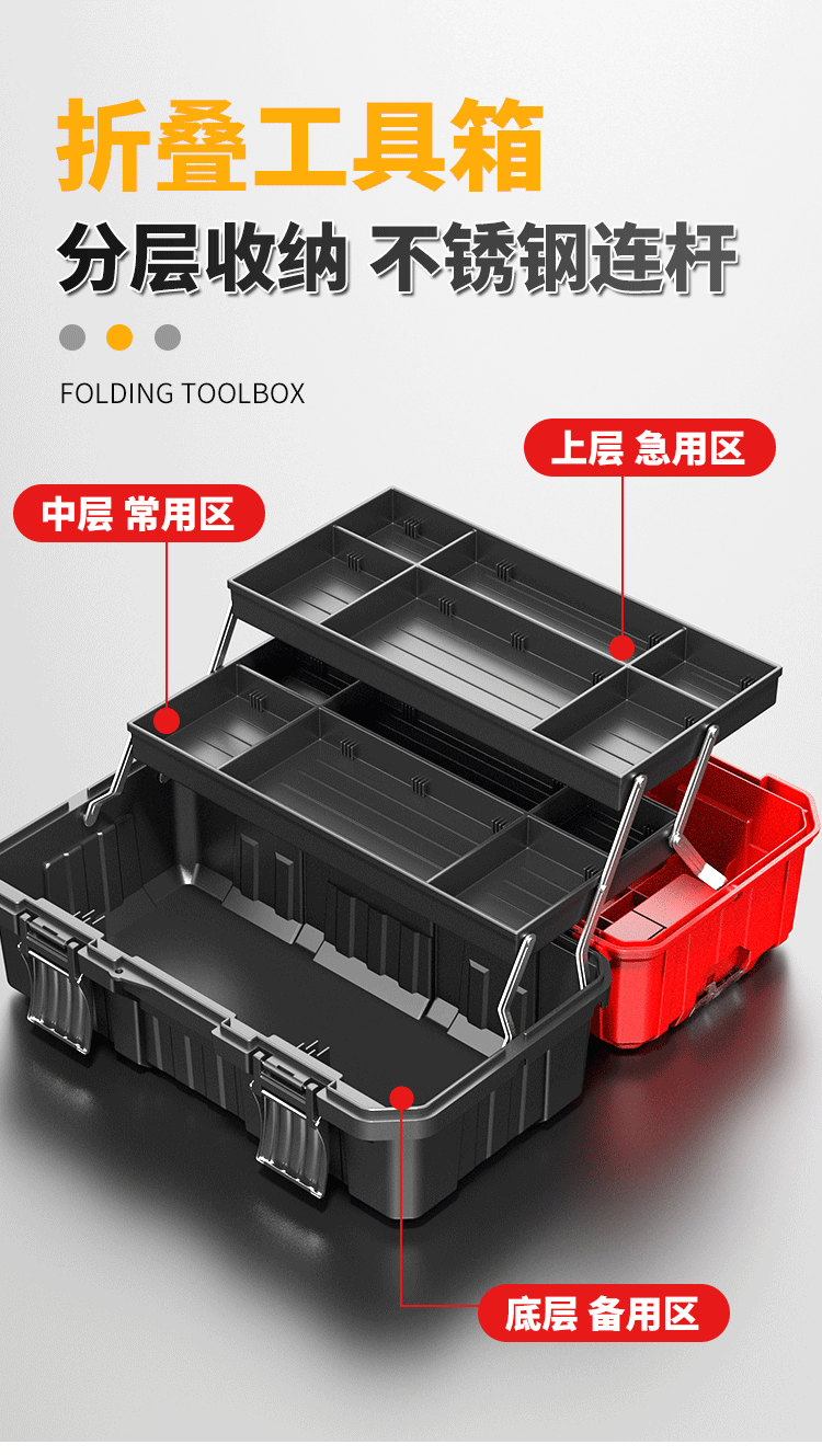 Otis Folding Tool Box Household Multi-Function Hardware Industrial Grade Three-Layer Folding Electrician Special Storage Box 17-inch Folding Tool Box Classic Model