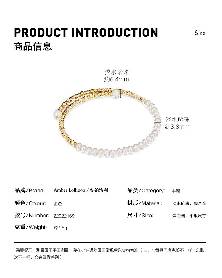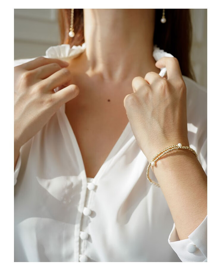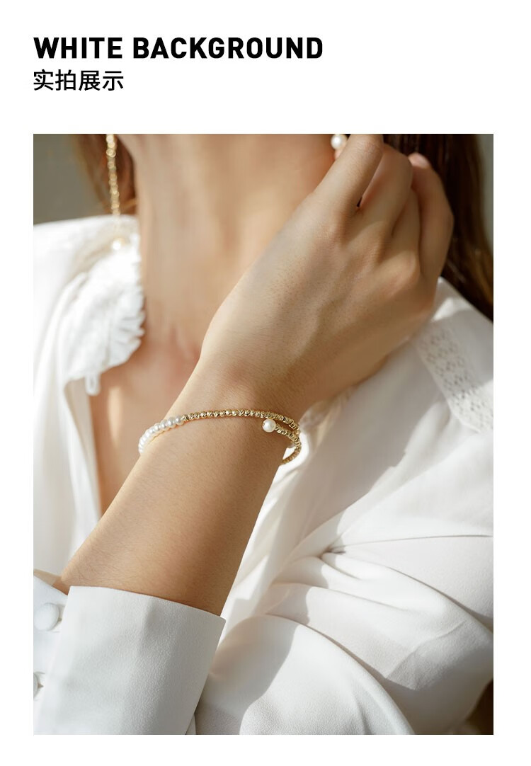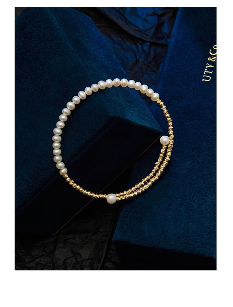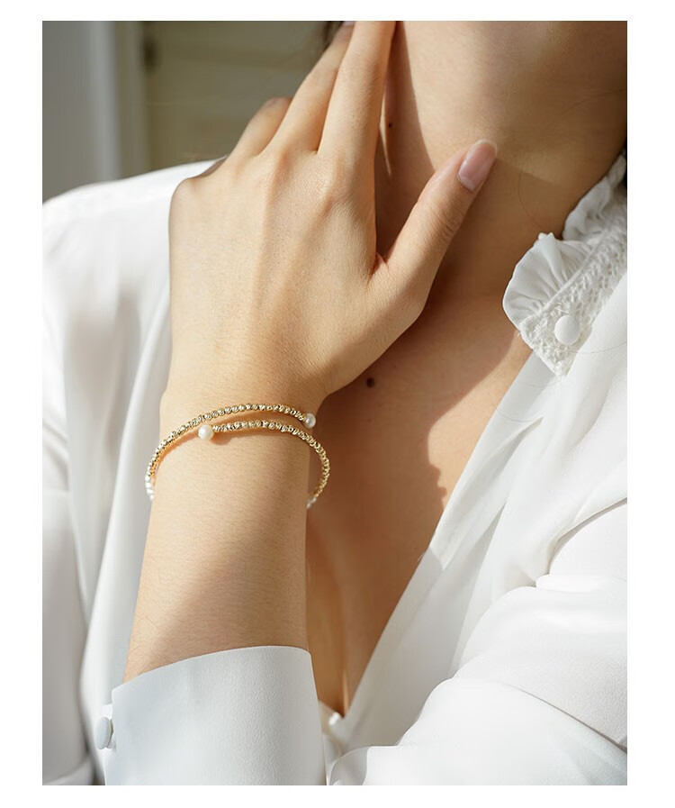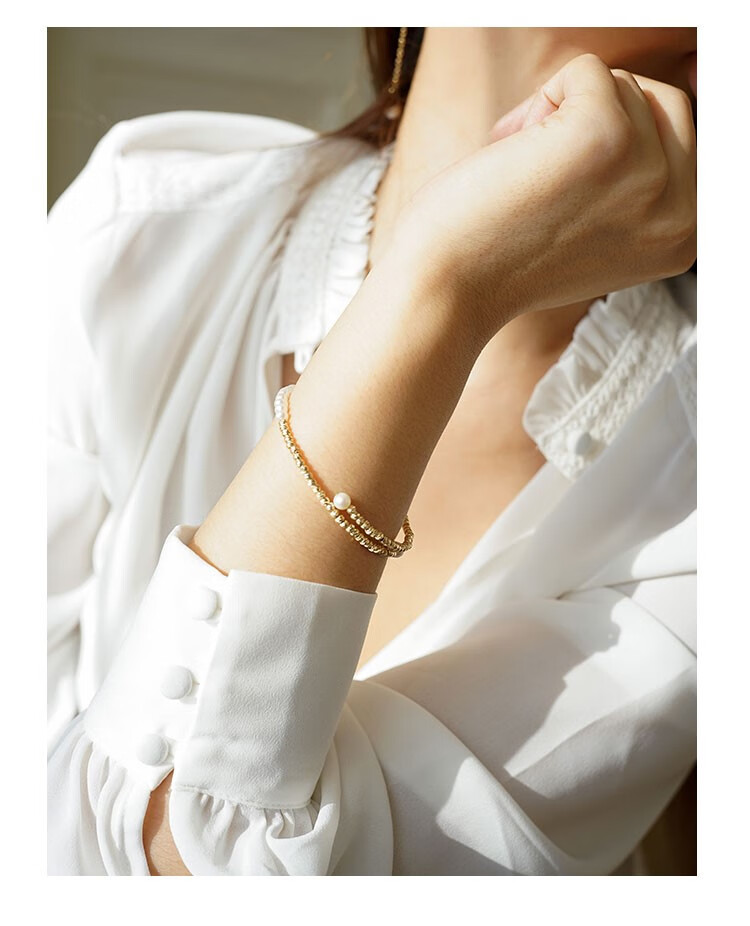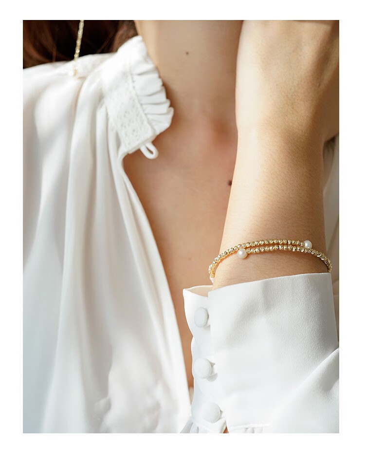 Amber Lollipop Wang Yuwen's same style pearl bracelet for women niche bracelet bracelet anniversary birthday gift for girlfriend and wife gold bracelet (pearl + 14k gold plated)