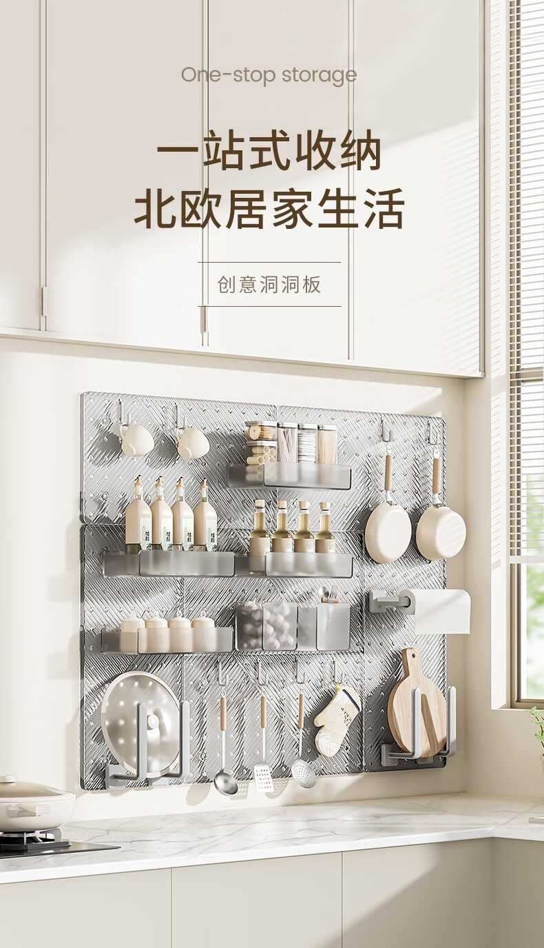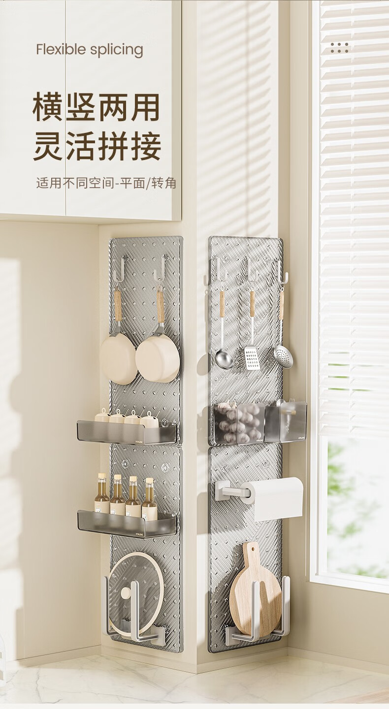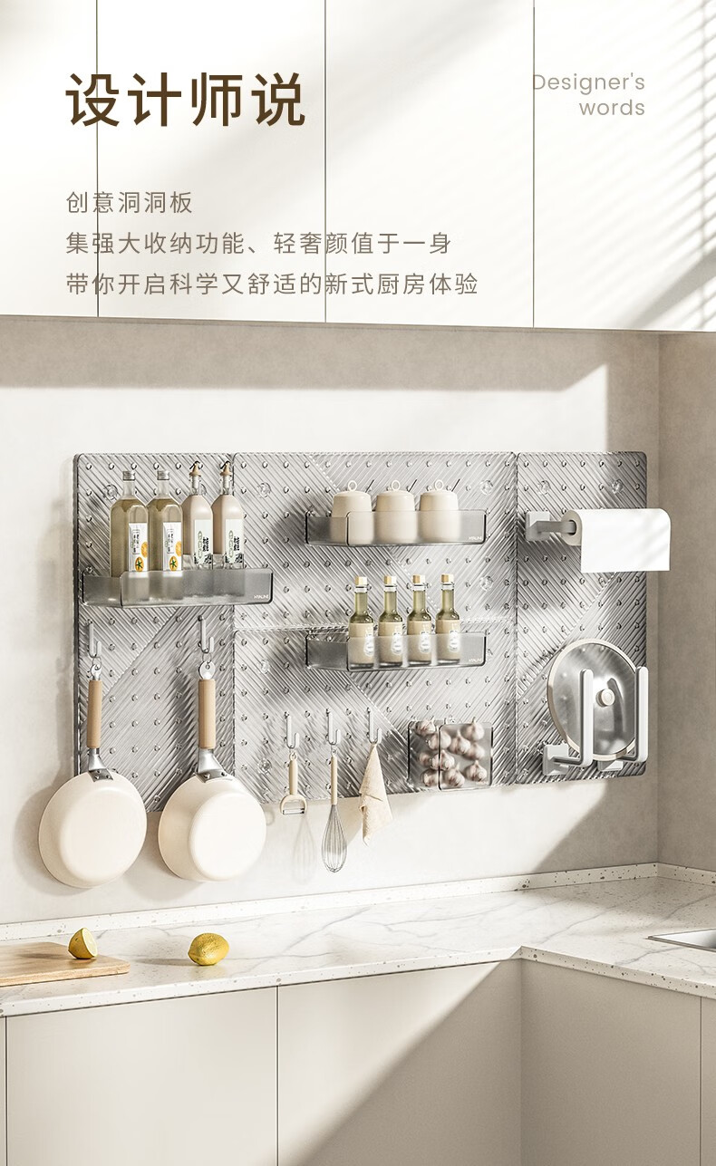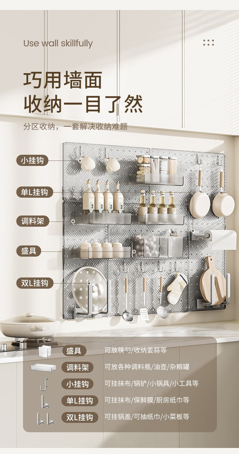 Plazotta seit 1893 Germany perforated board can be upright can be clamped without punching pot and spatula rack kitchen hook storage rack pot and spice rack 5 gray hooks