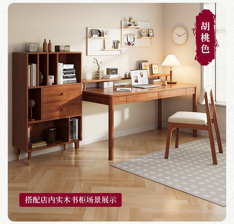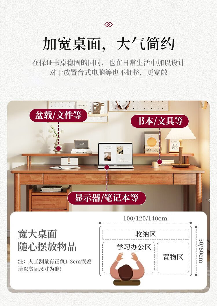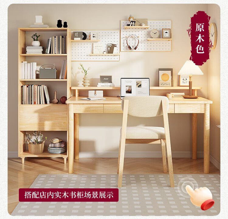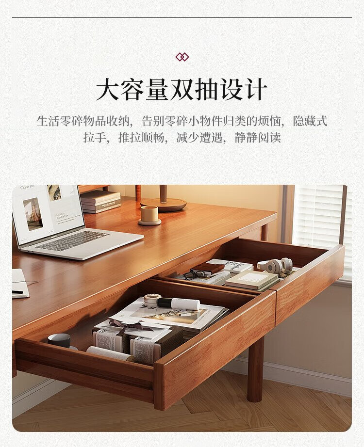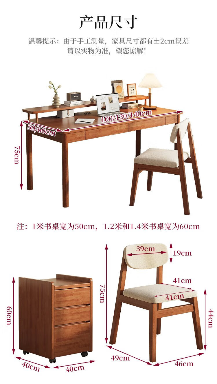 Shuge solid wood desk study table office desk computer desk desktop primary and secondary school student writing desk home desk and chair solid wood color single table 120*60CM-double drawer