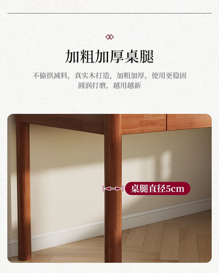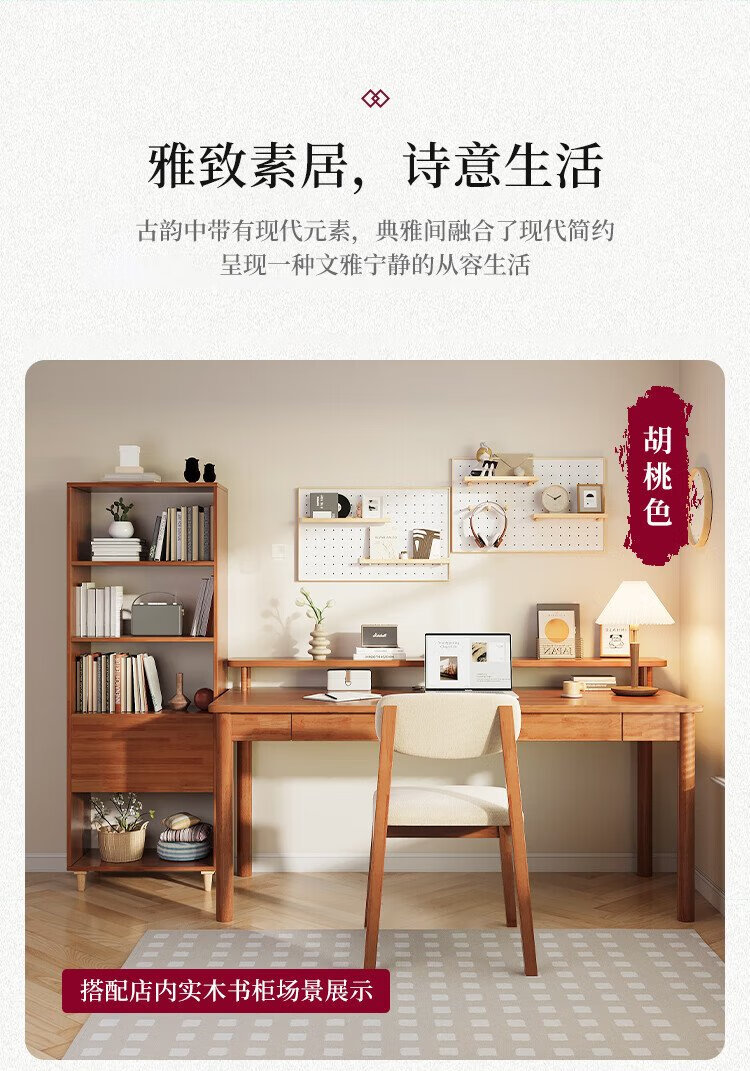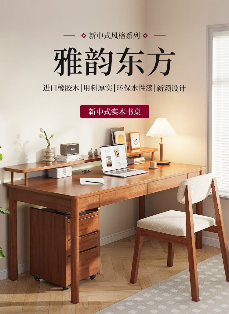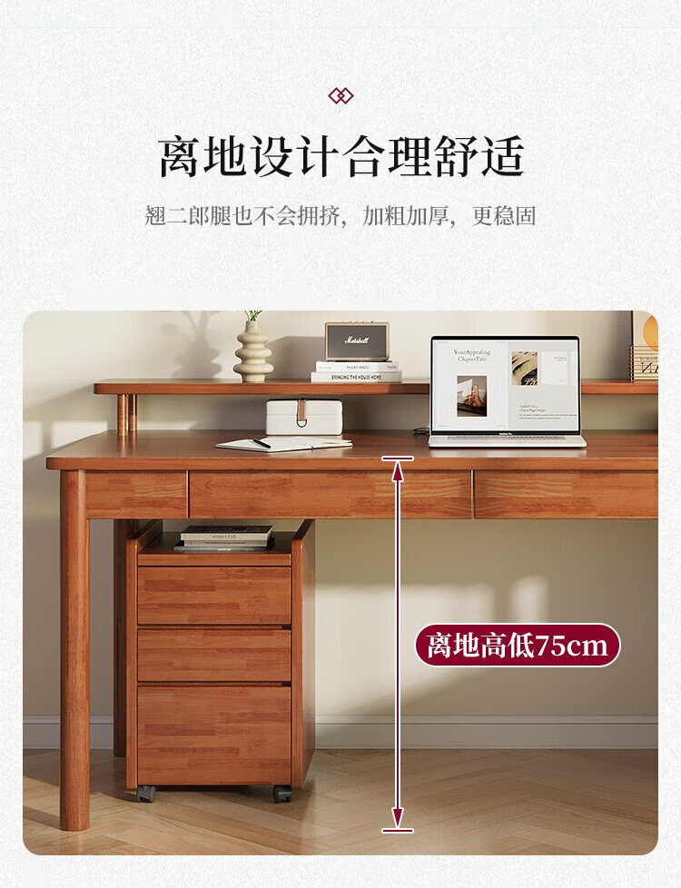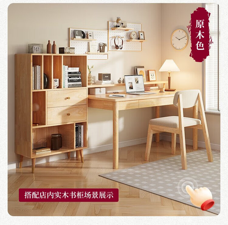 Shuge solid wood desk study table office desk computer desk desktop primary and secondary school student writing desk home desk and chair solid wood color single table 120*60CM-double drawer
