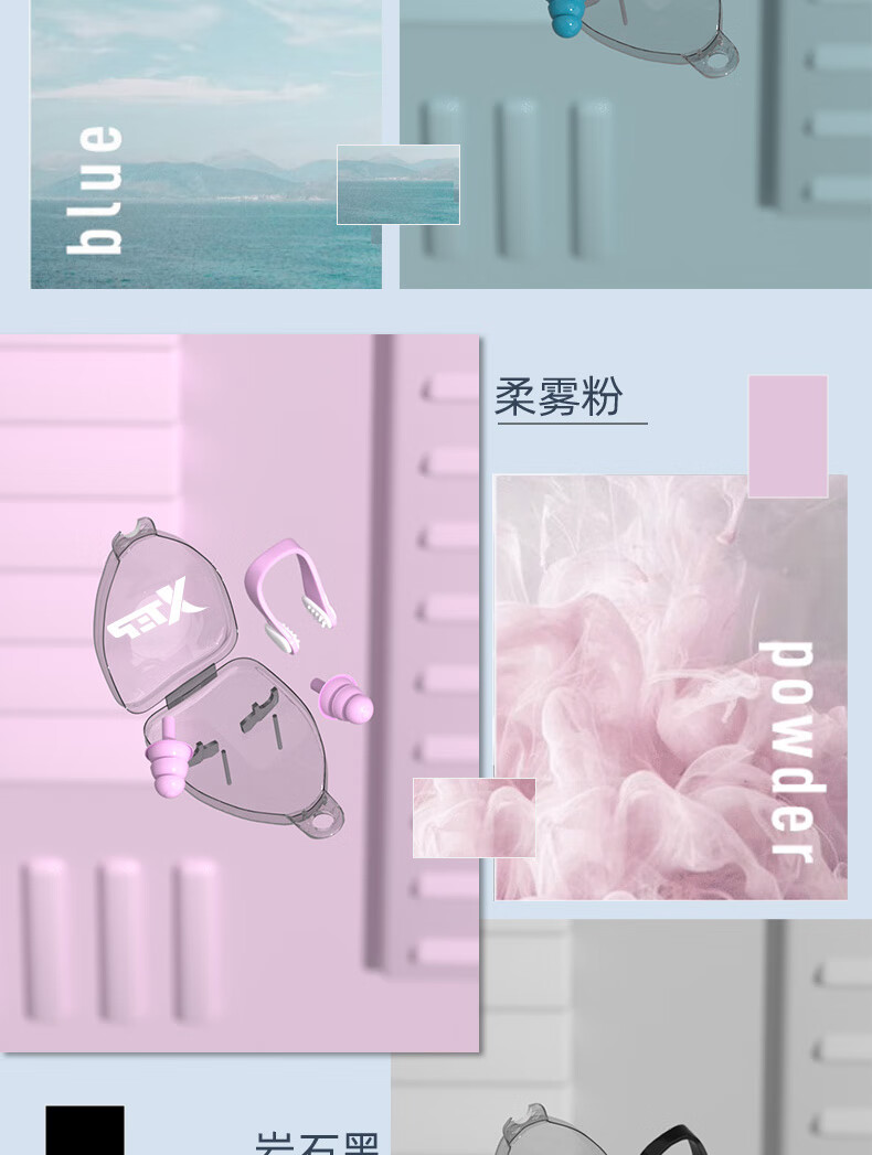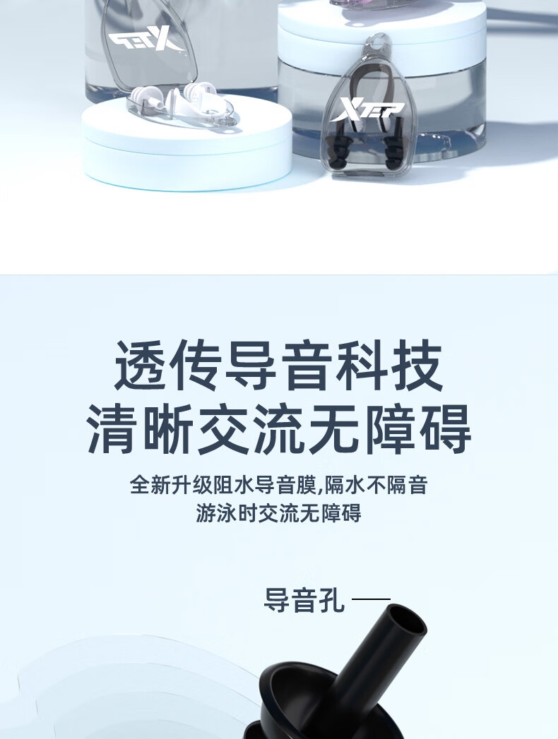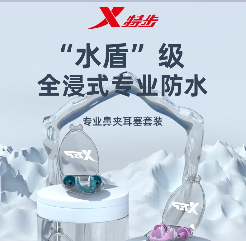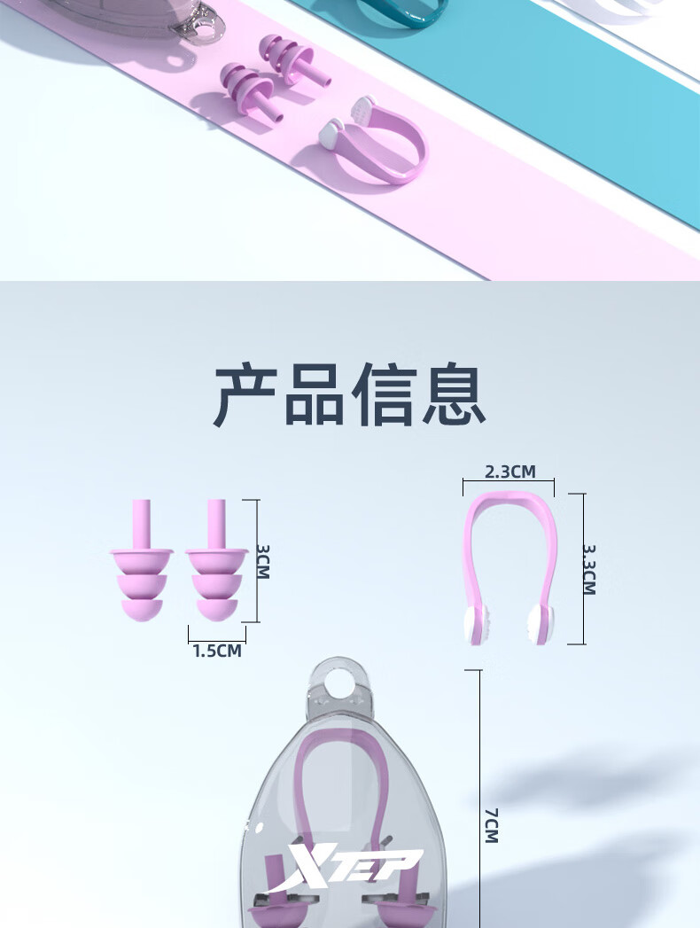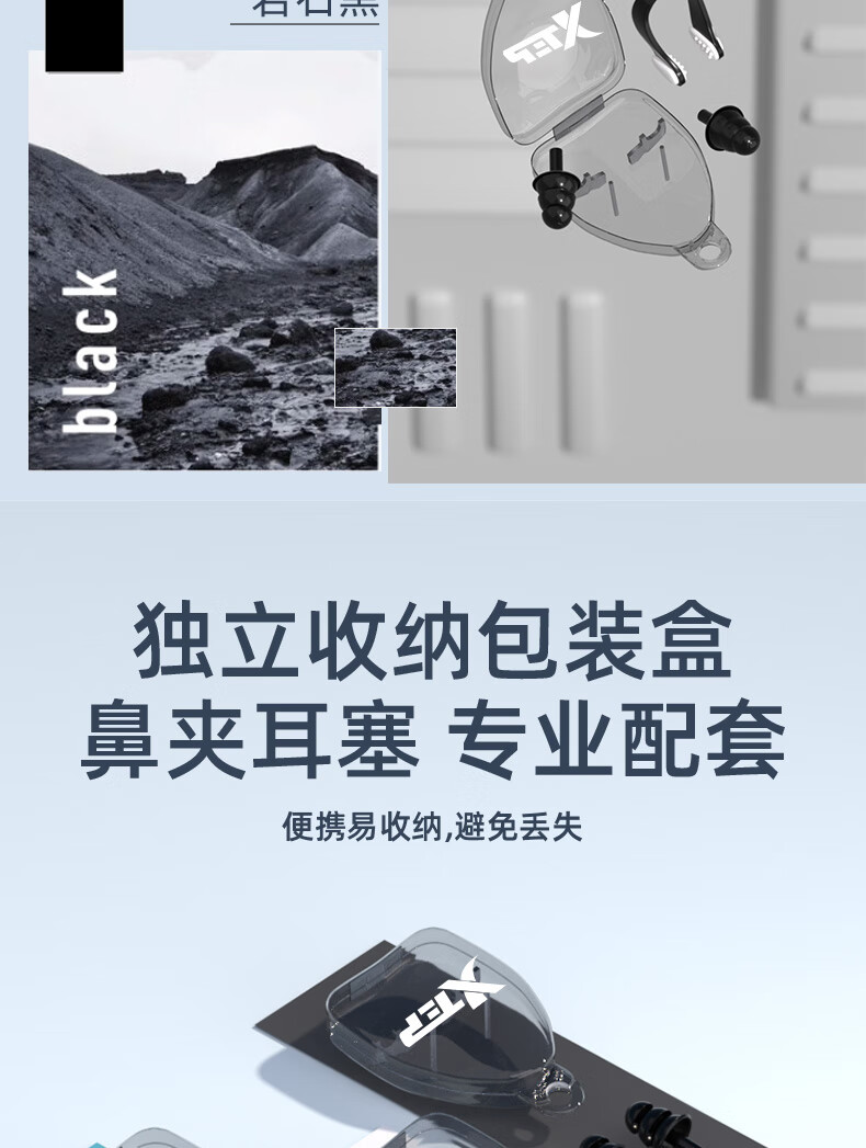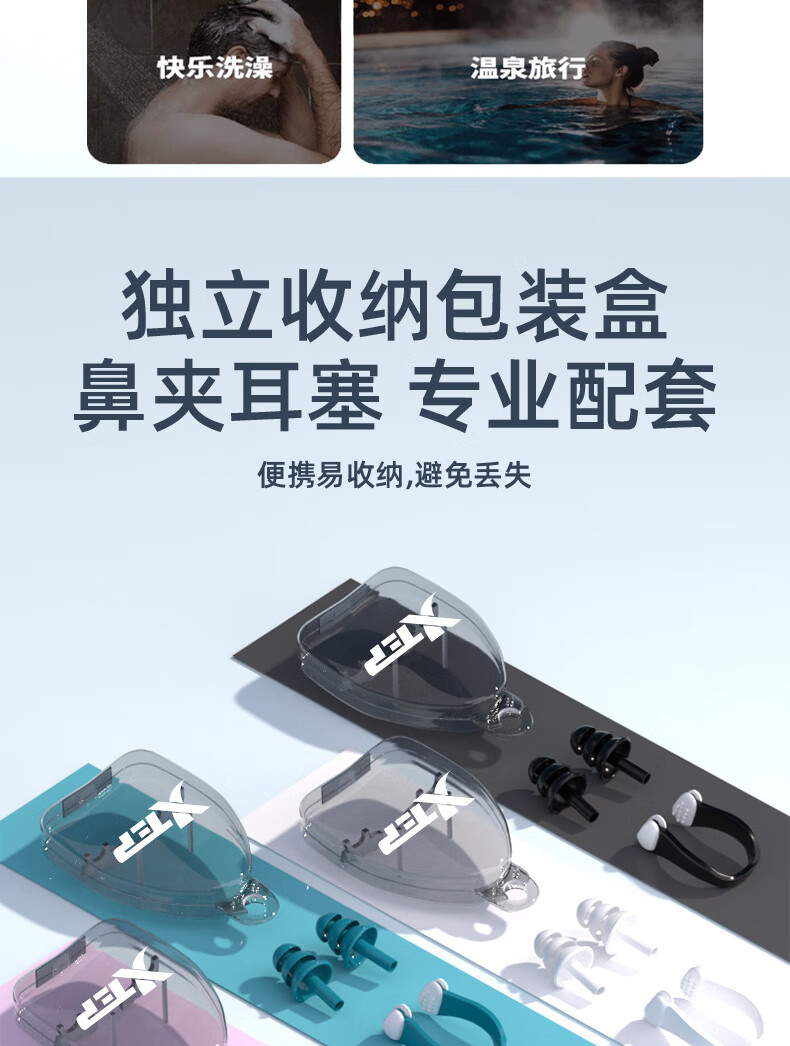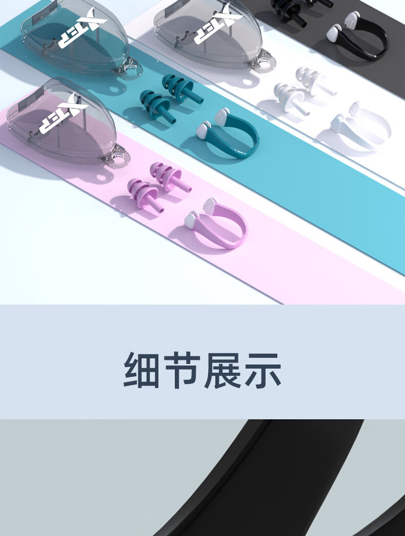 XTEP swimming earplugs waterproof professional swimming bath anti-water ingress non-soundproof anti-choking children's diving nose clip artifact set rock black