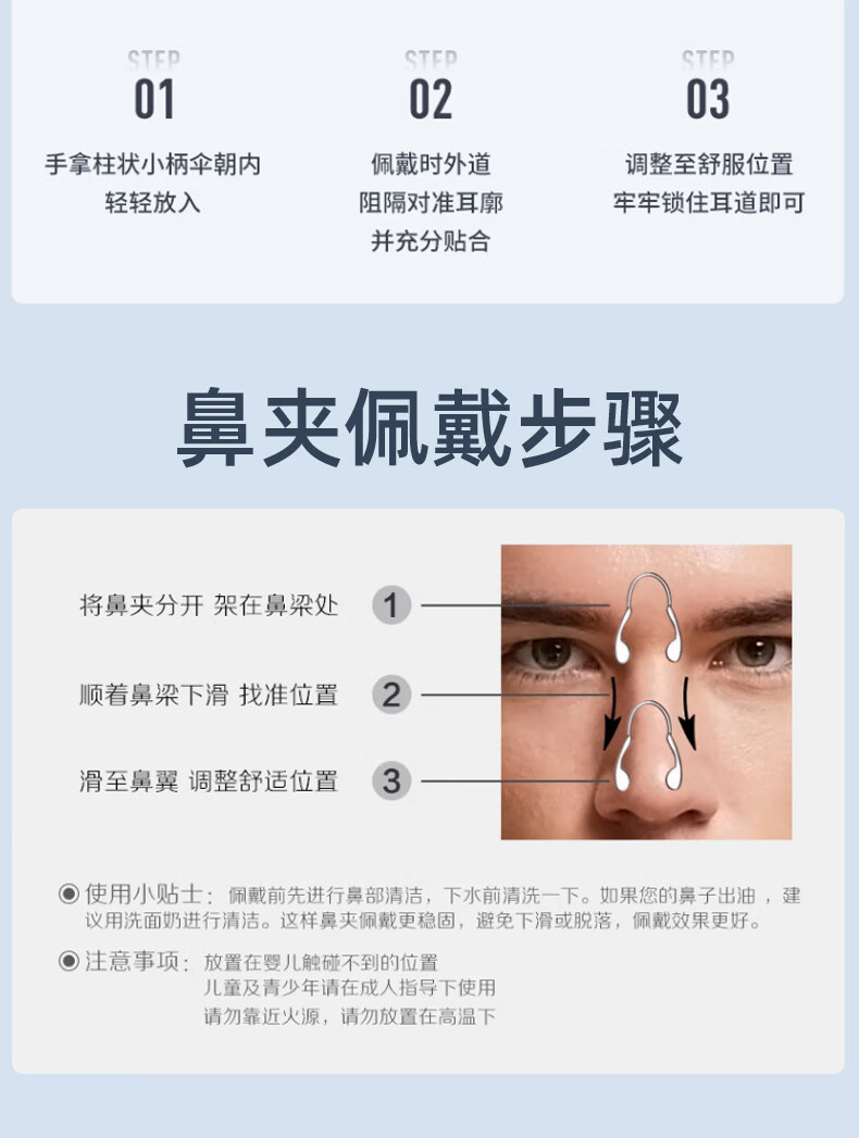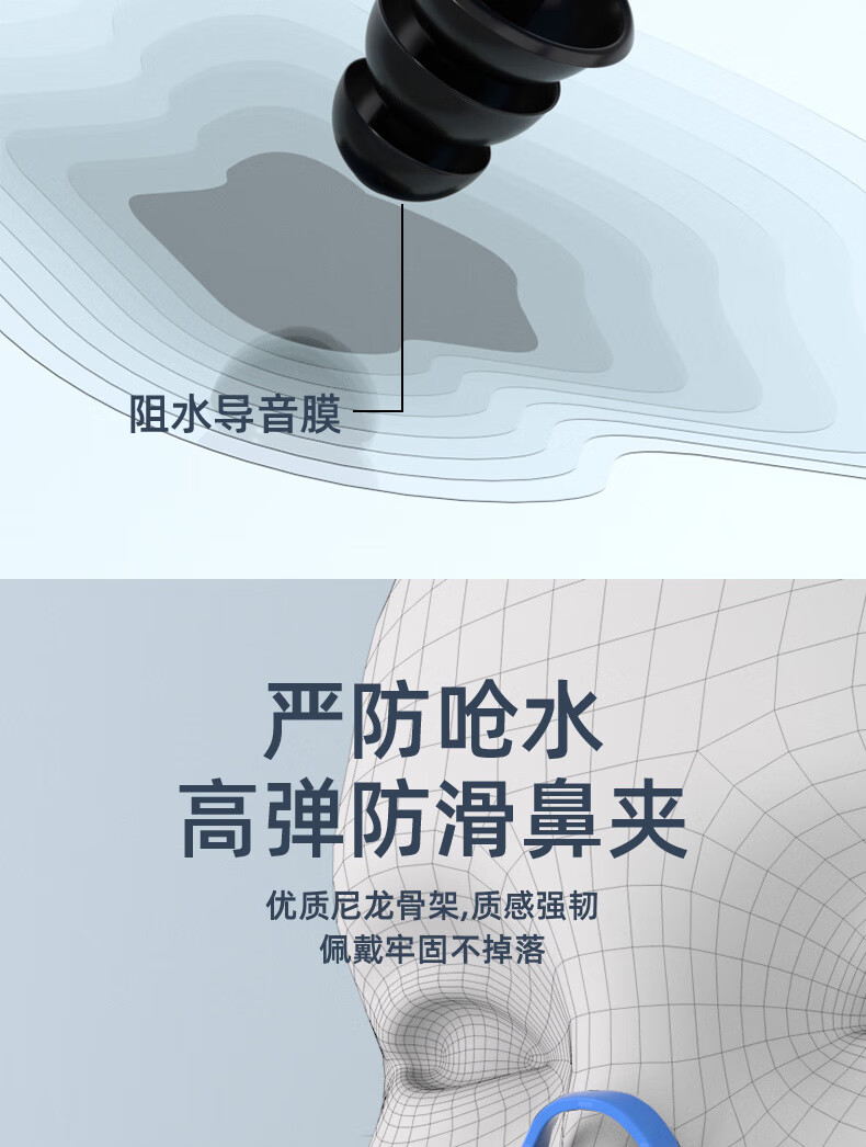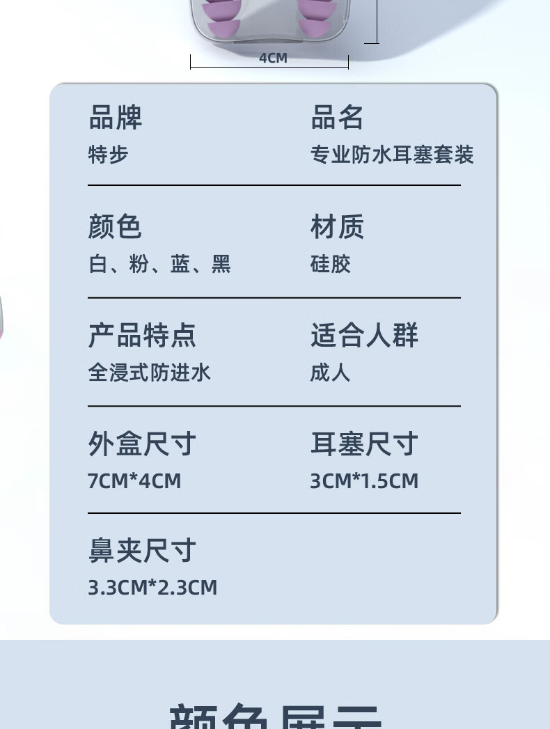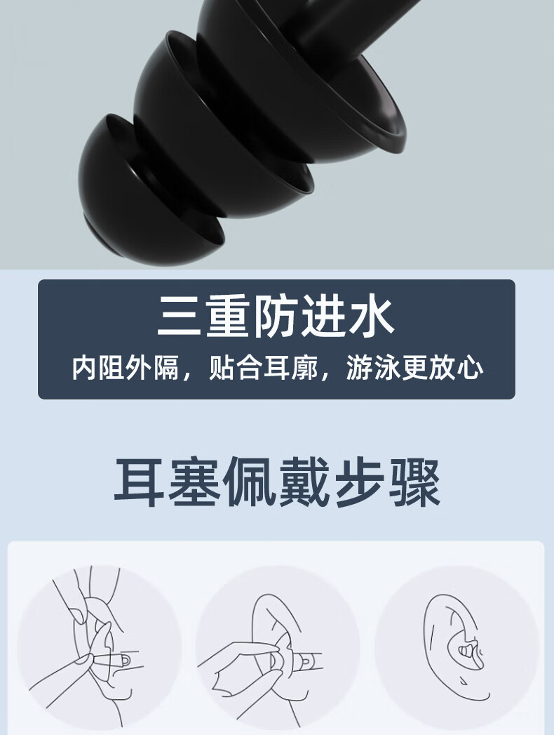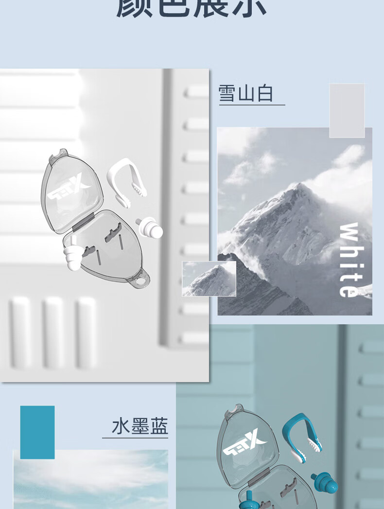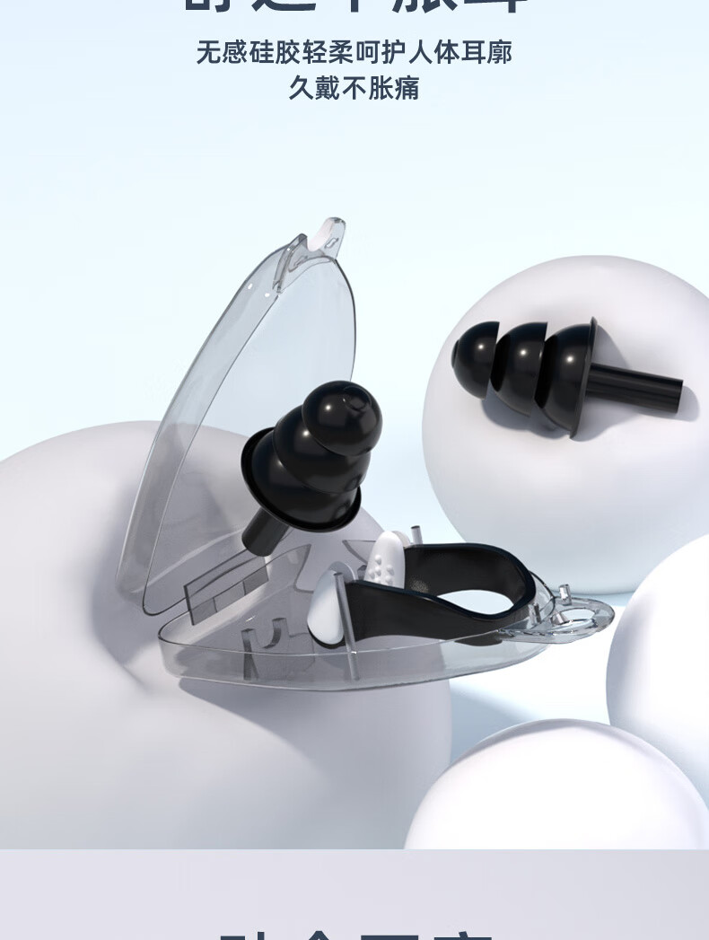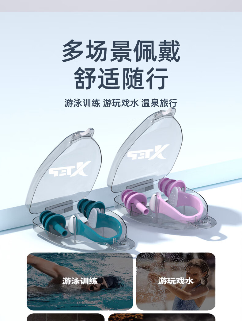 XTEP swimming earplugs waterproof professional swimming bath anti-water ingress non-soundproof anti-choking children's diving nose clip artifact set rock black