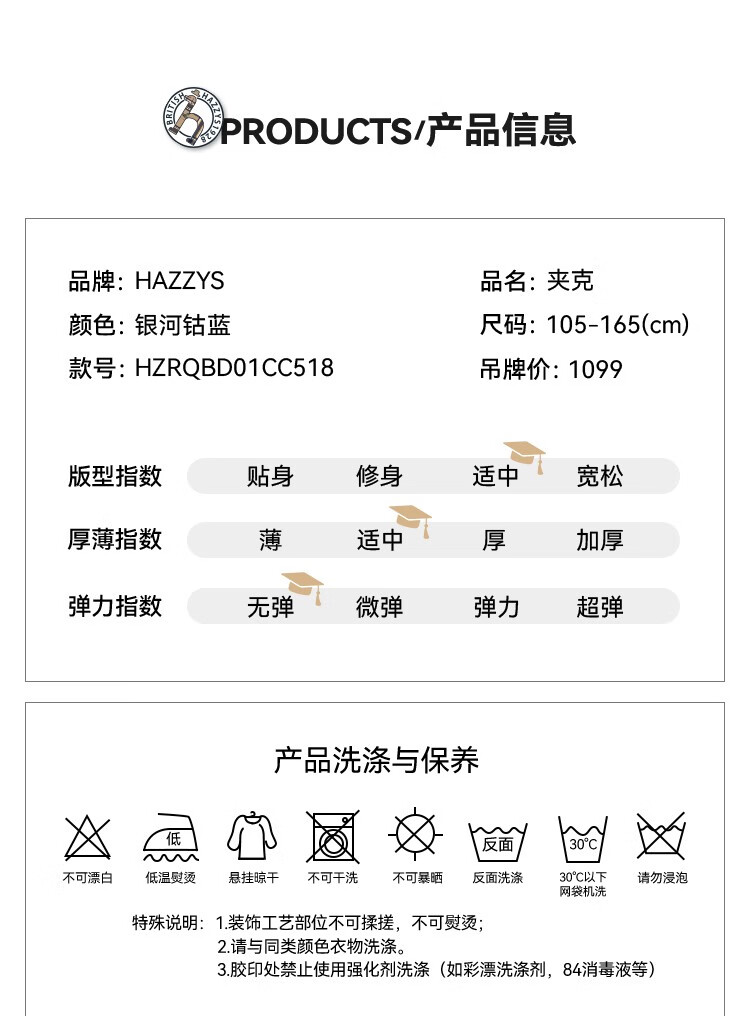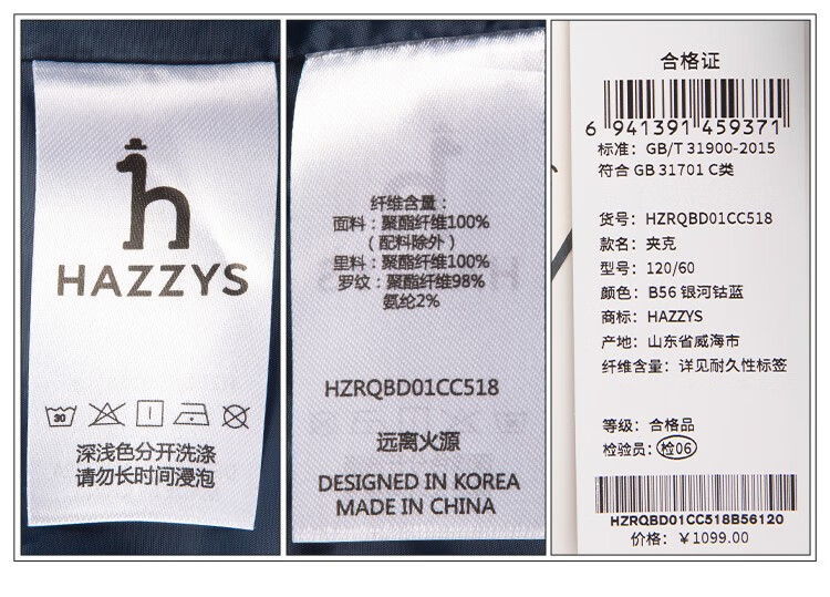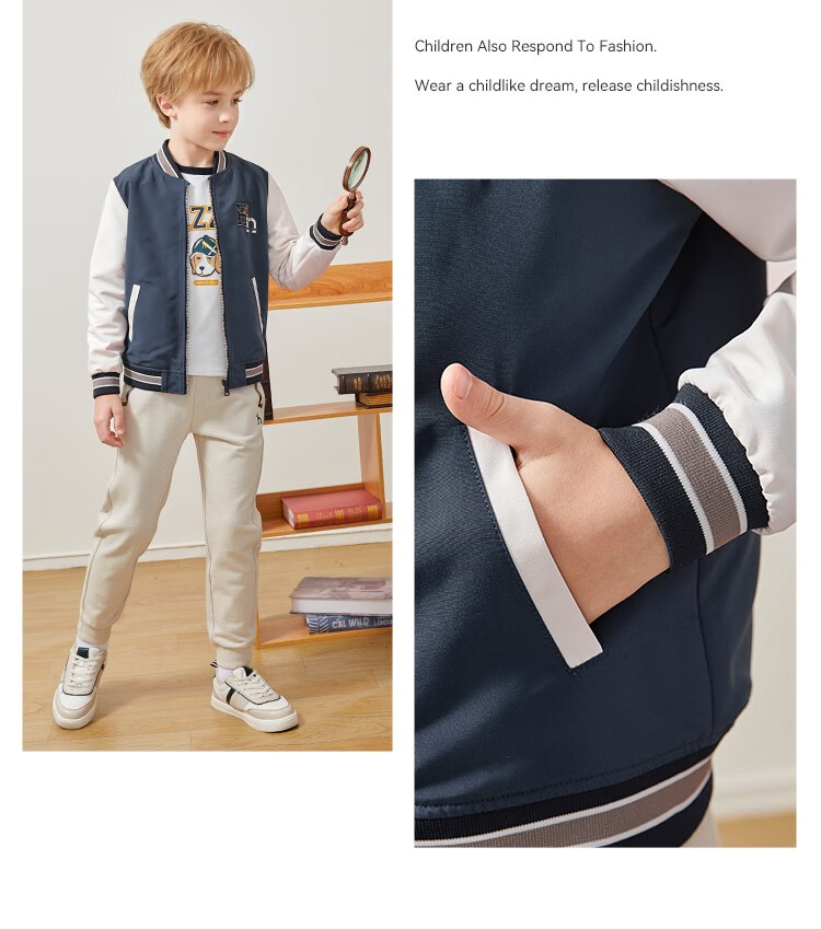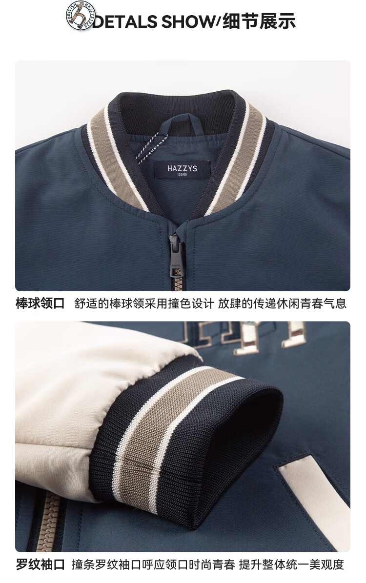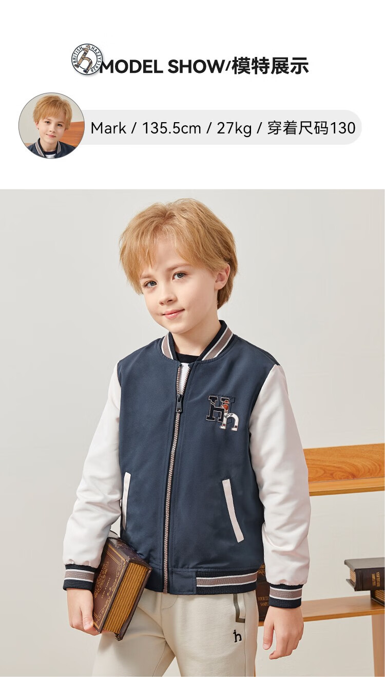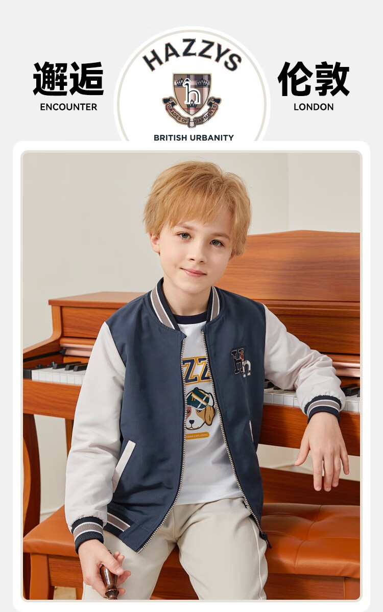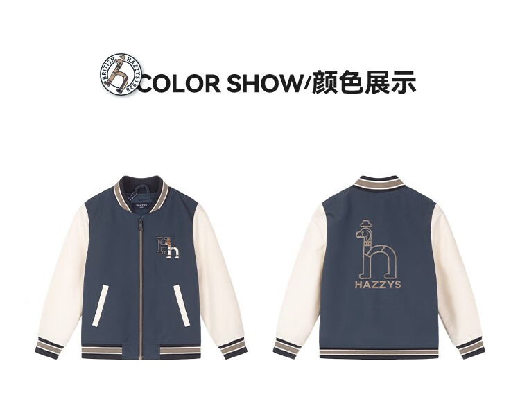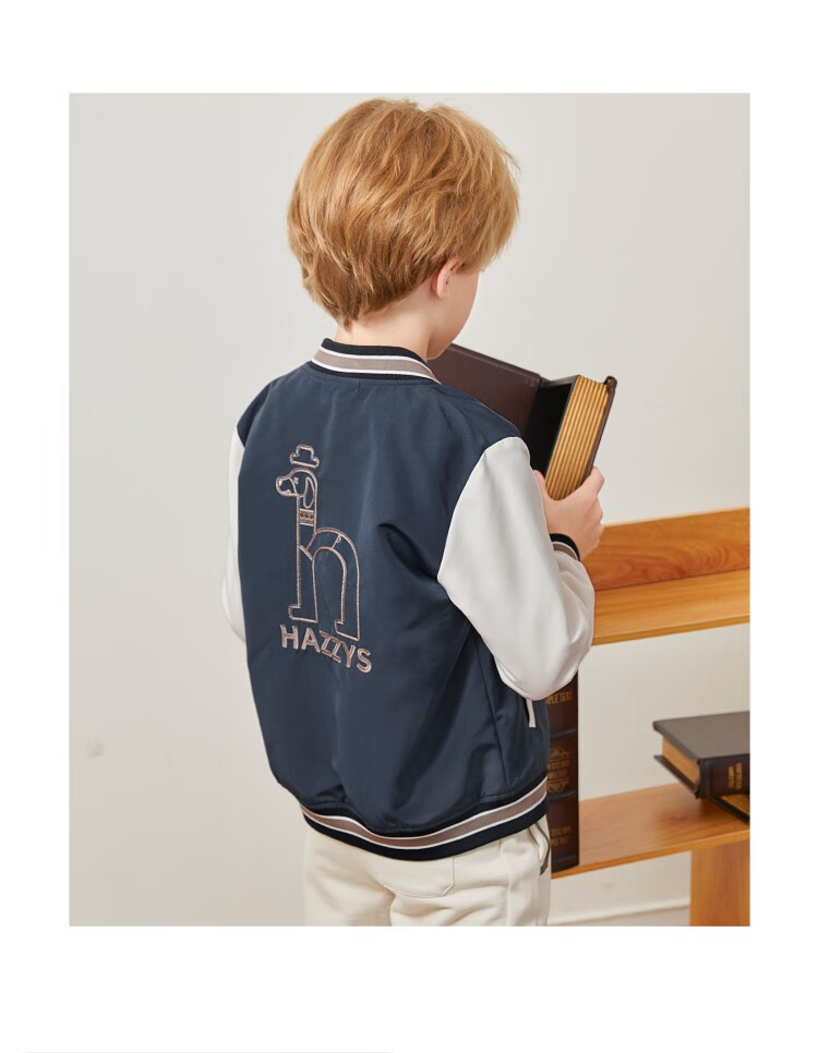 HAZZYS brand children's clothing boys' jacket autumn new three-proof comfortable contrast color fashion baseball collar jacket Galaxy cobalt blue 120