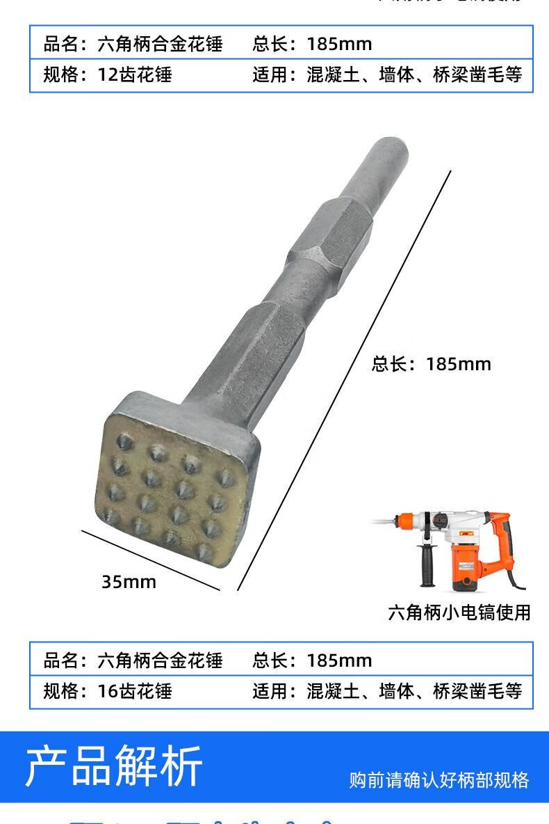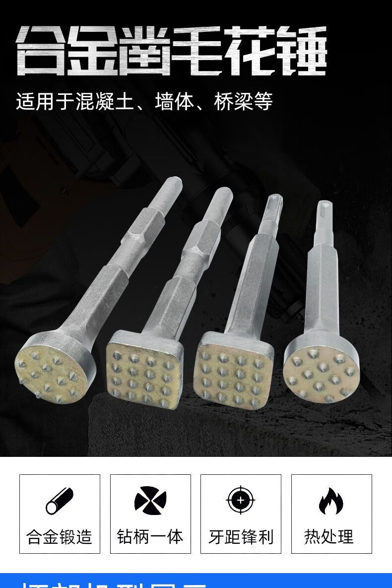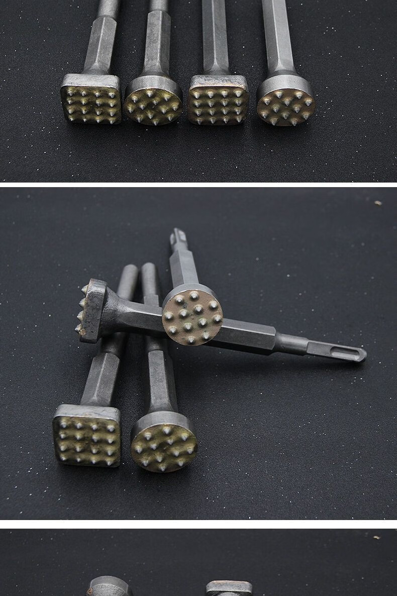 Fanglong Flower Hammer Chisel Burr Bit Cement Concrete Wall Litchi Surface Electric Pickaxe Electric Hammer All-in-one Alloy Hair Hammer Hexagonal Handle Flower Hammer 16 Pieces