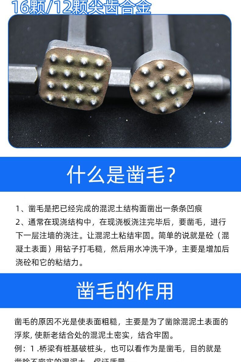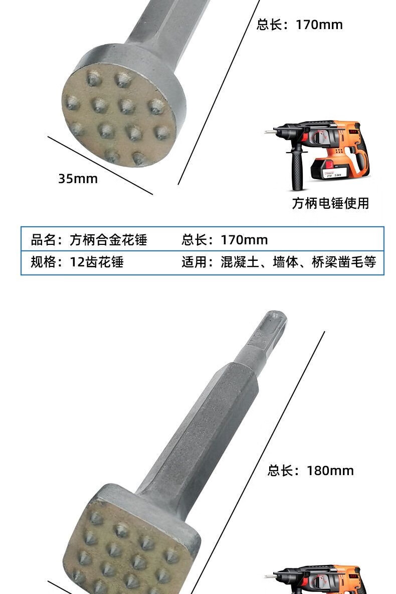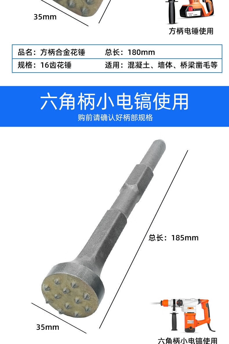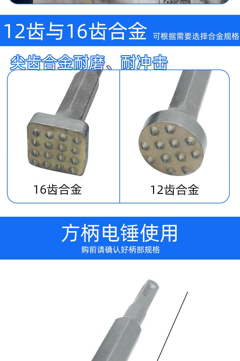 Fanglong Flower Hammer Chisel Burr Bit Cement Concrete Wall Litchi Surface Electric Pickaxe Electric Hammer All-in-one Alloy Hair Hammer Hexagonal Handle Flower Hammer 16 Pieces