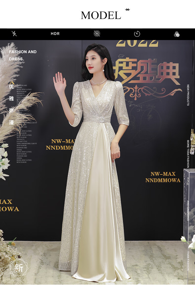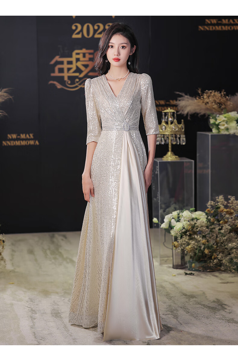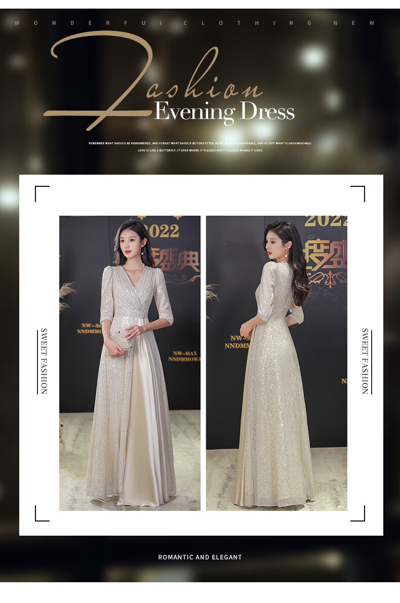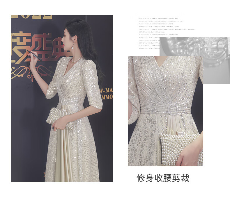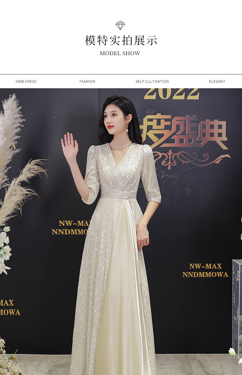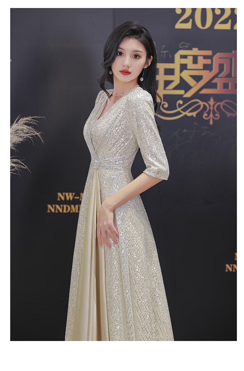 Nuoliti (NUOLITI) high-end small evening dress for women, banquet style, light luxury, high-end sense, noble lady annual meeting host atmosphere, champagne color long style L