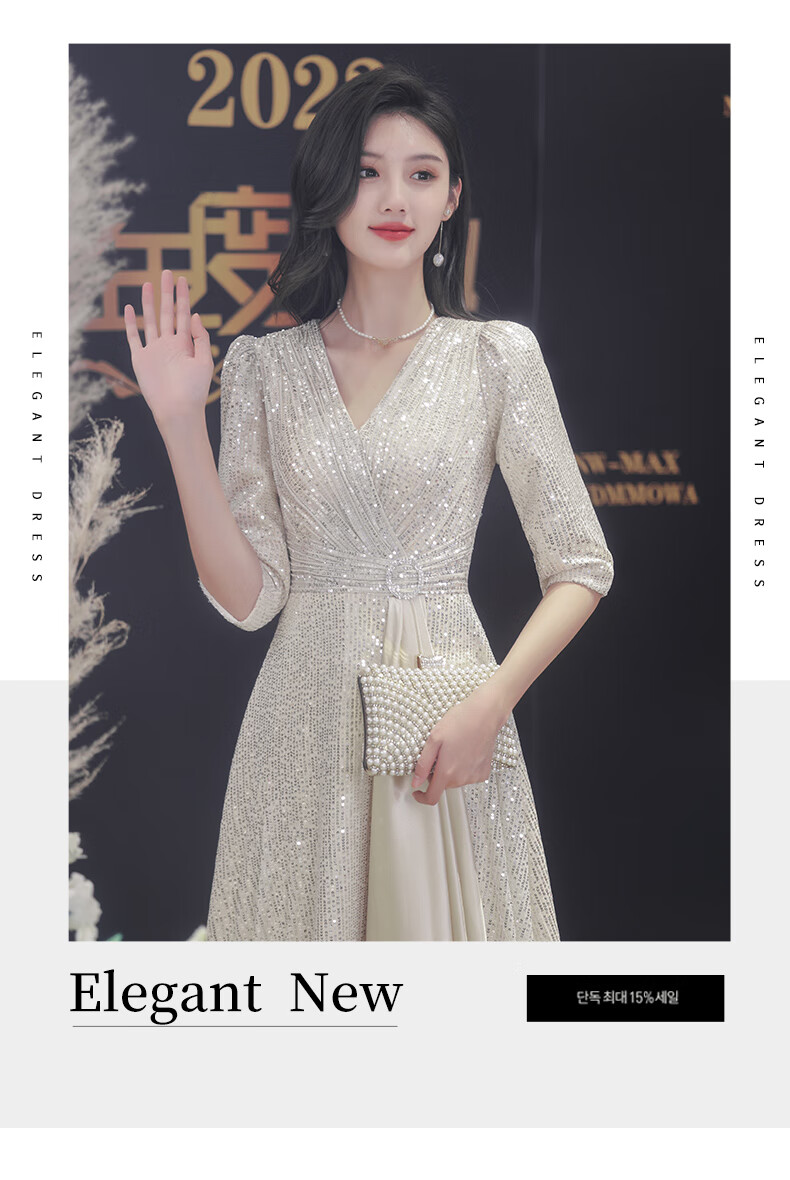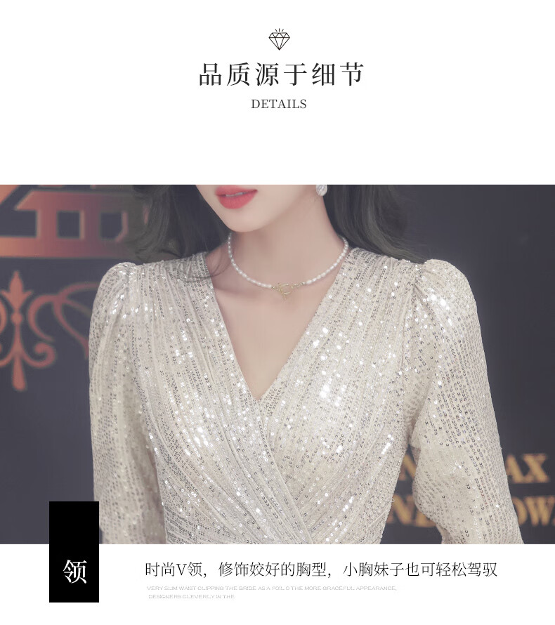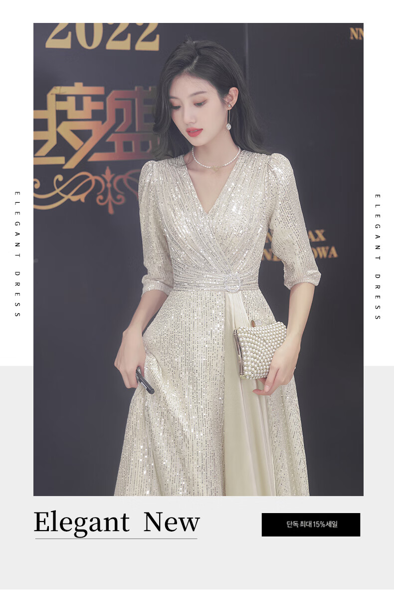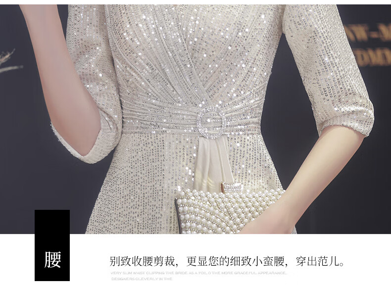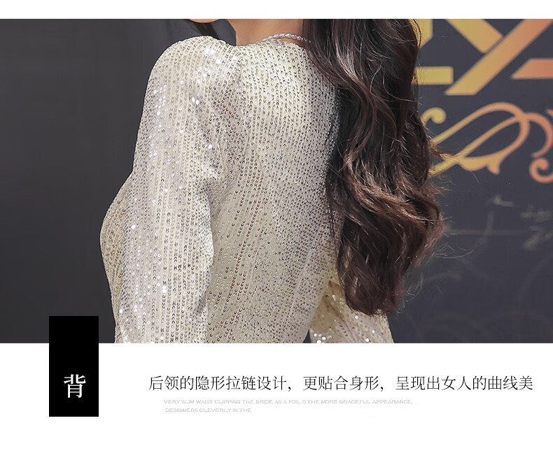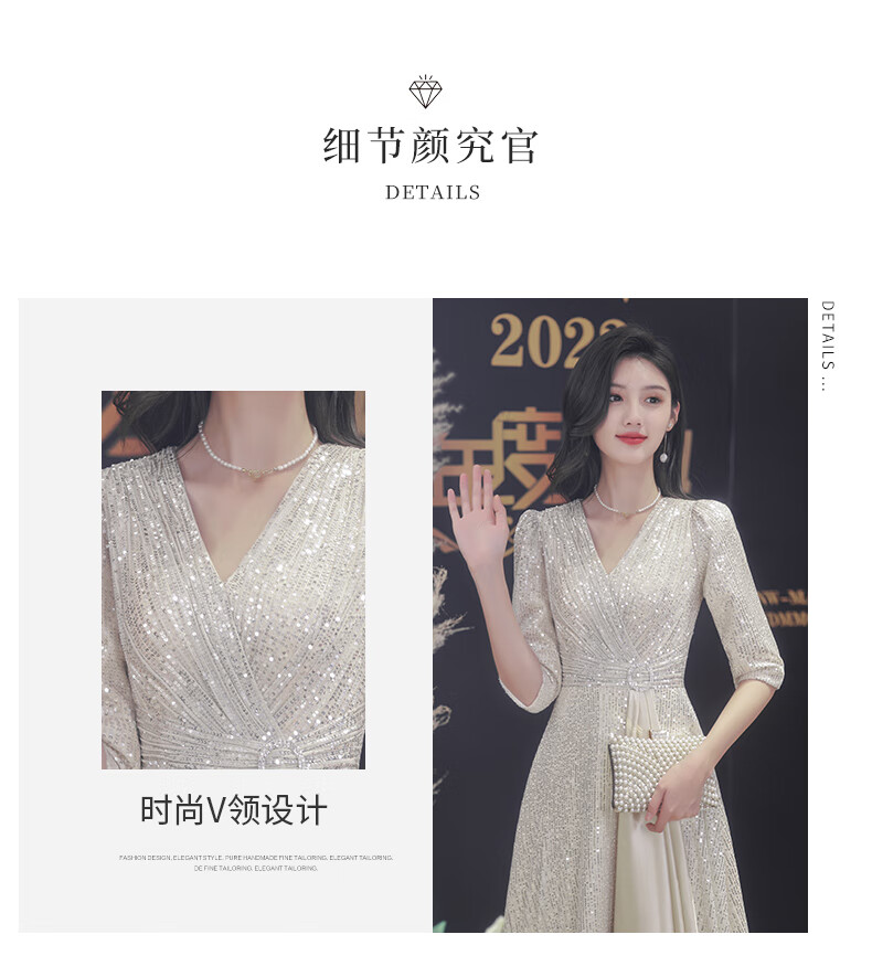Nuoliti (NUOLITI) high-end small evening dress for women, banquet style, light luxury, high-end sense, noble lady annual meeting host atmosphere, champagne color long style L