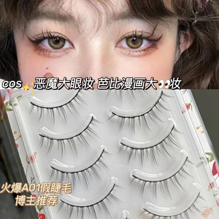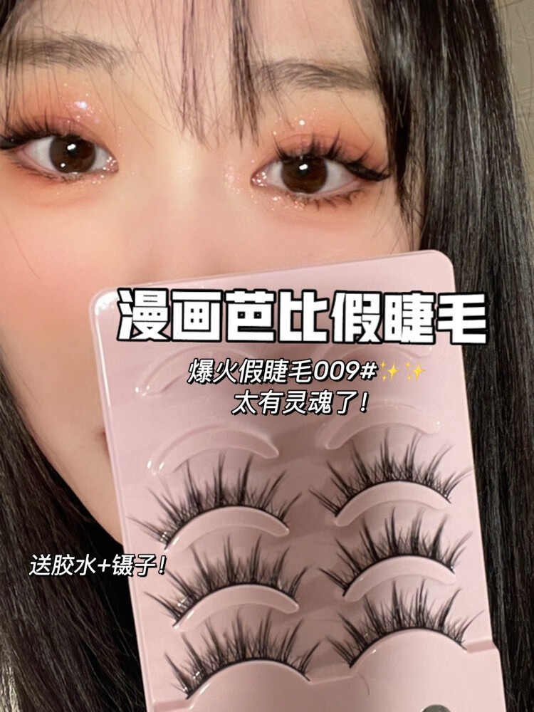 Cute eyelashes, tweezers with glue, false eyelashes, little devil natural style, one piece, whole lazy trilogy female eyelashes, 009 natural thick style + glue tweezers, small glue tweezers