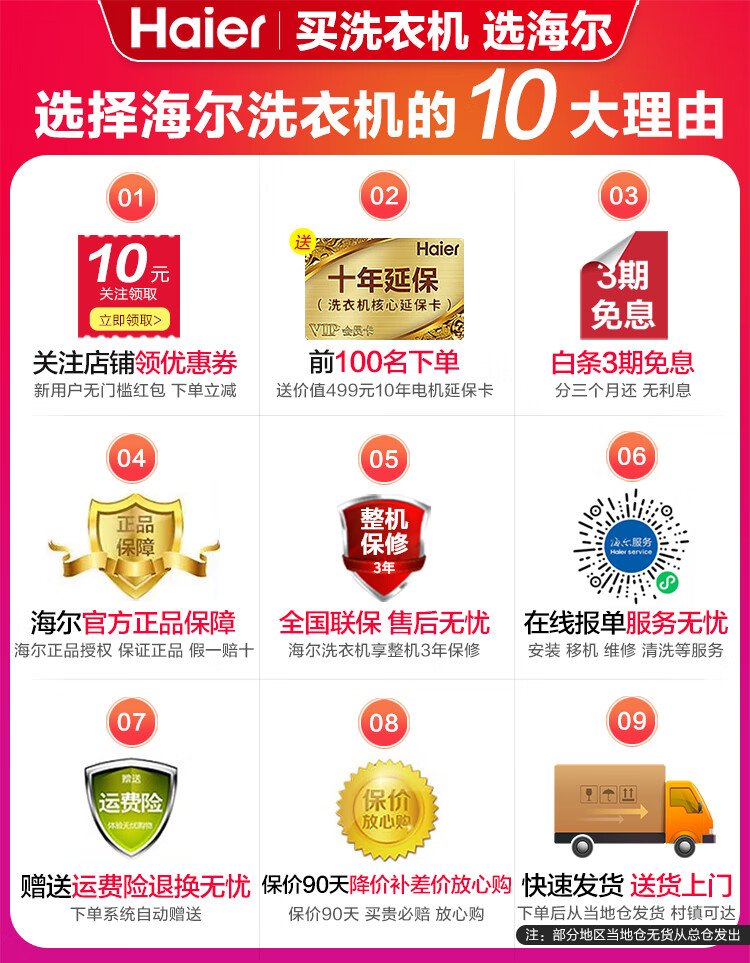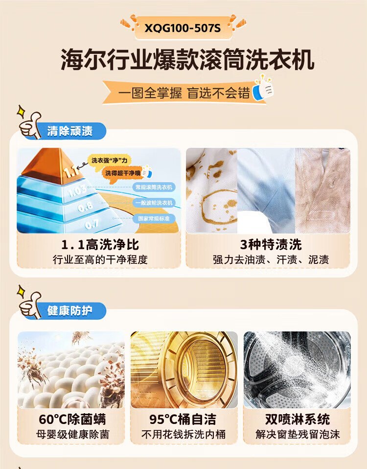 海尔(Haier)【国家补贴】滚筒洗衣机全自动10公斤超薄平嵌1.1洗净比变频一级能效20年防生锈巴氏杀菌以旧换新 【洗烘一体】蒸汽除菌螨+空气洗+烘干+预约+筒自洁