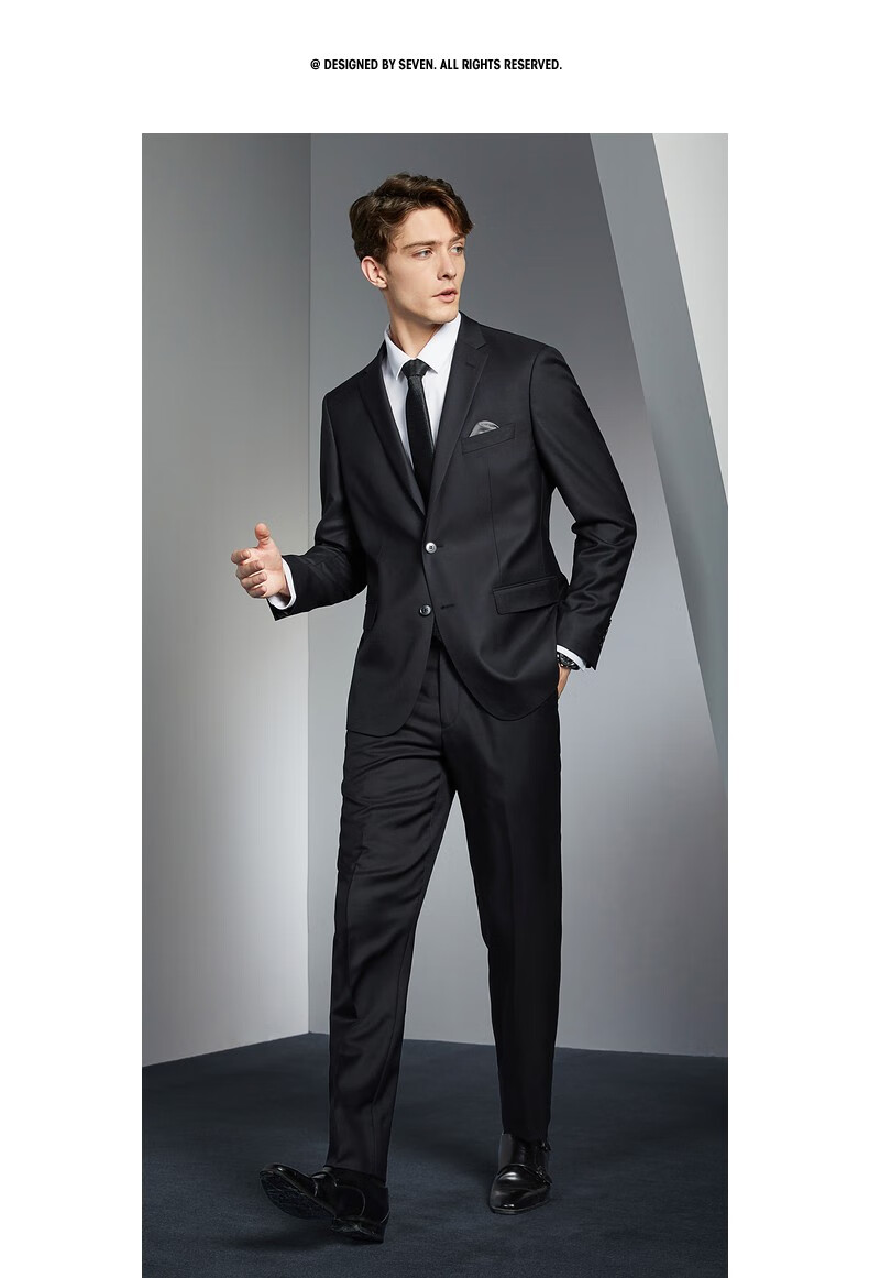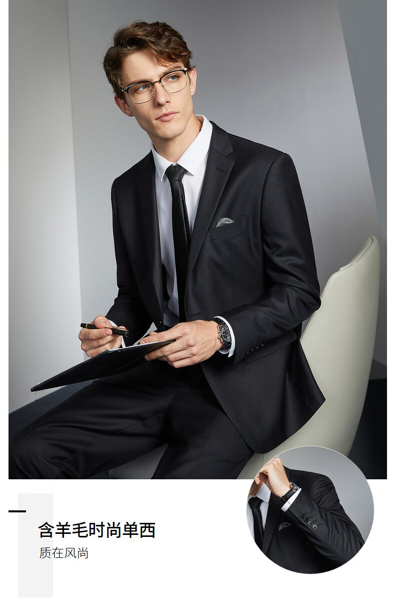 Qipai men's wool suit suit 2025 autumn new business wedding dress including cashmere suit and trousers two-piece set black suit top XXS B46 170/92B