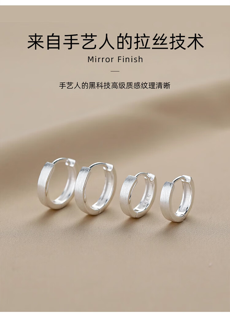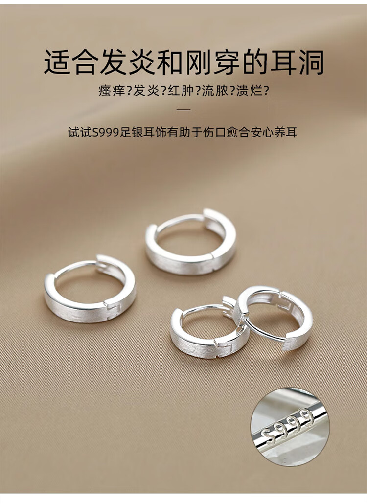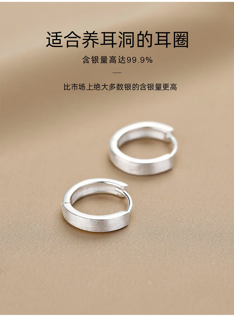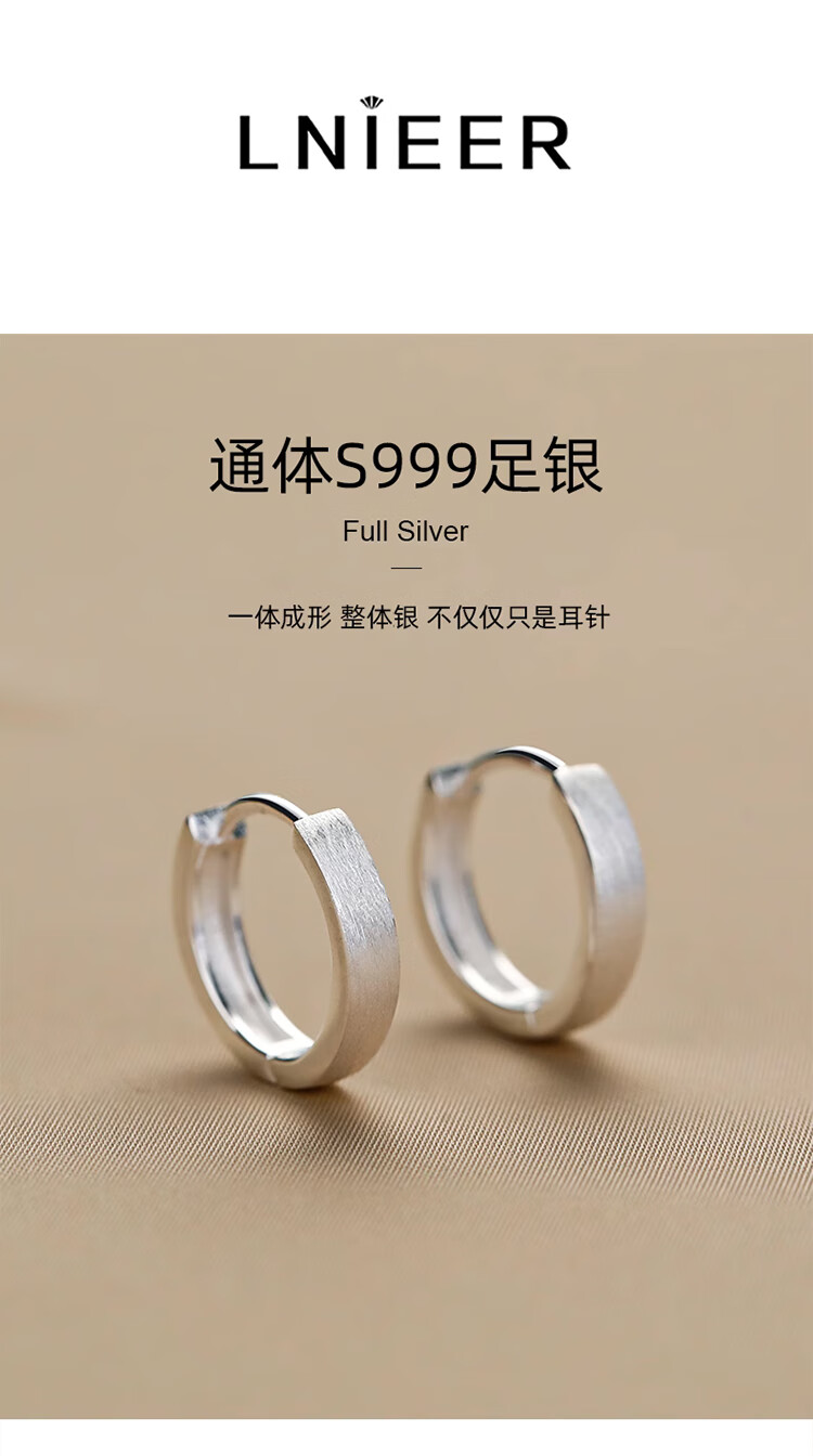 Lnieer999 Pure Silver Plain Hoop Earrings Women's Earrings Niche Design 2025 New Hot Style Earrings for Ear Holes Earrings 1 Pair of 999 Pure Silver Earrings 15mm