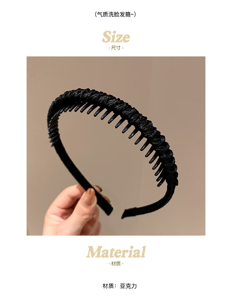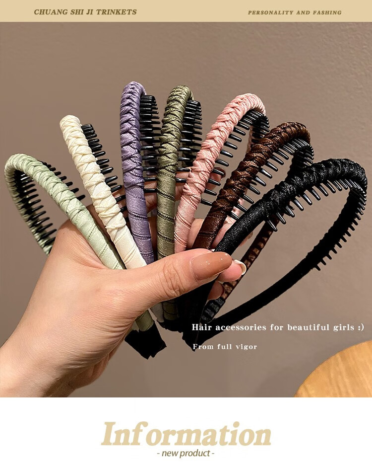 BARY REEF 2024 new style hair hoop for women's face wash, special toothed anti-slip hair clip for hair, traceless broken hair braided headband headwear, black - braided toothed hair hoop