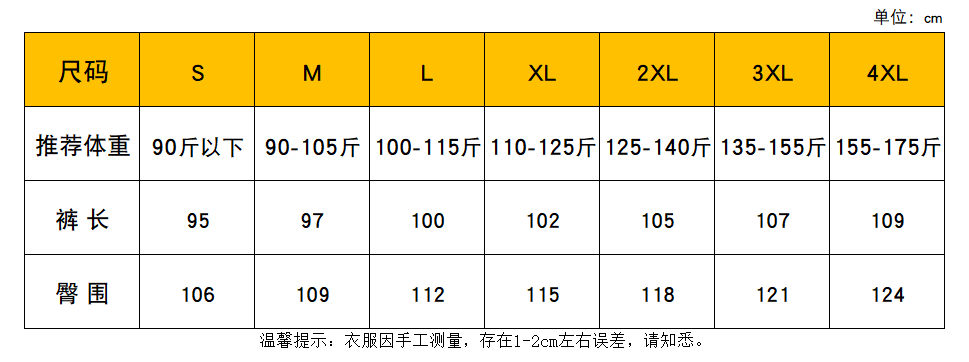 Outseam (cm) 99 cm 101.5 cm 104 cm 106.5 cm 109 cm