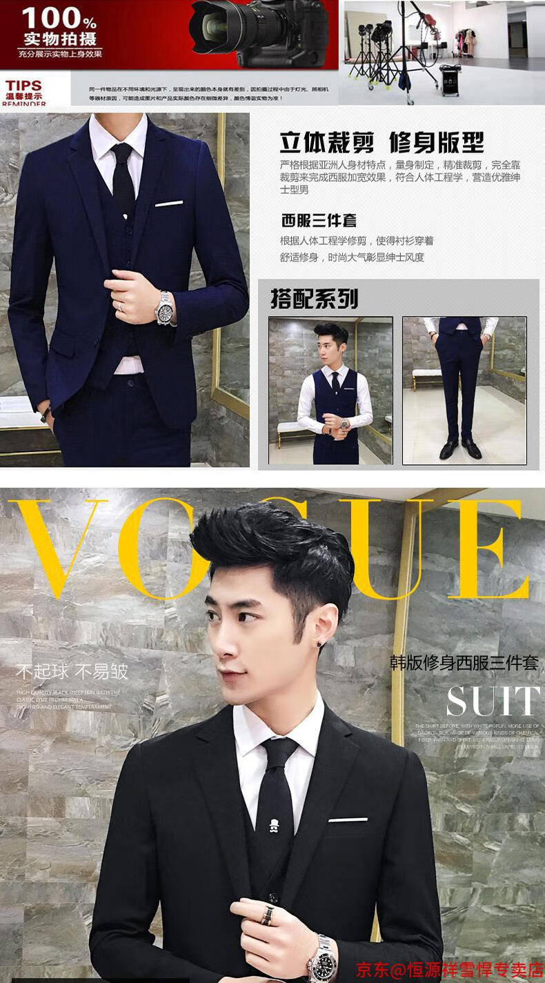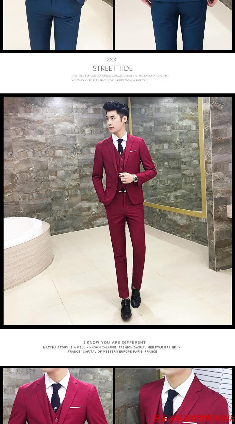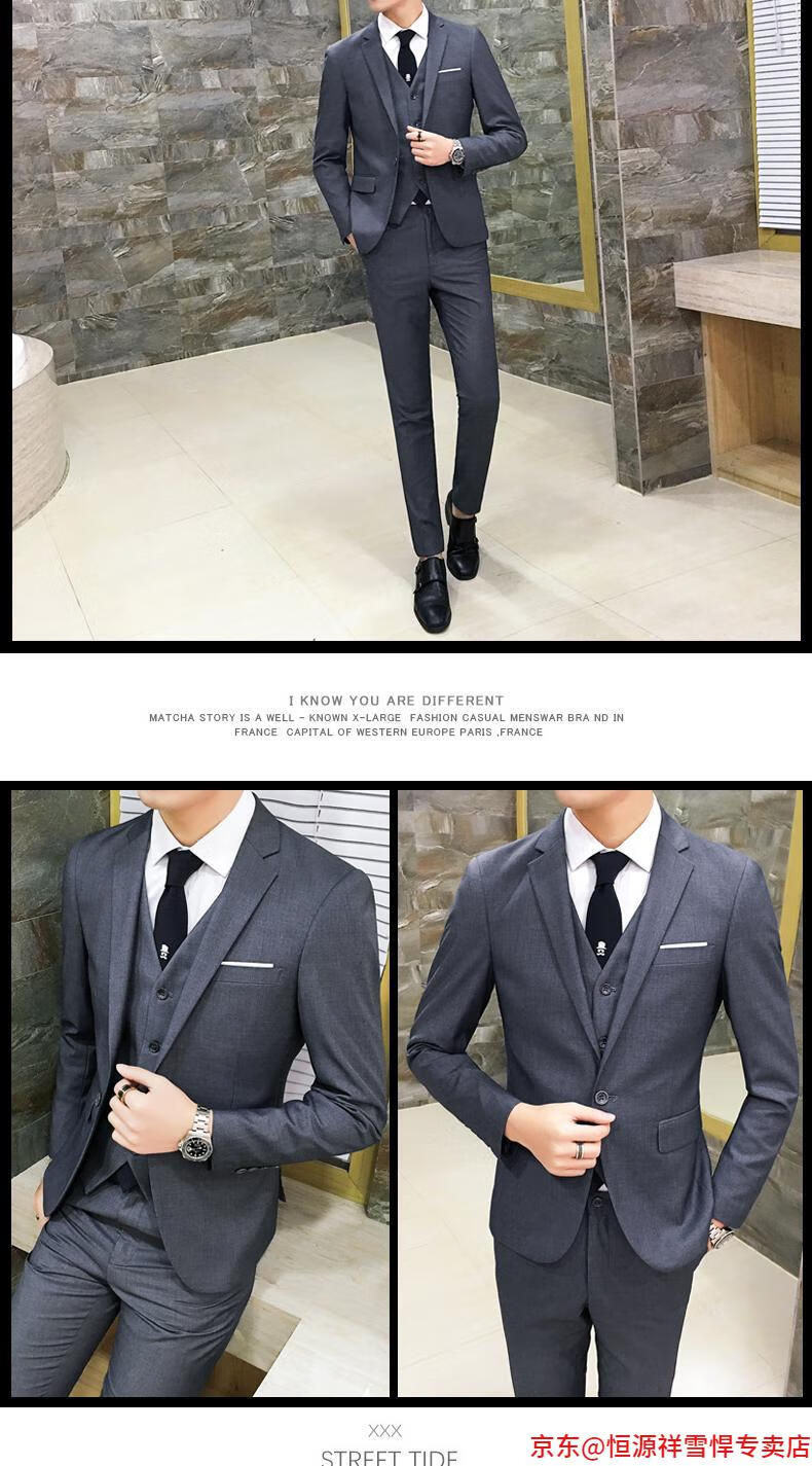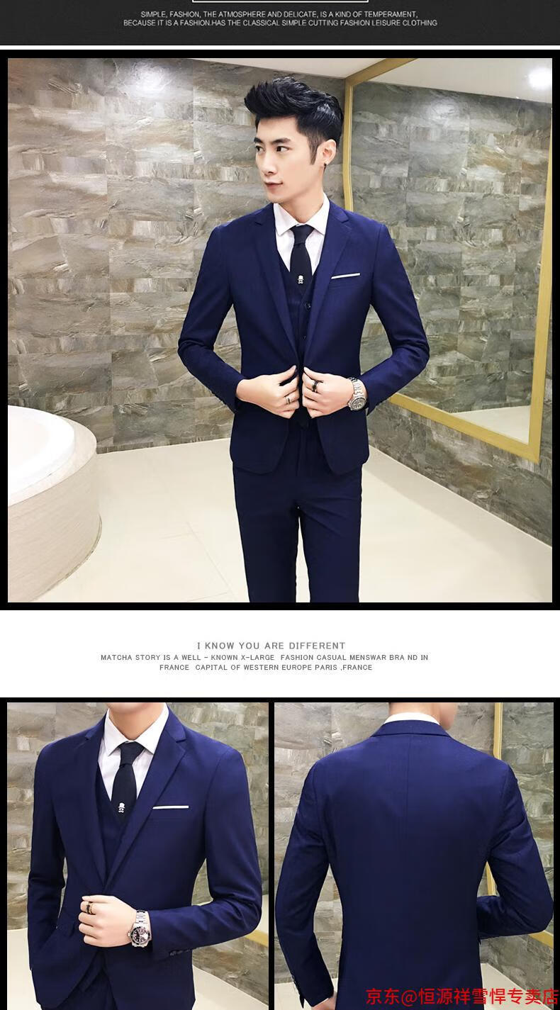 Hengyuanxiang suit men's three-piece business formal suit professional suit groomsmen groomsmen wedding dress spring L 105-120 Jin Jin equals 0.5 kg light gray (suit + trousers)