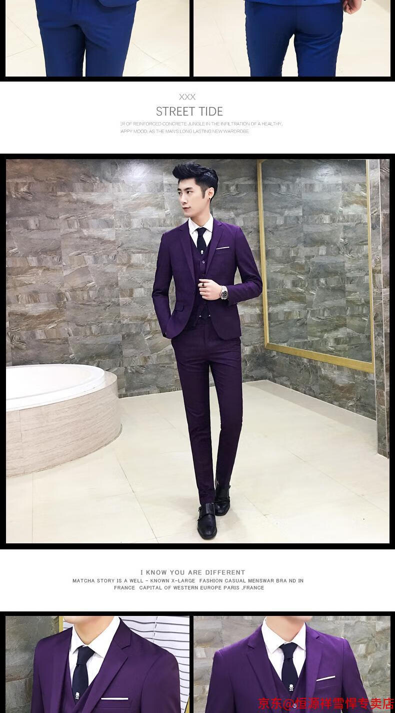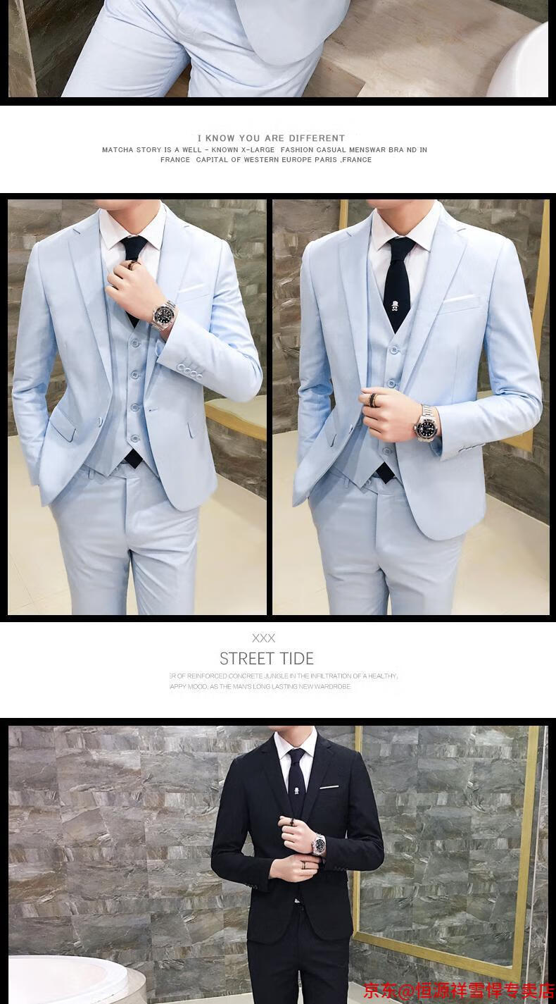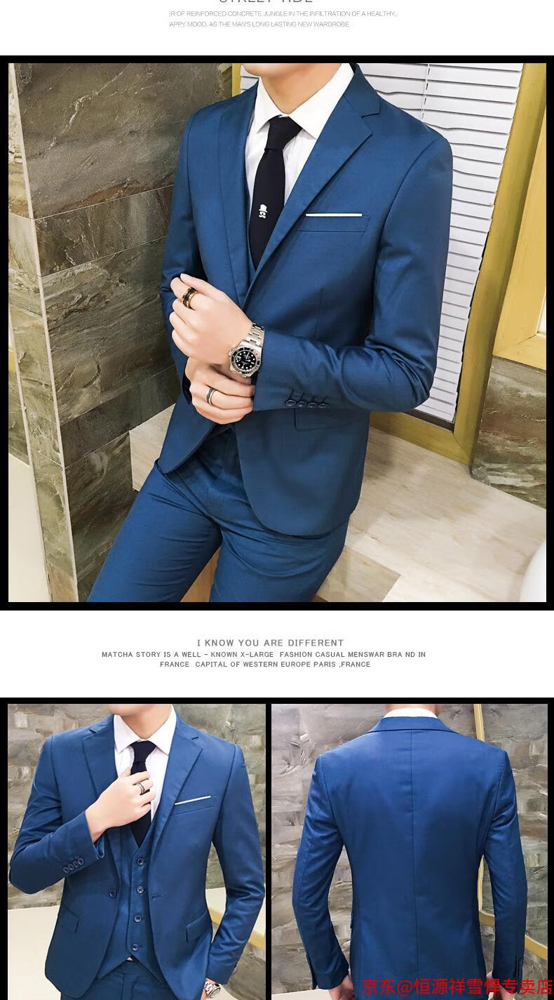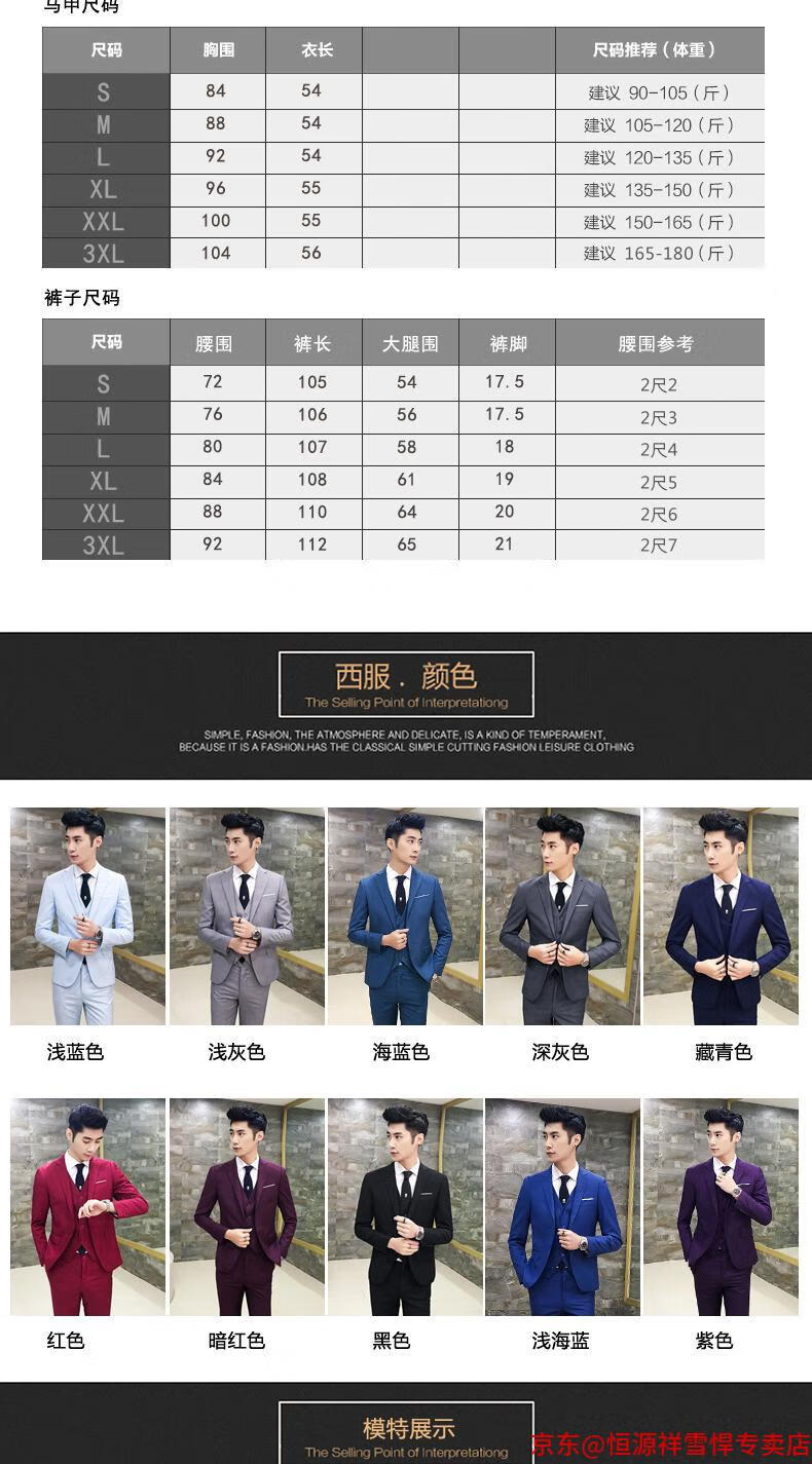 Hengyuanxiang suit men's three-piece business formal suit professional suit groomsmen groomsmen wedding dress spring L 105-120 Jin Jin equals 0.5 kg light gray (suit + trousers)