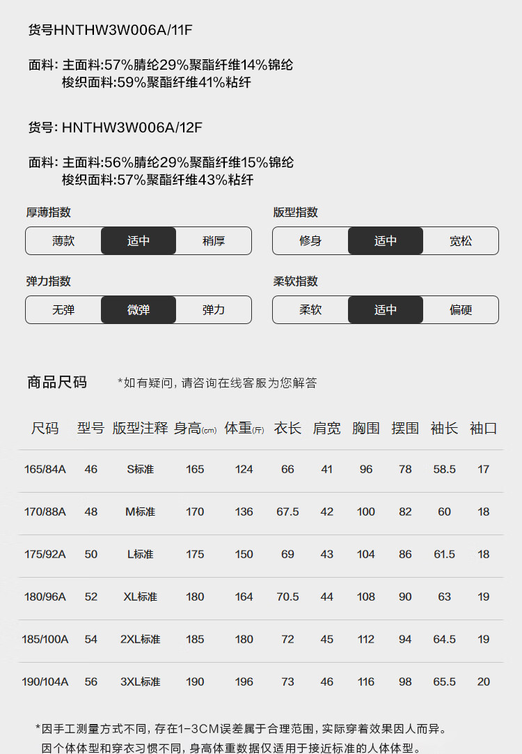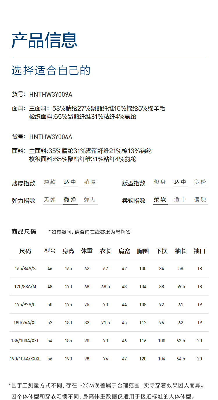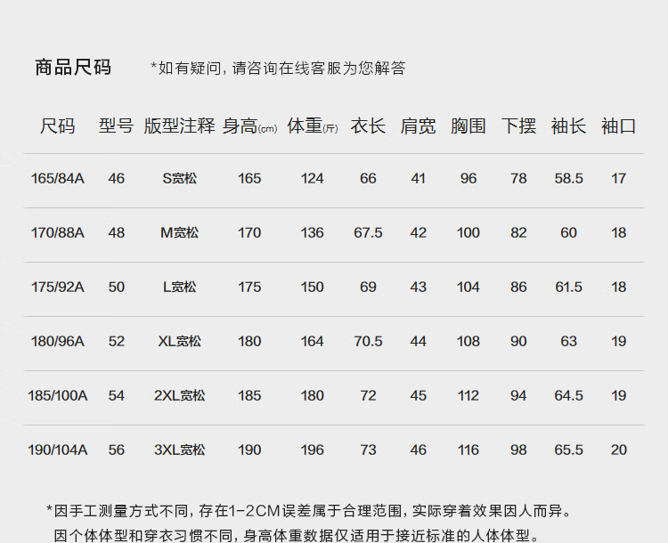 China (cm) 160-165/84-86 165-170 / 88-90 167-172 / 92-96 168-173 / 98-102 170-176 / 106-110