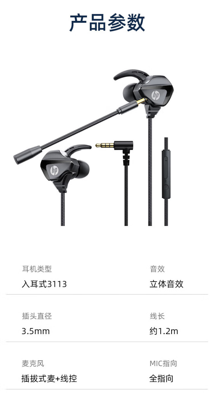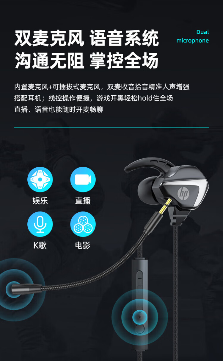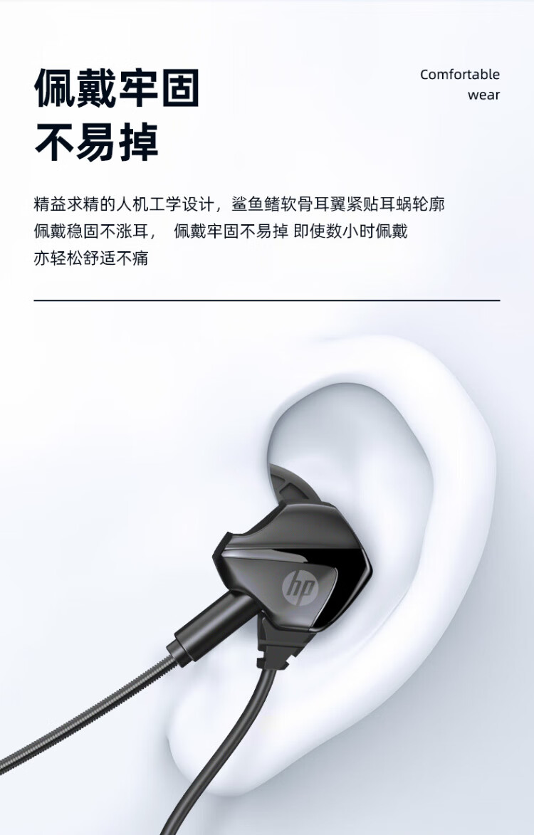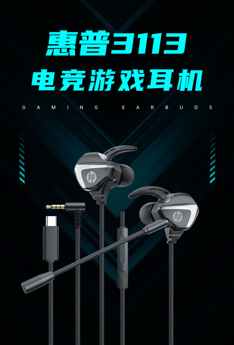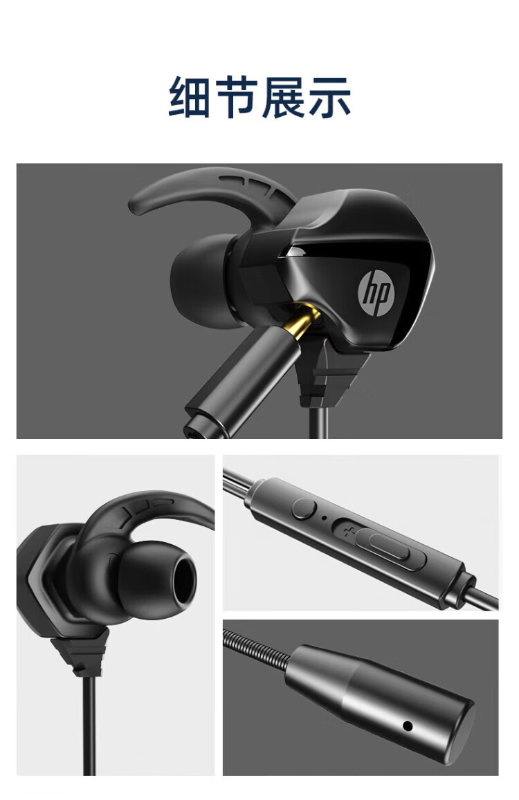 HP (HP) gaming wired headset in-ear headset with microphone smart noise reduction microphone mobile phone computer e-sports heavy bass eating chicken office learning Type-c version one machine dual microphone