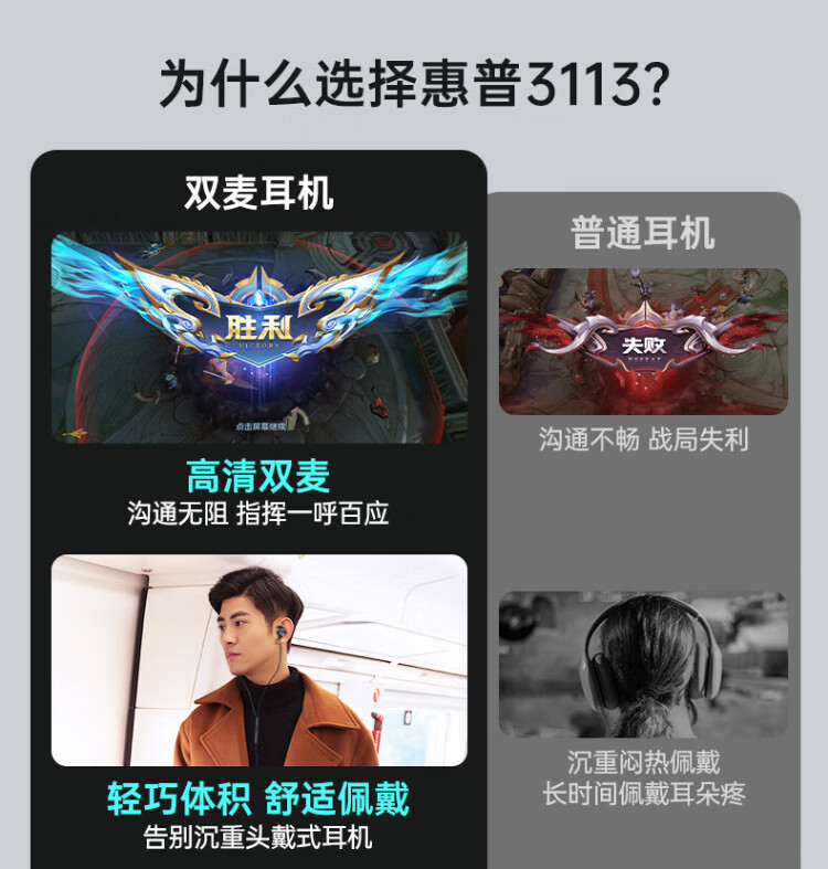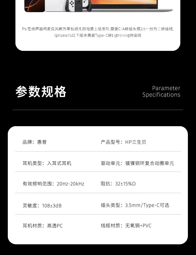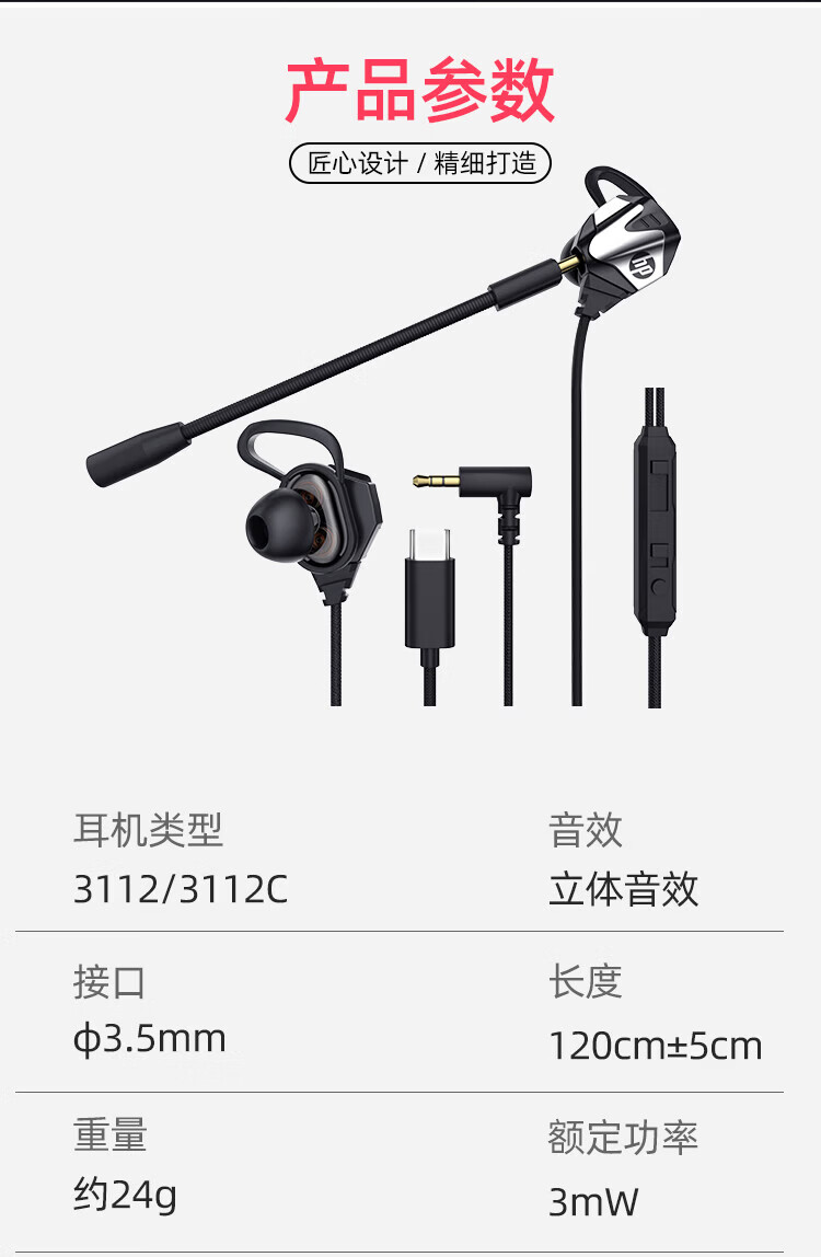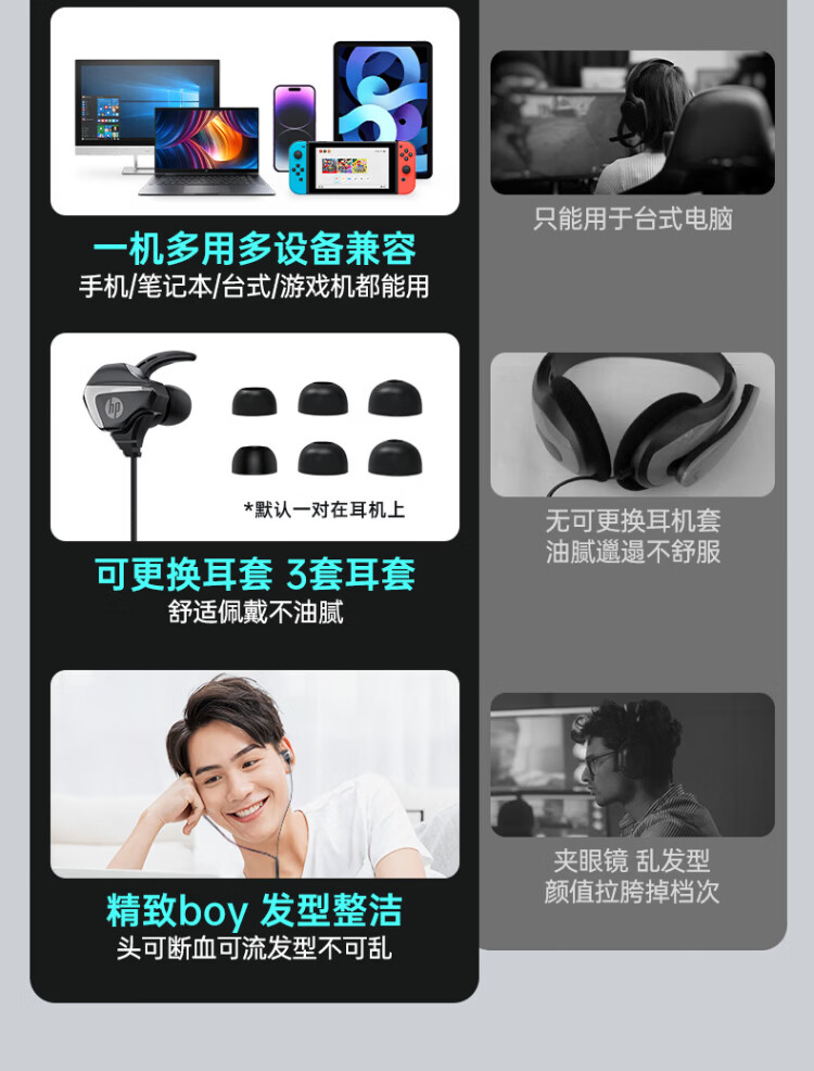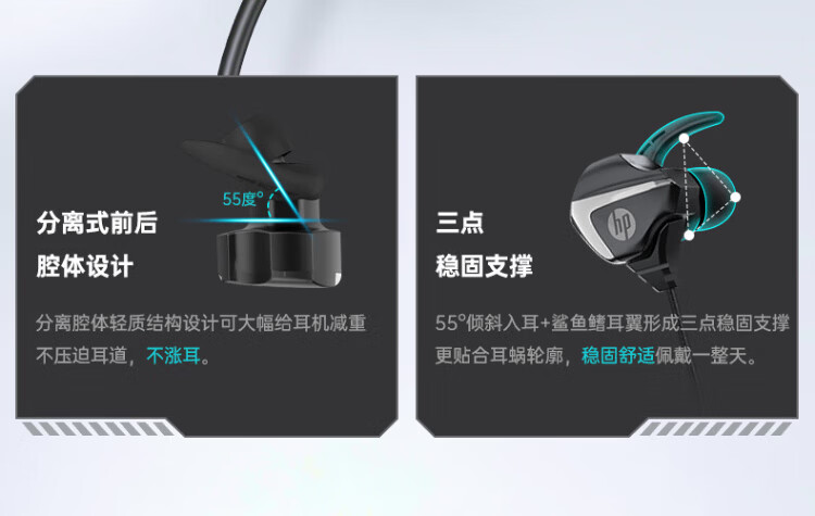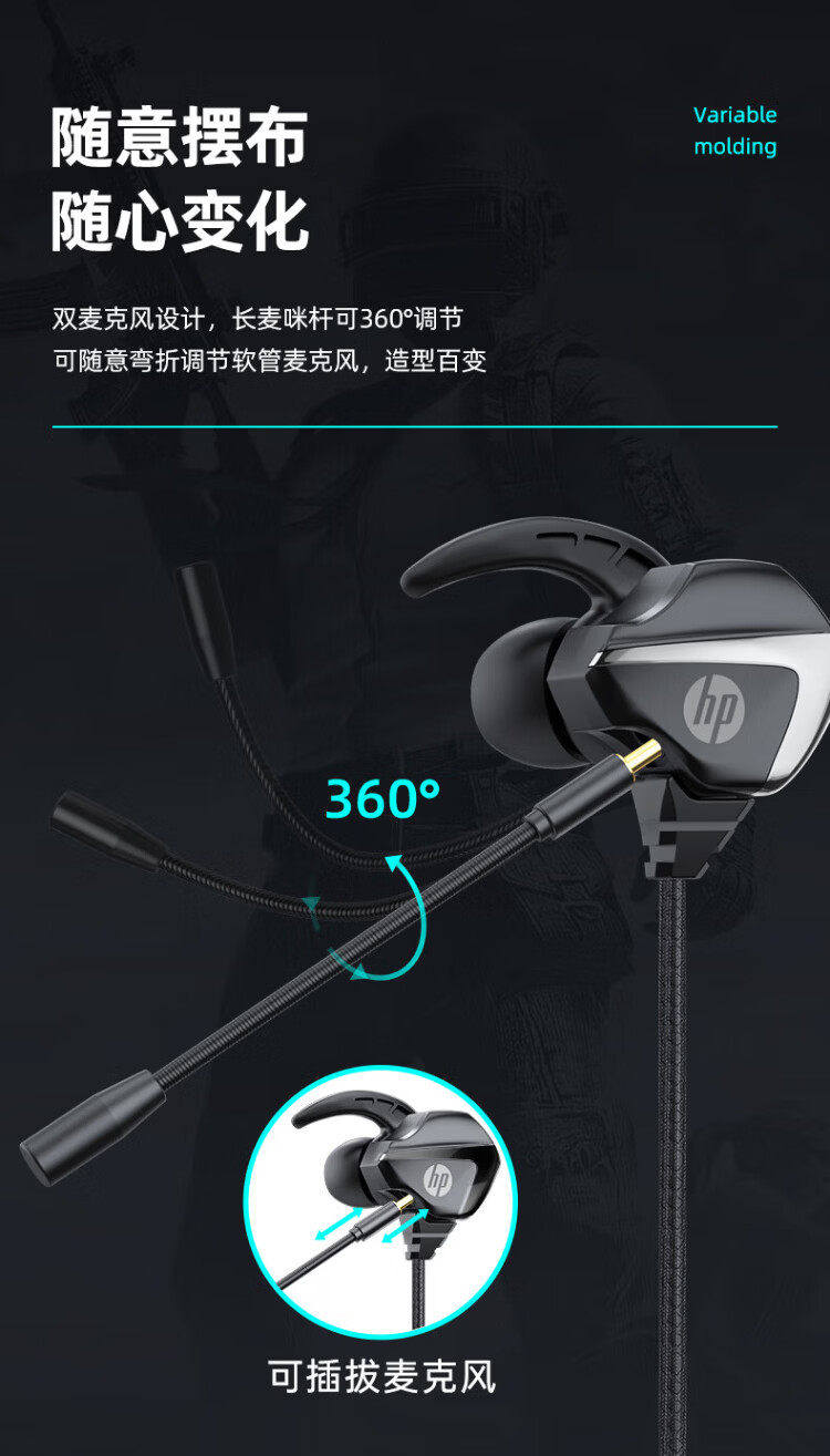 HP (HP) gaming wired headset in-ear headset with microphone smart noise reduction microphone mobile phone computer e-sports heavy bass eating chicken office learning Type-c version one machine dual microphone