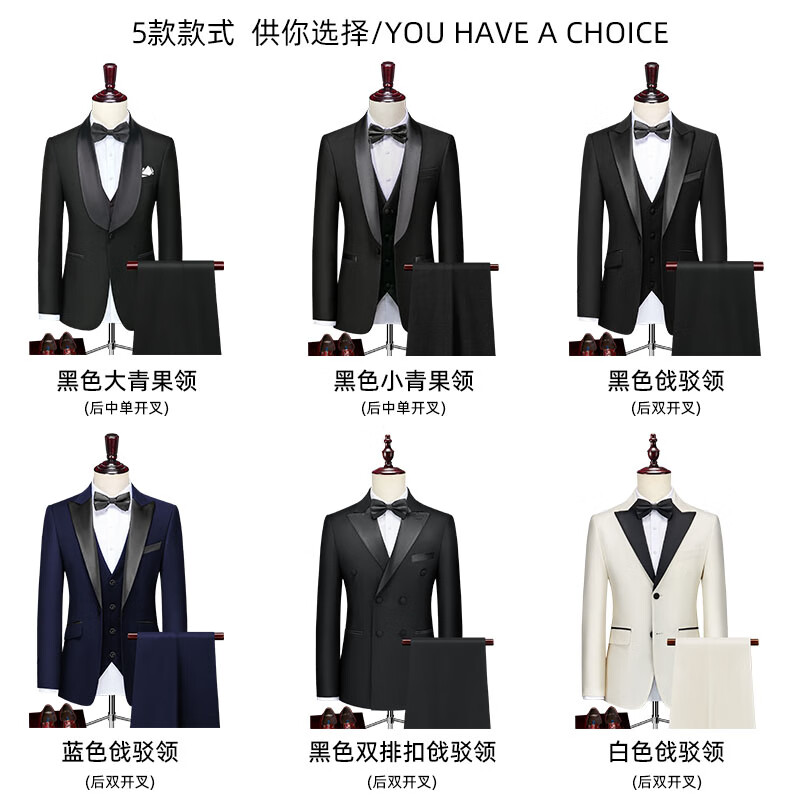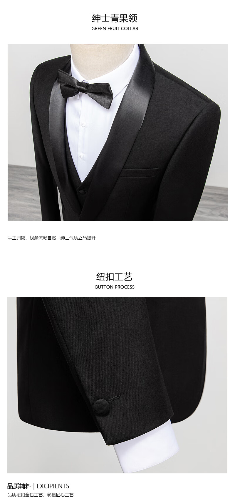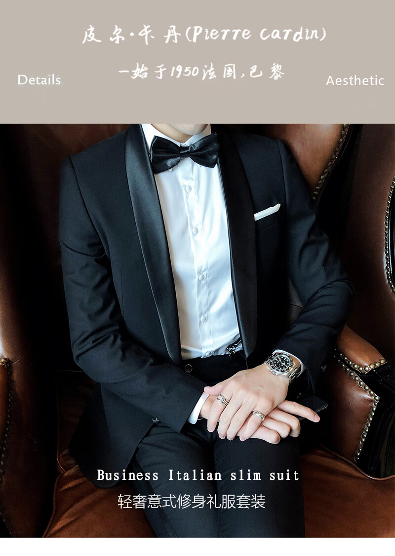 Pierre Cardin groom wedding suit men's show host slim suit suit male groomsmen knitted casual dress black green fruit collar two-piece suit (with gift bag) 2XL (136-150)