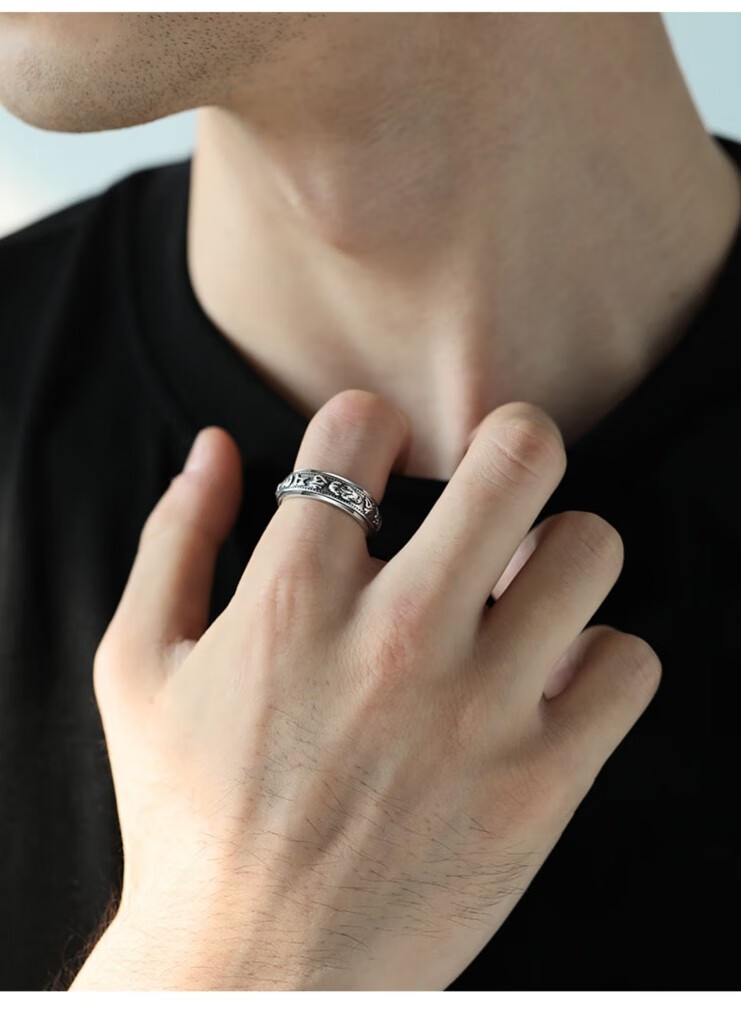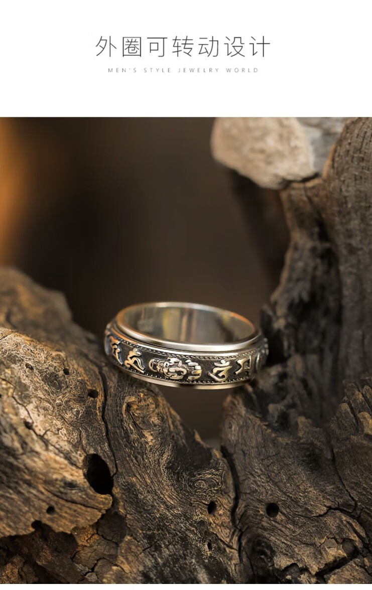 Banidier Pixiu ring men's trendy rotatable six-character mantra, Korean style index finger rotating personalized couple ring for women, single ring, default number 9, other code remarks
