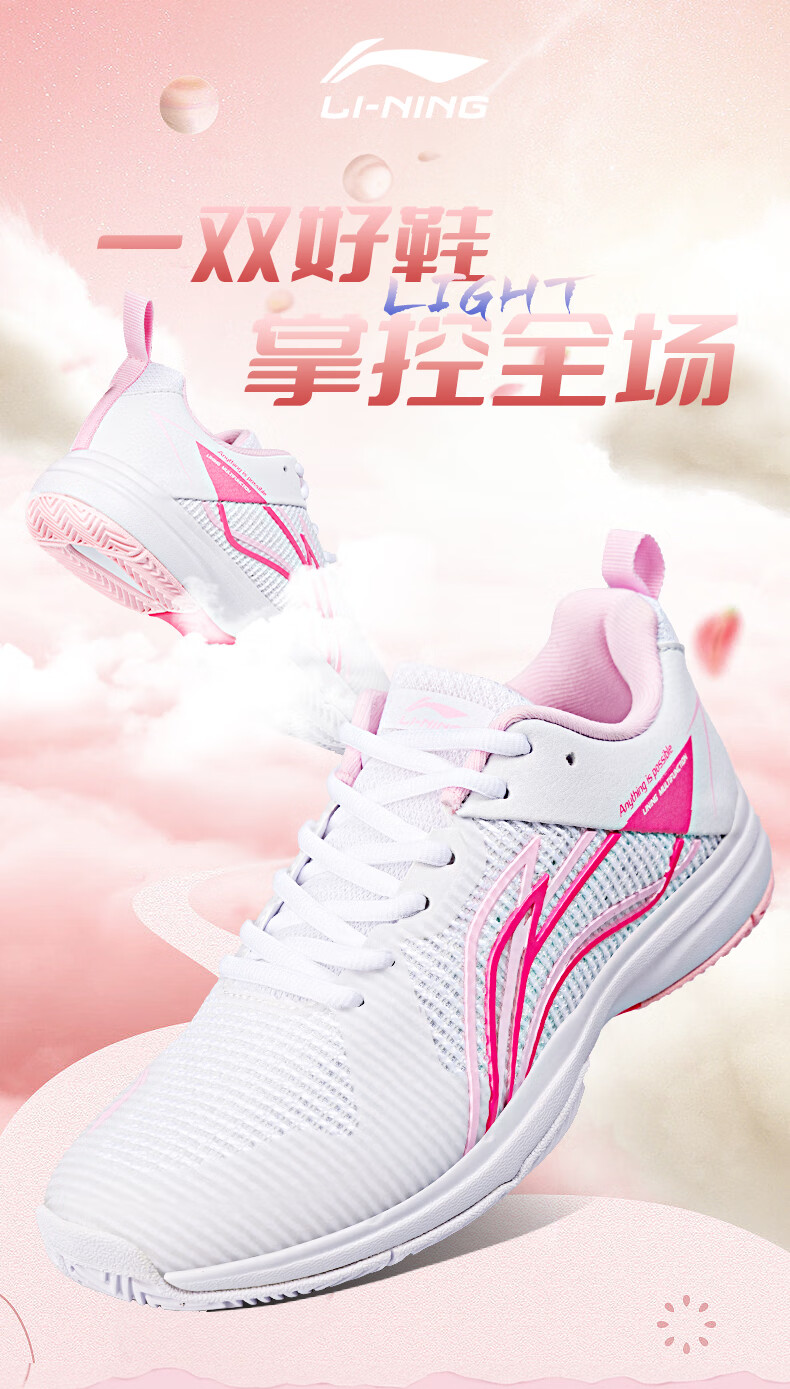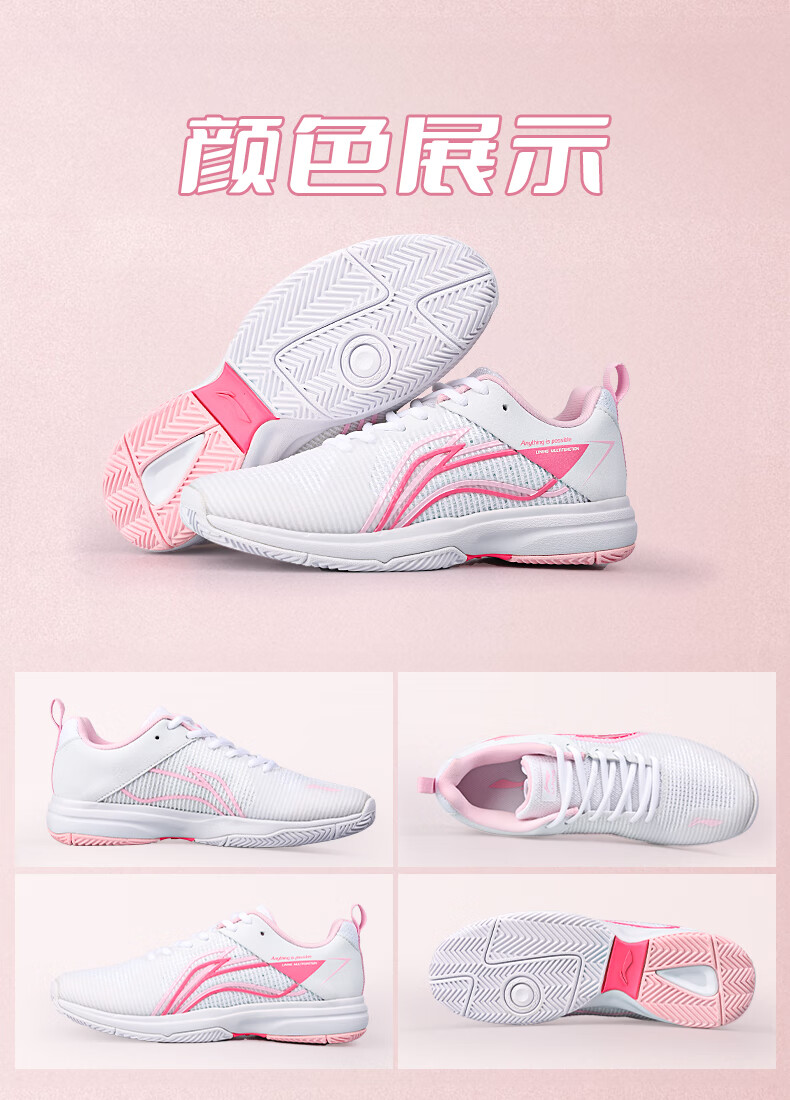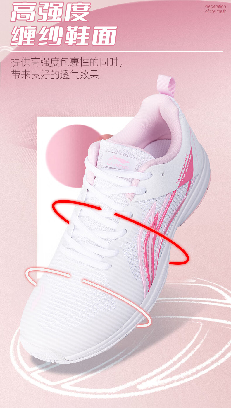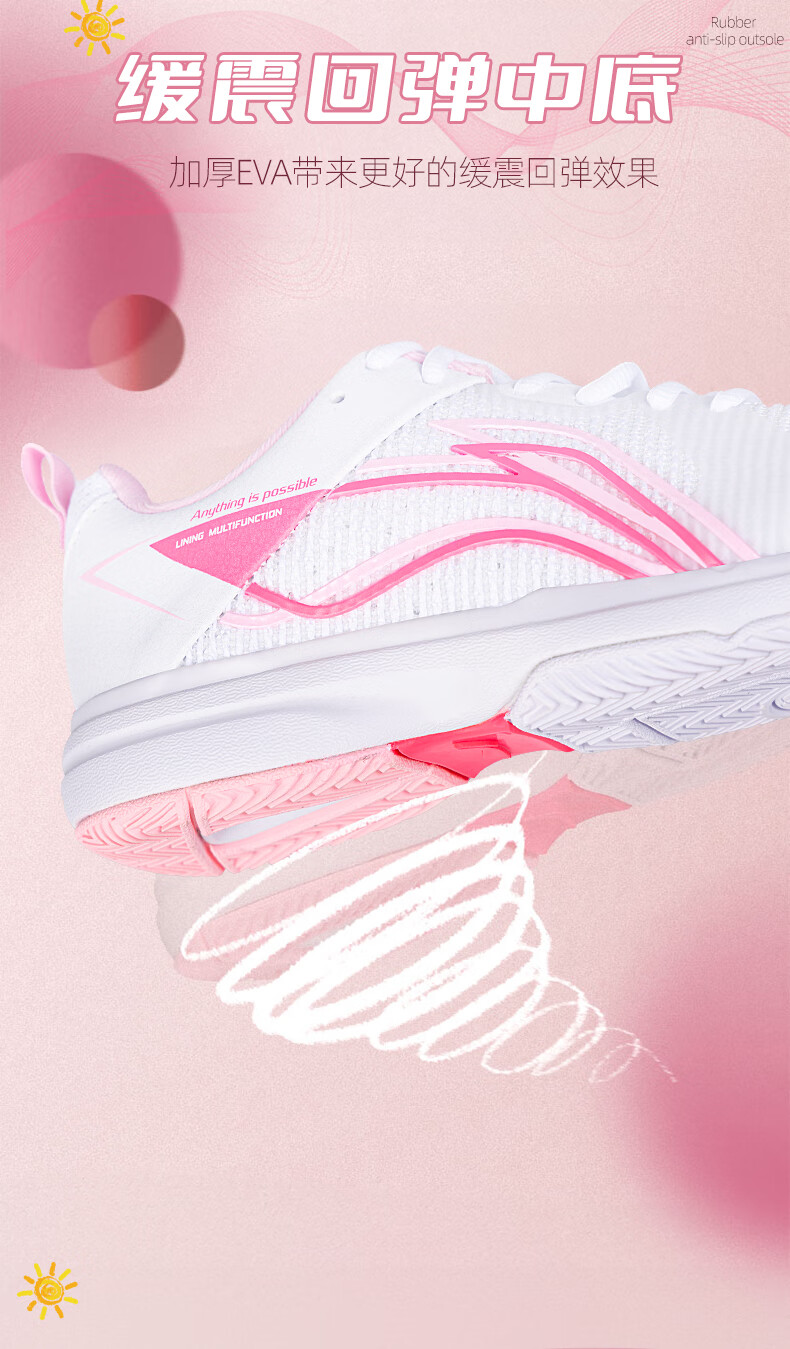 Li-ning (LI-NING) volleyball shoes for women, breathable, non-slip, shock-absorbing badminton shoes, indoor and outdoor sports training shoes, standard white/fluorescent lotus pink 37