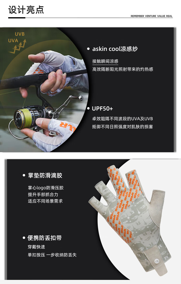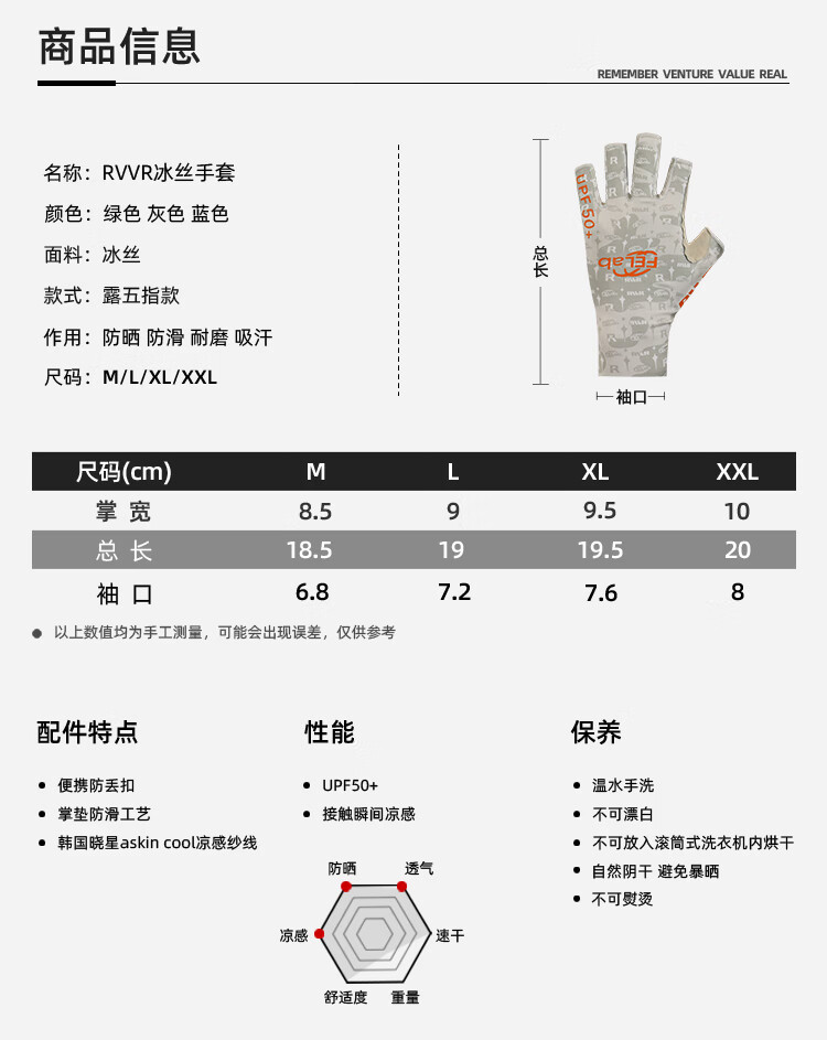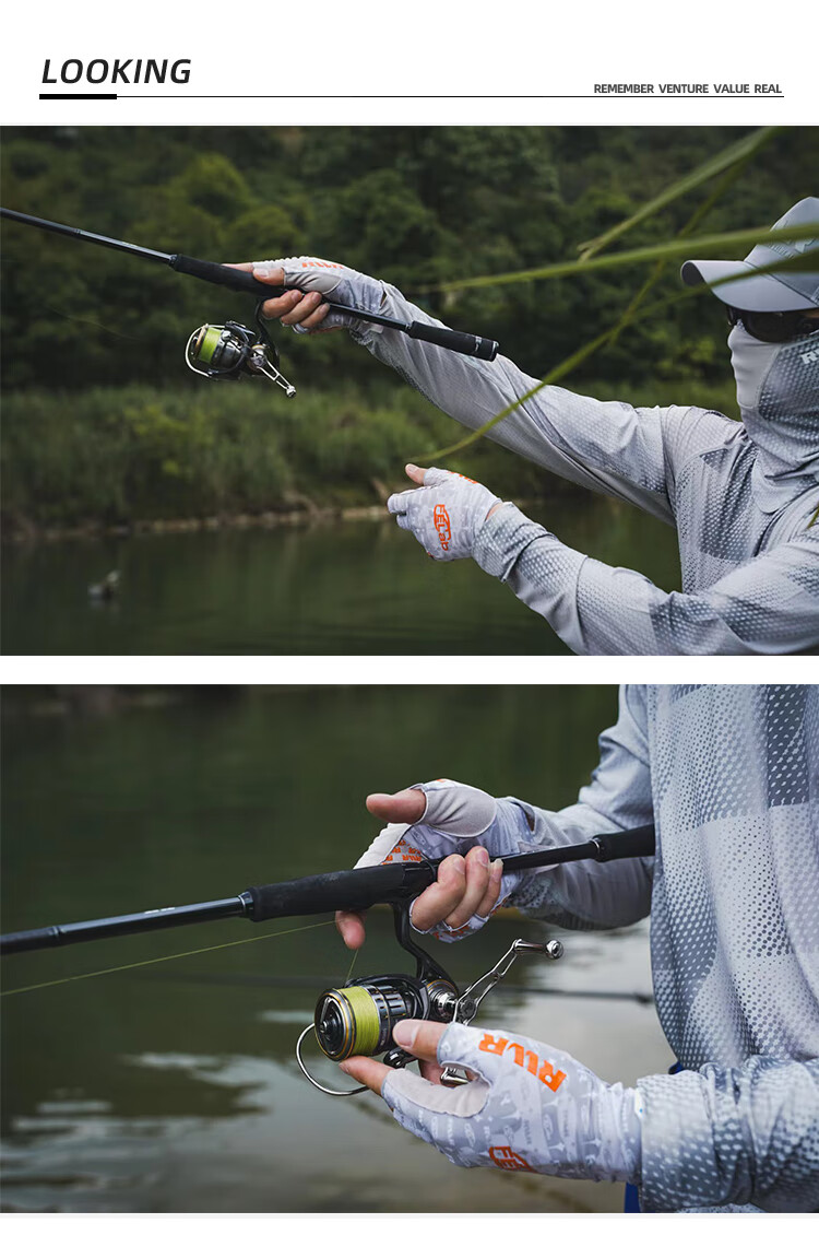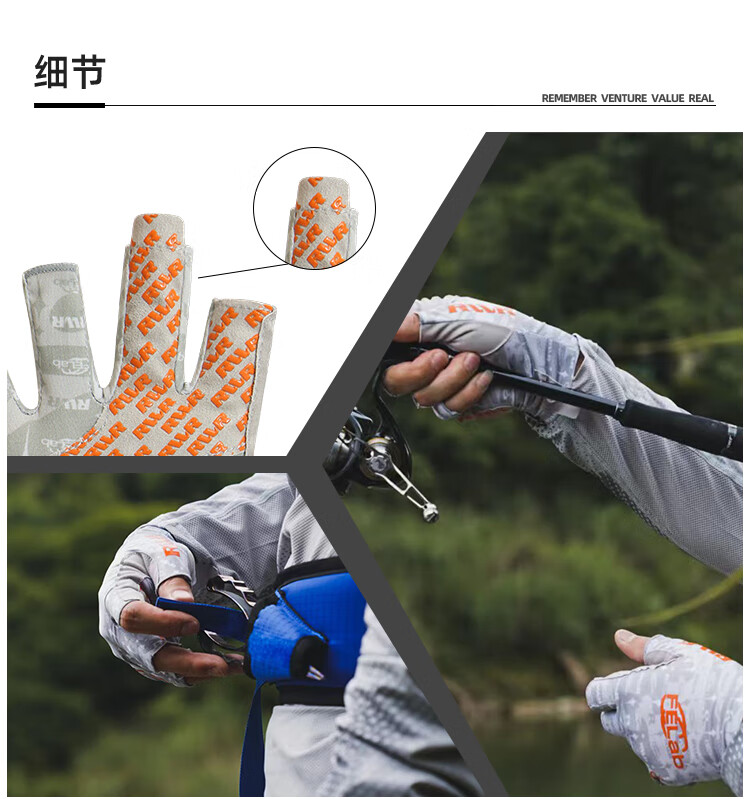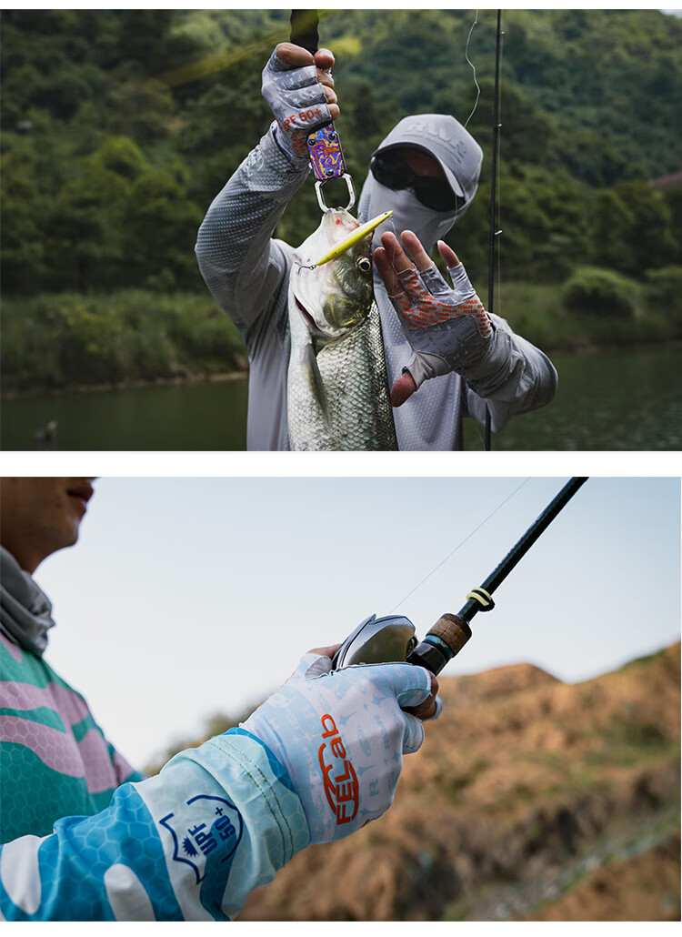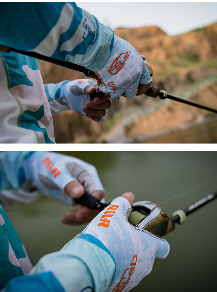 RVVR23 Ice Silk Fishing Gloves with Five and Half Fingers Portable Lure Special for Spring and Summer Non-Slip, Comfortable, Breathable and Quick-Drying Blue M
