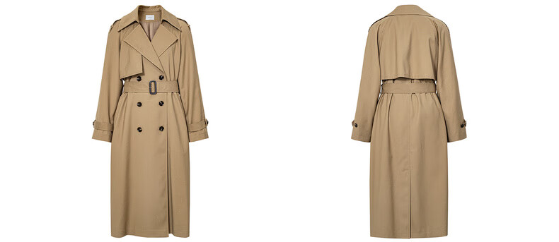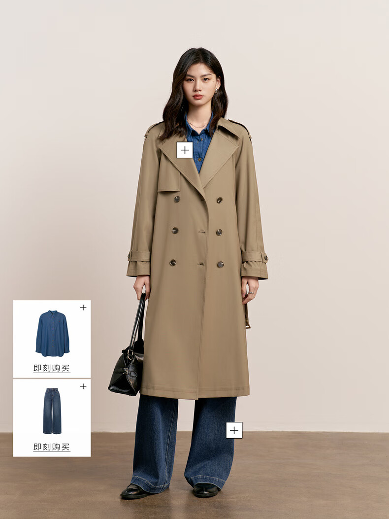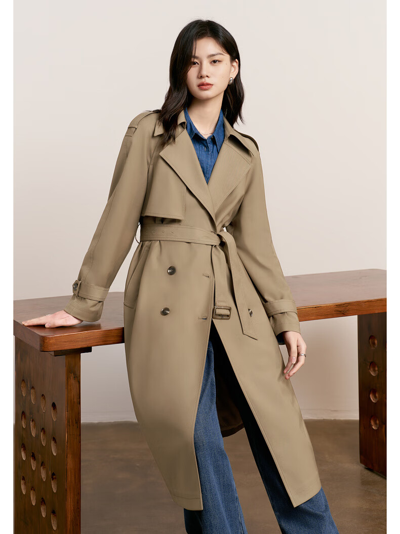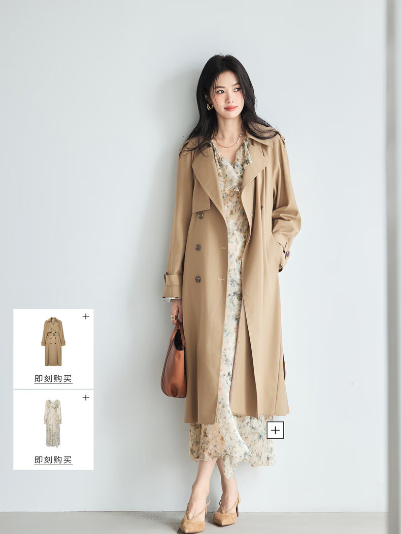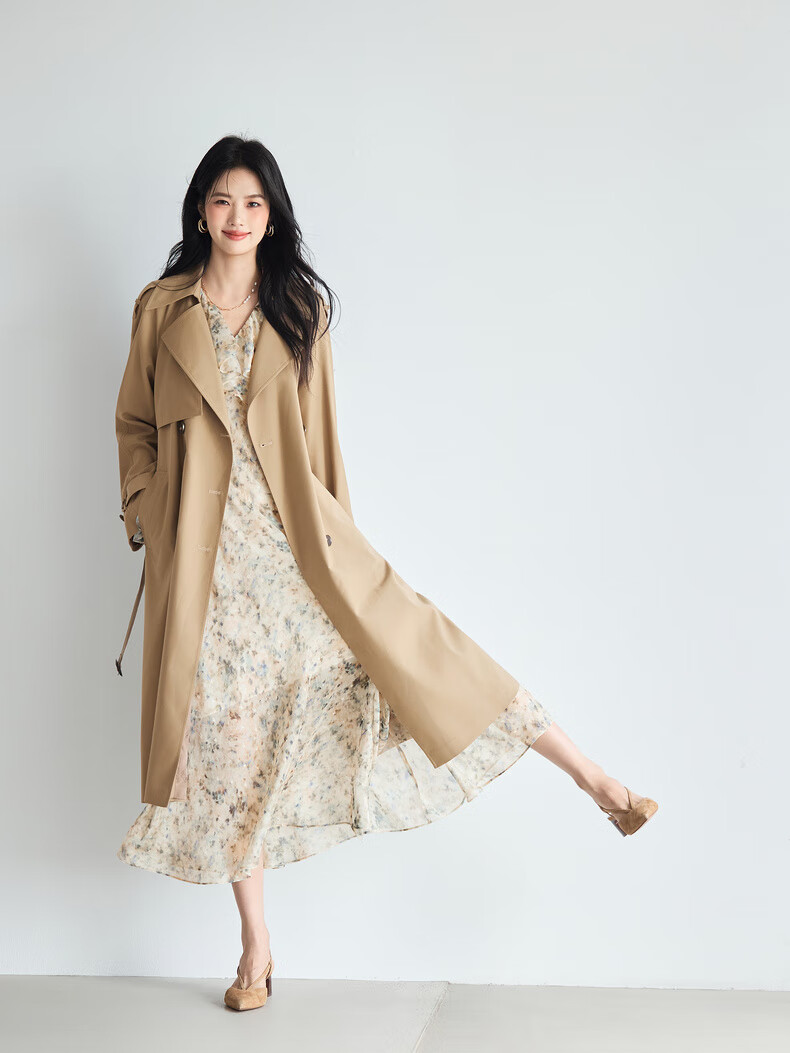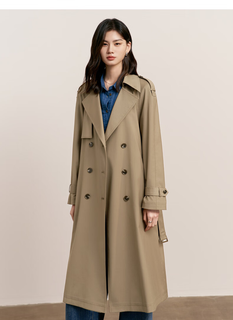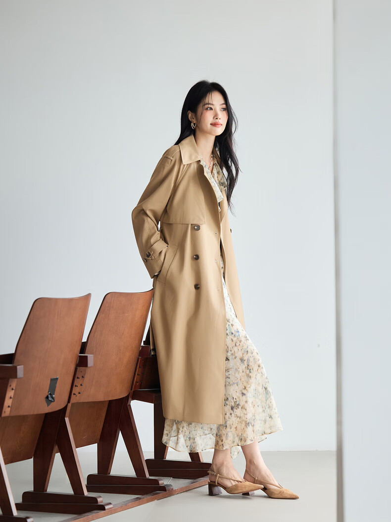 Eveli (eifini) Jiang Xin endorses amber windbreaker mid-length windbreaker new classic simple double-breasted women's windbreaker jacket coffee gold L 118-130Jin Jin equals 0.5 kg